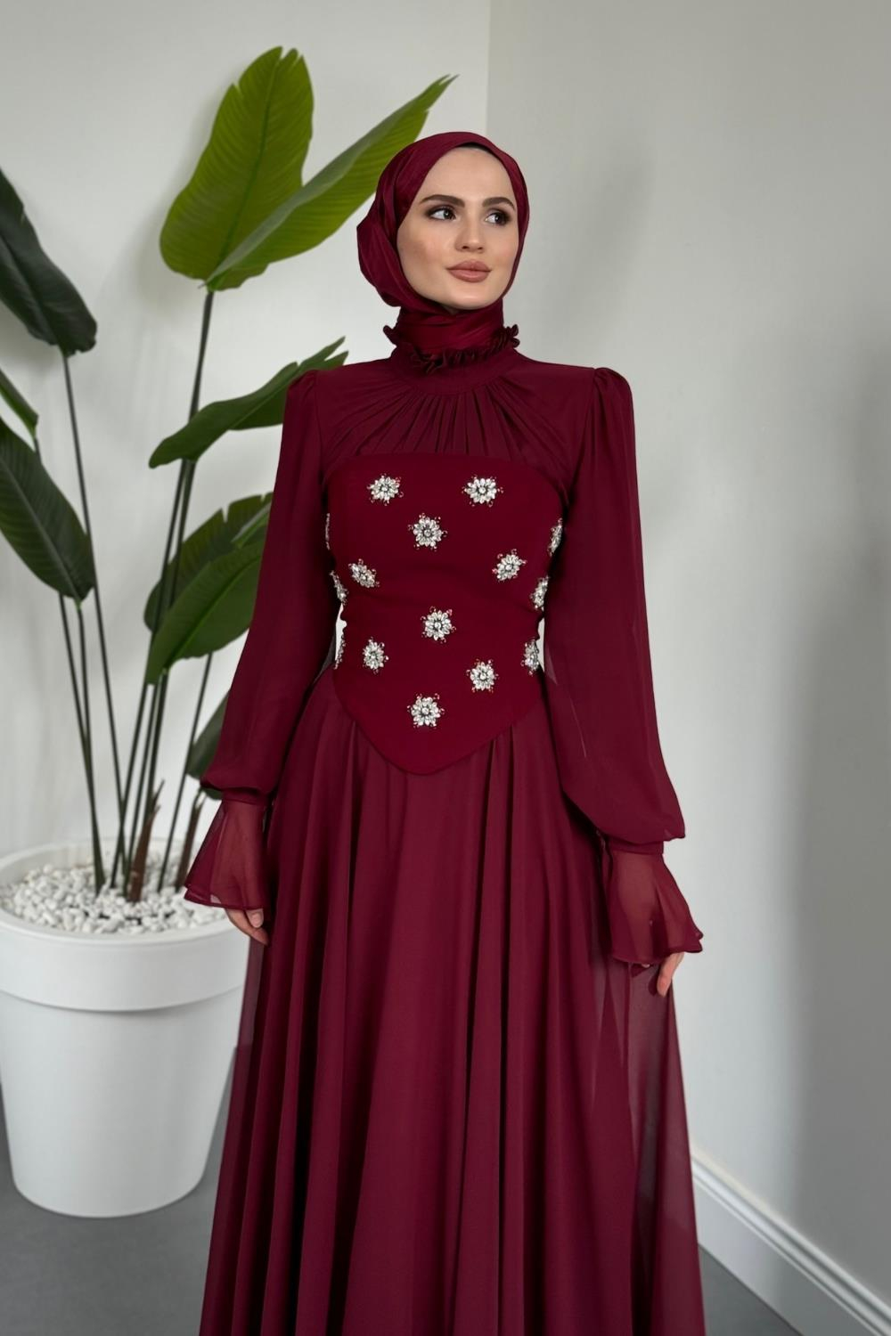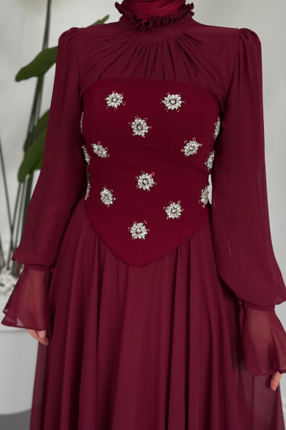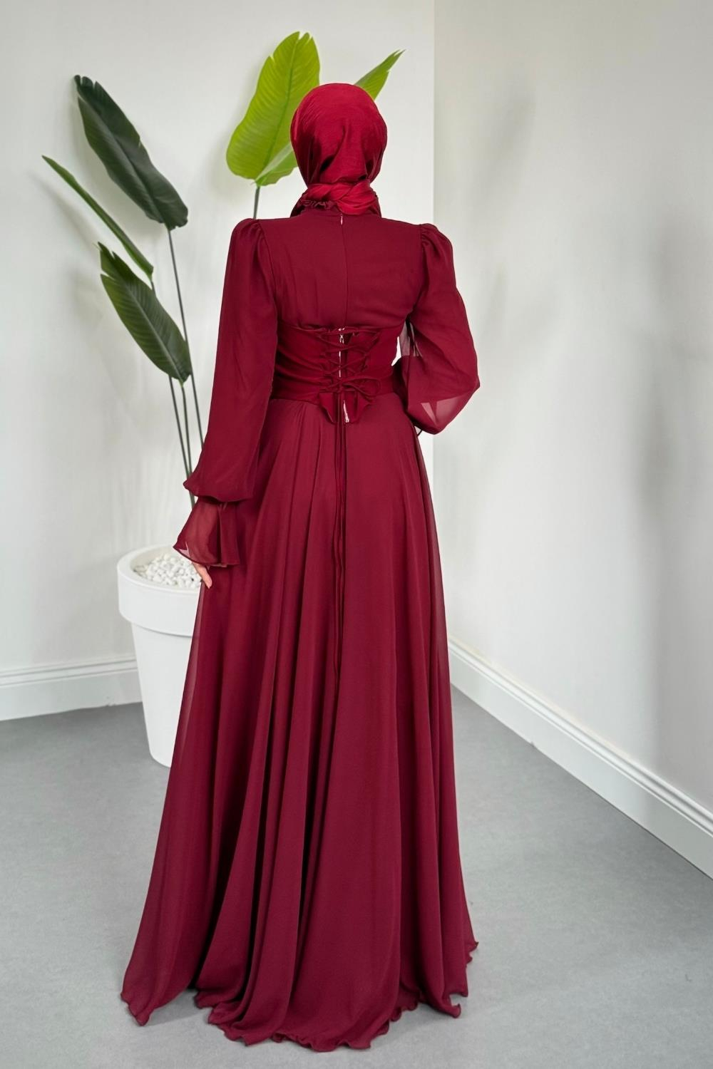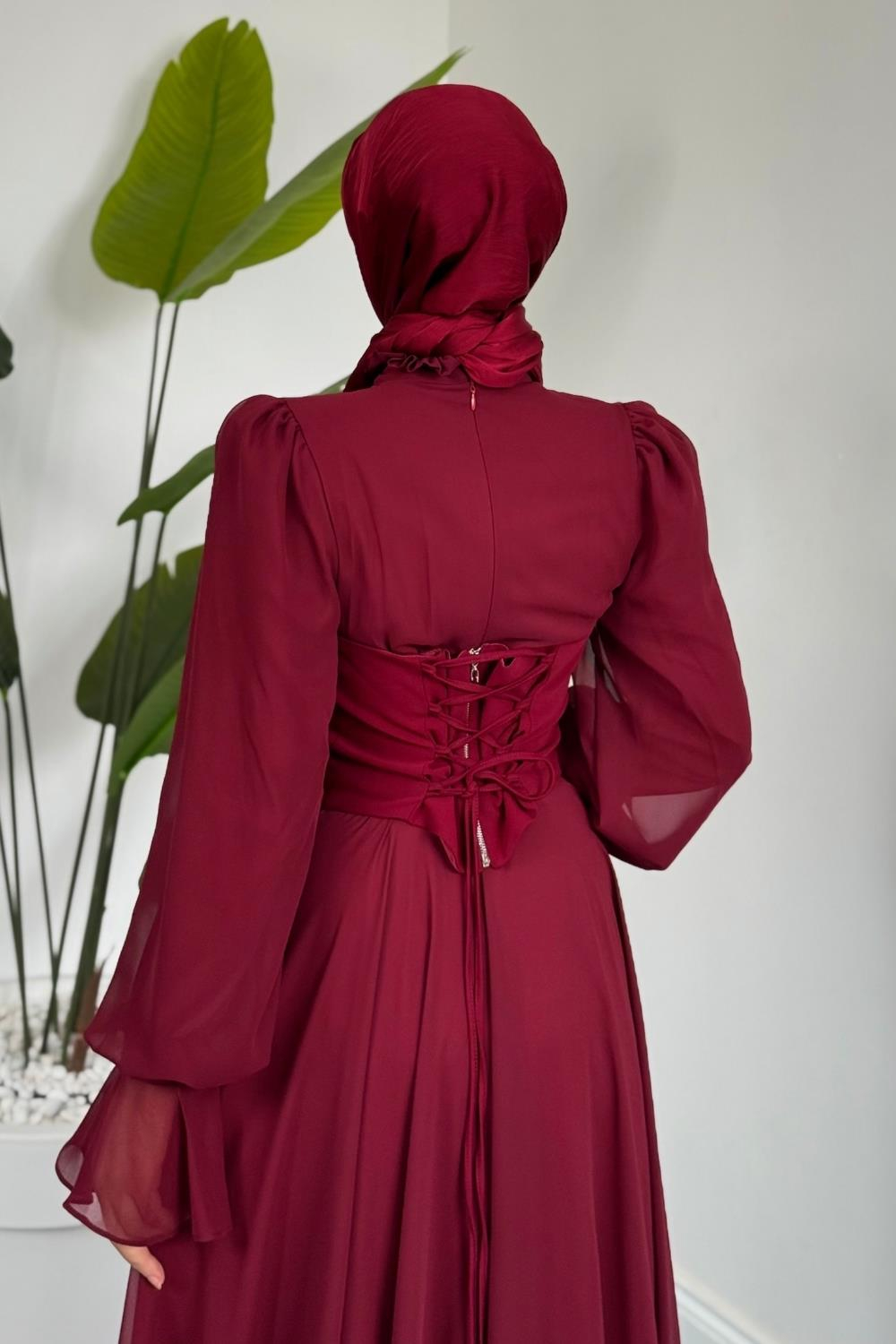 Lumiere Seyyar Korseli Şifon Abiye Bordo