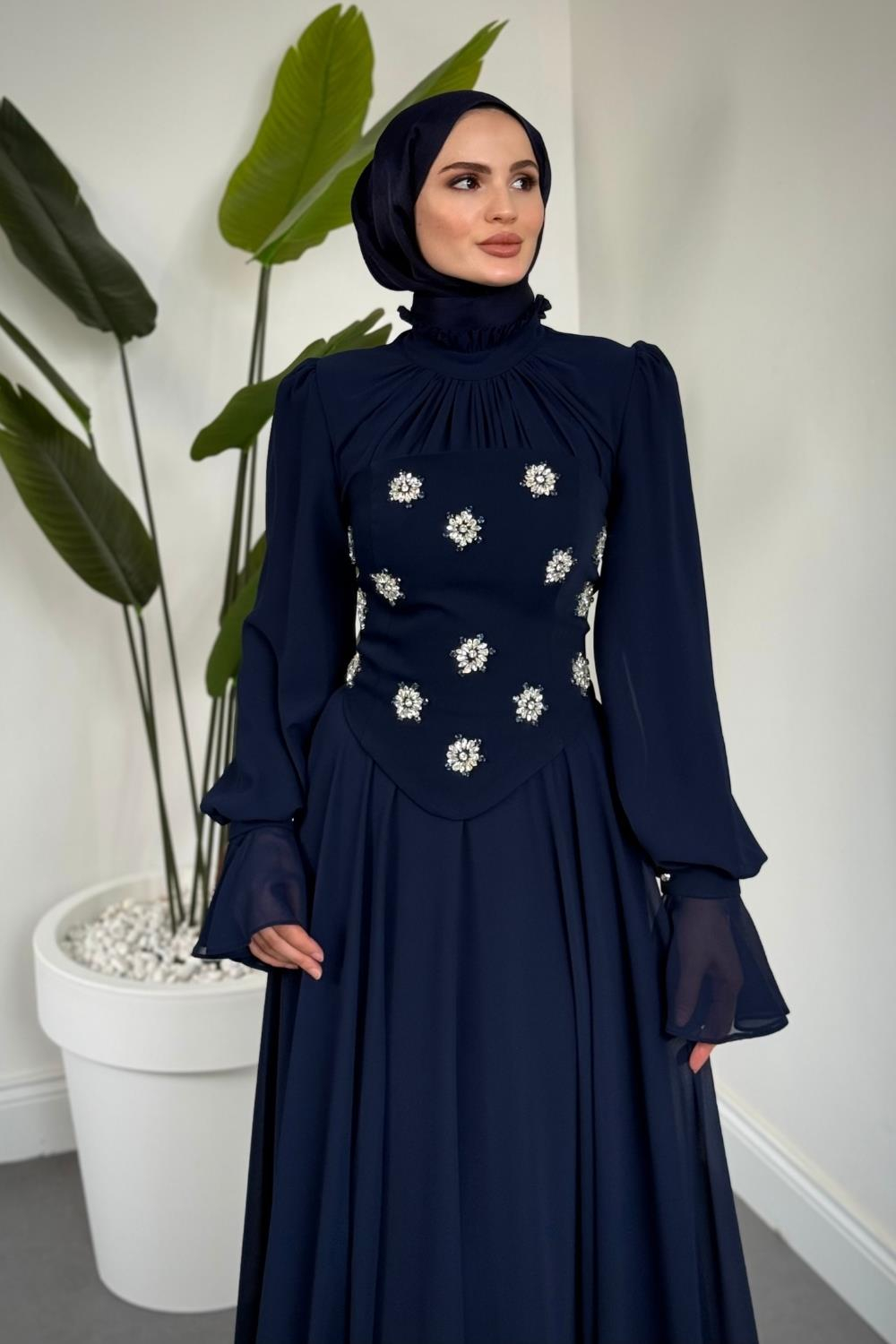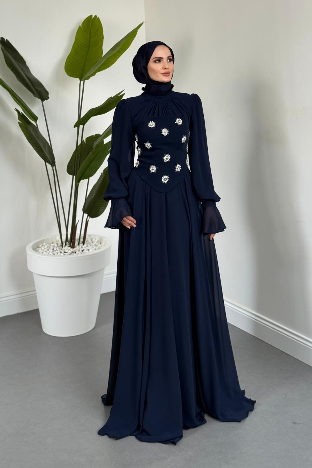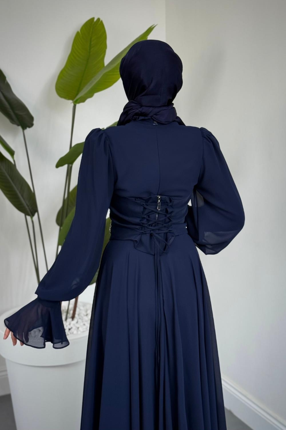Lumiere Seyyar Korseli Şifon Abiye Lacivert