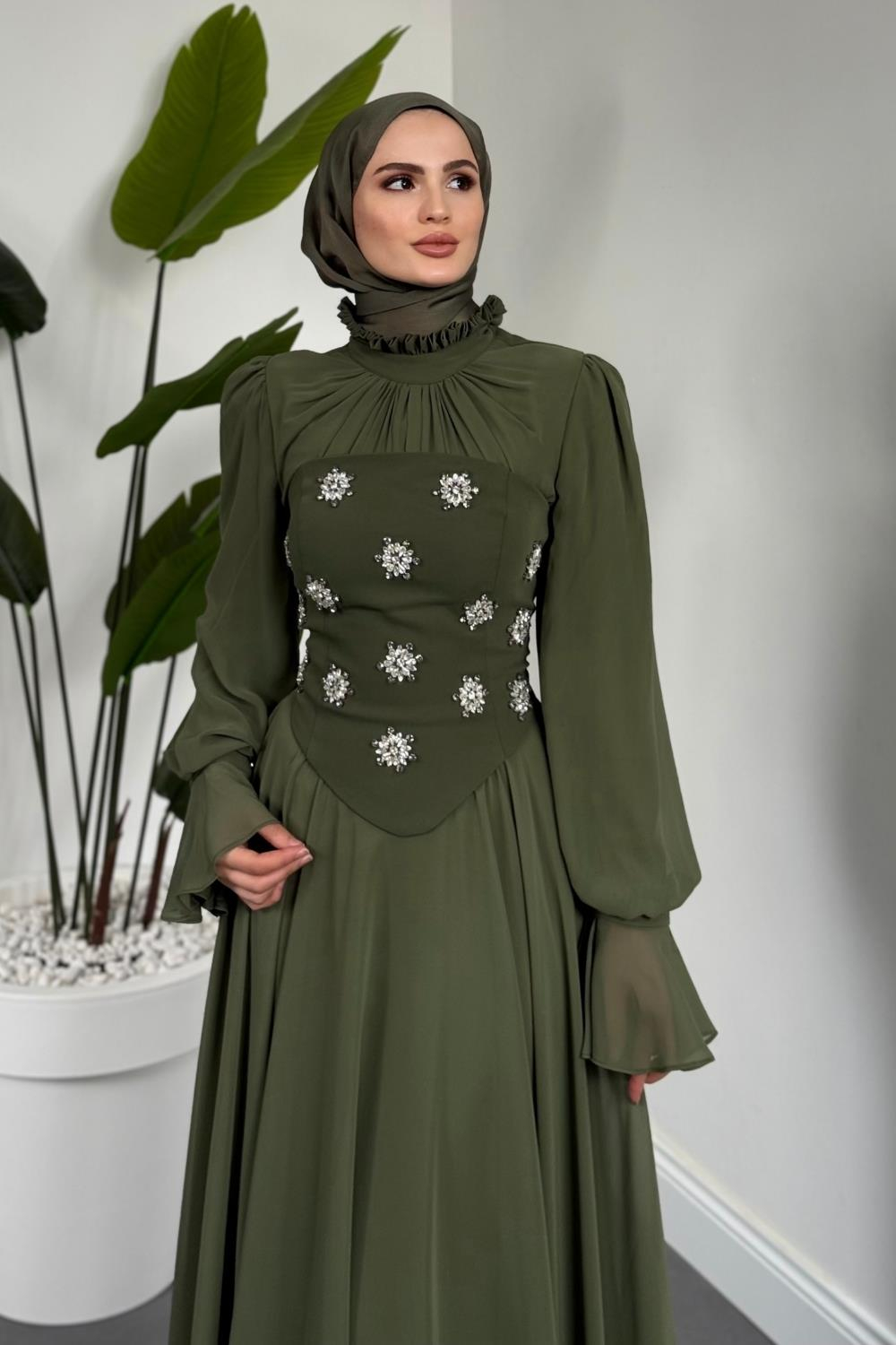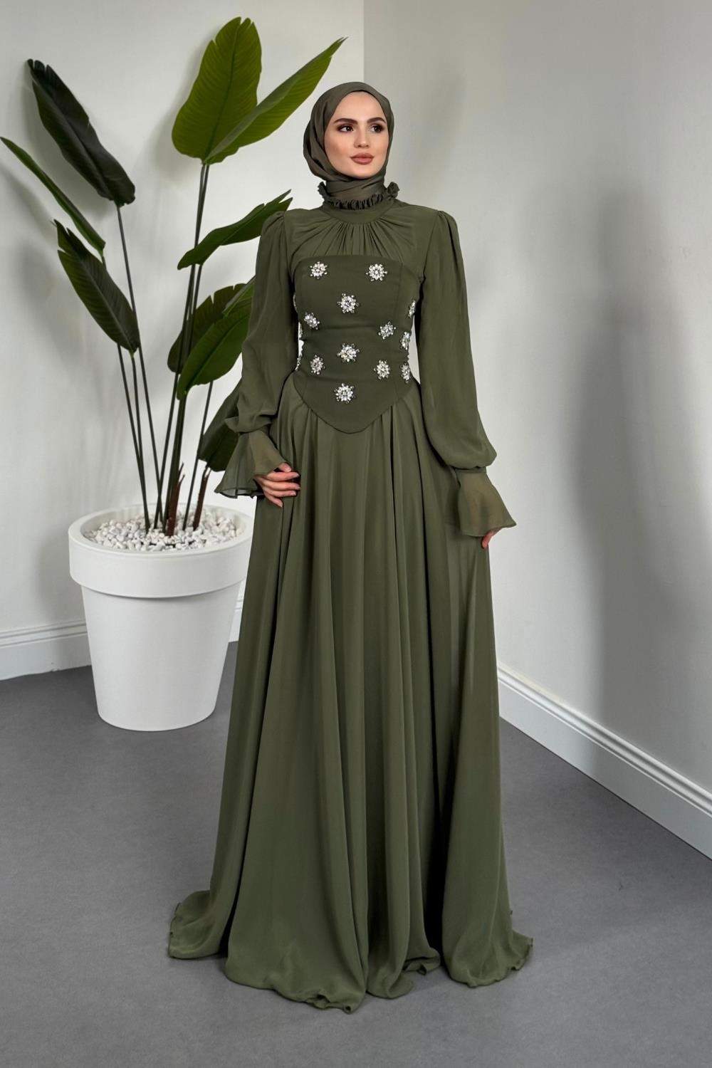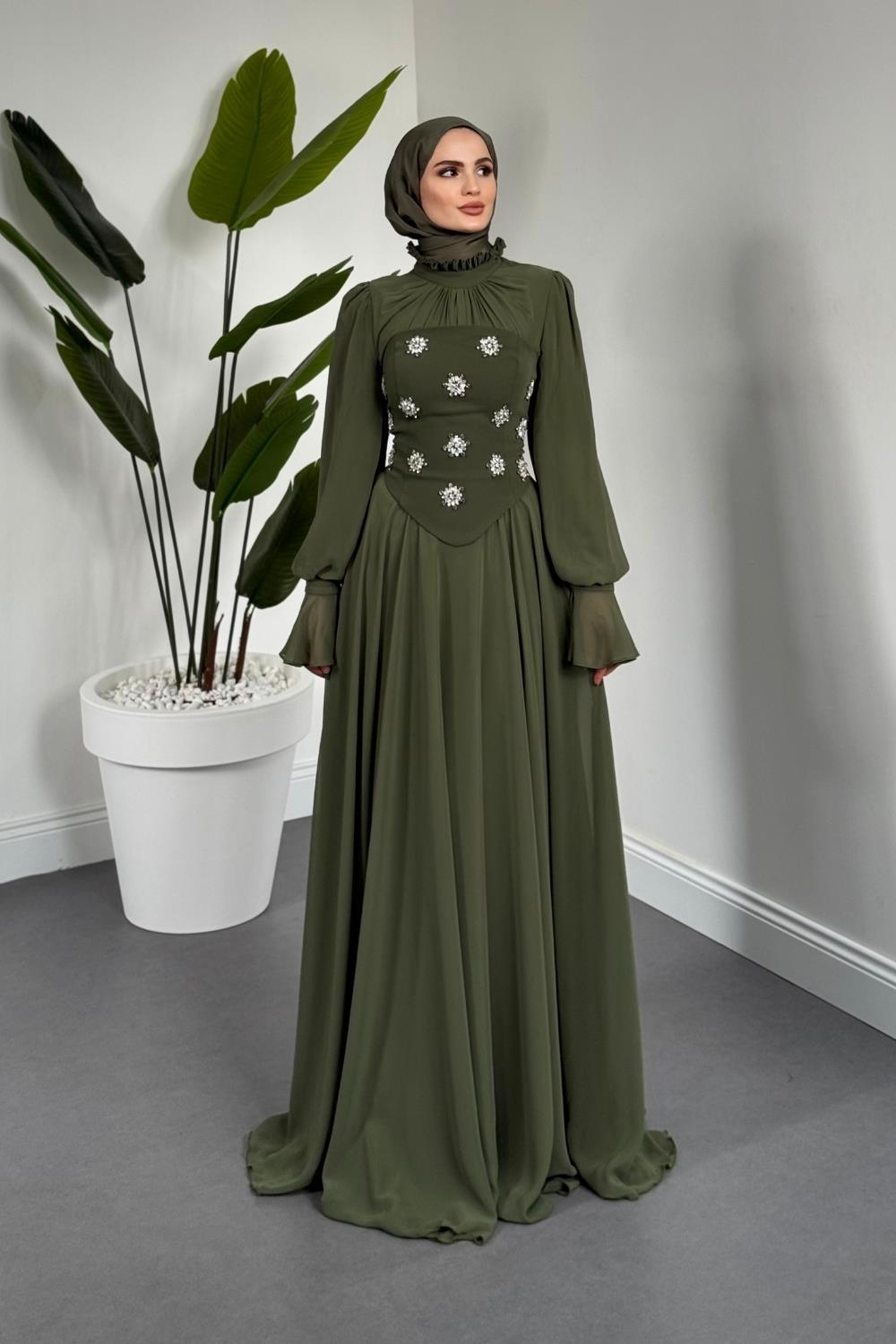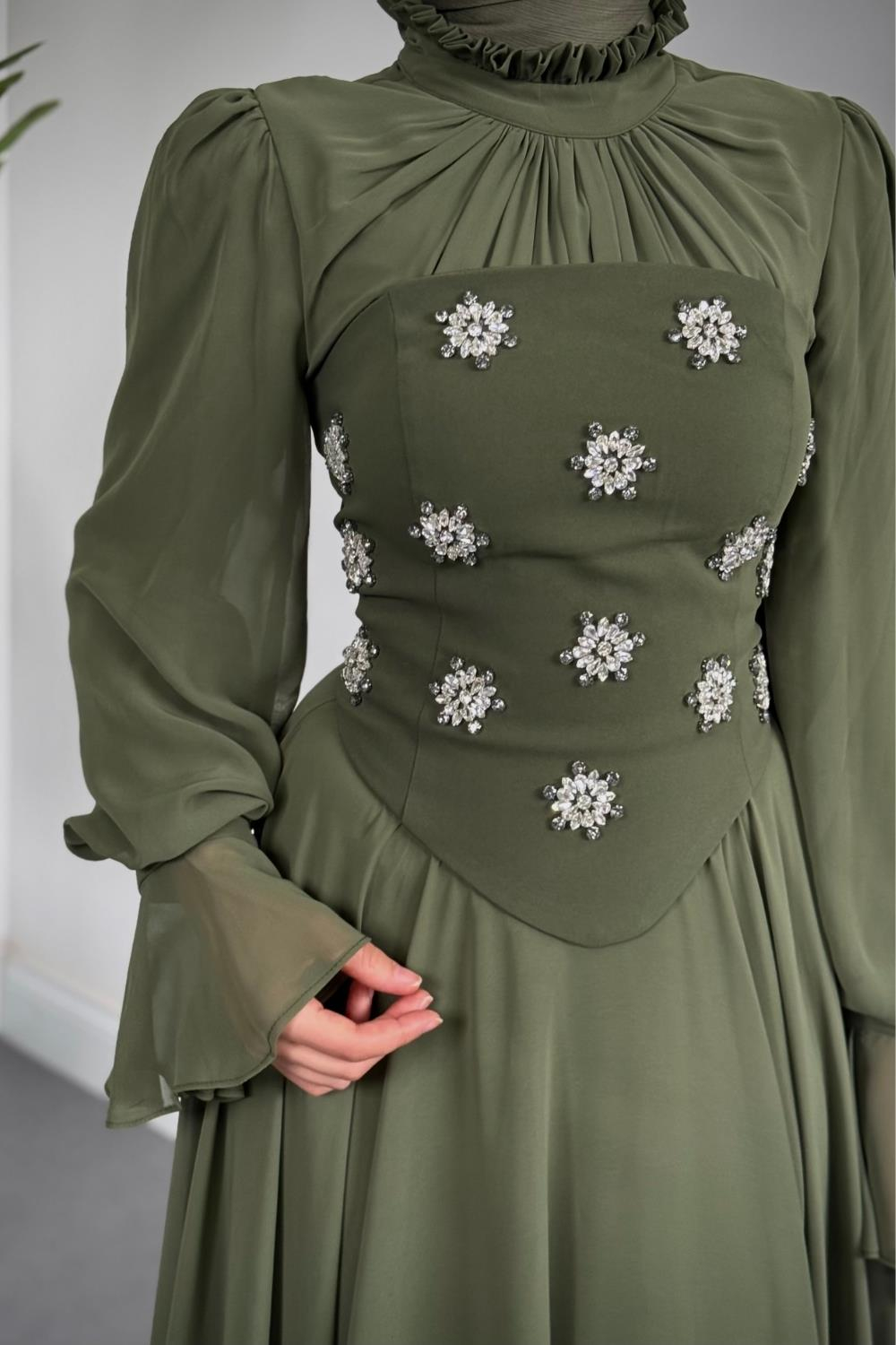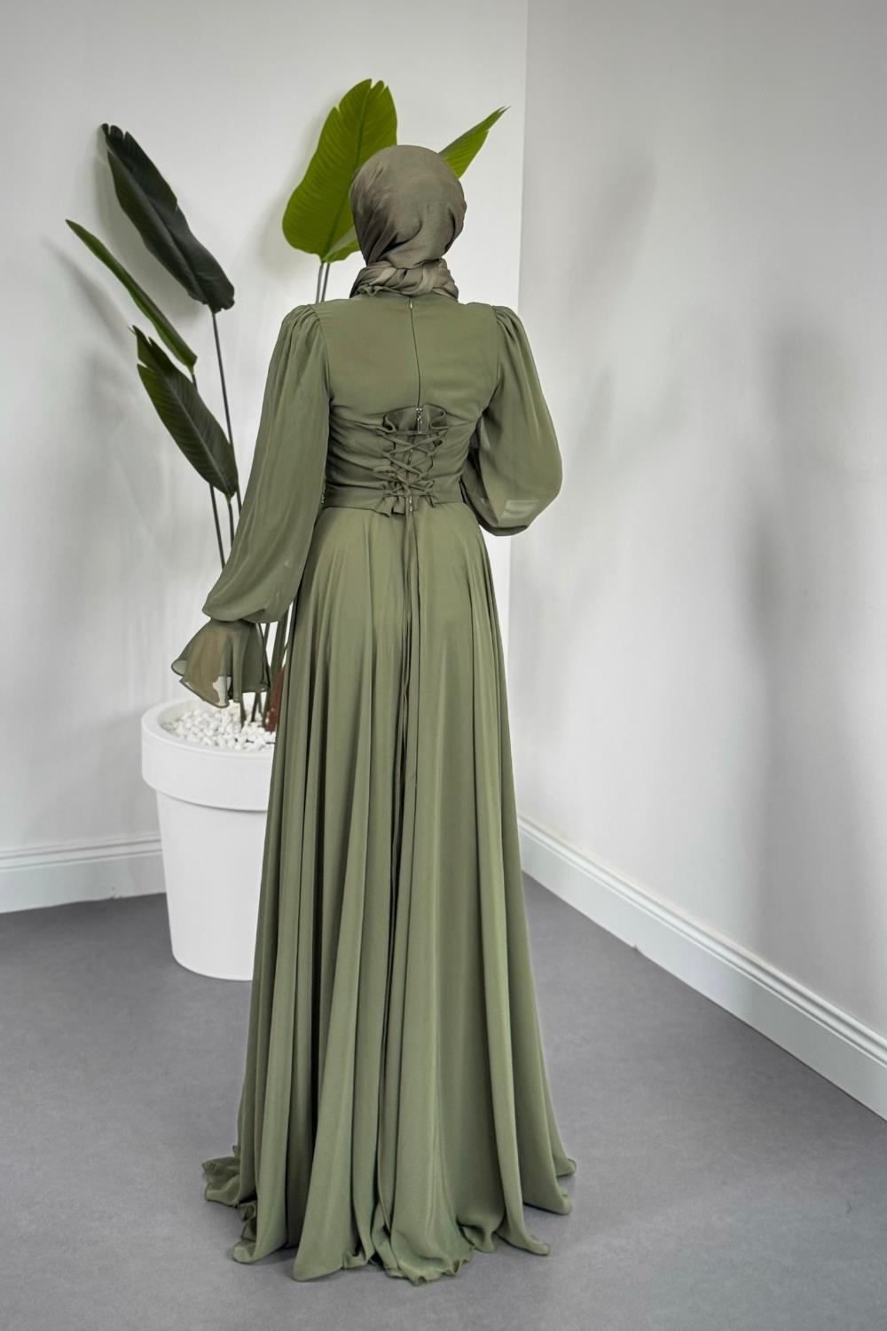 Lumiere Seyyar Korseli Şifon Abiye Kına Yeşili