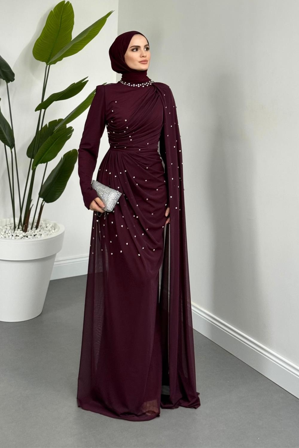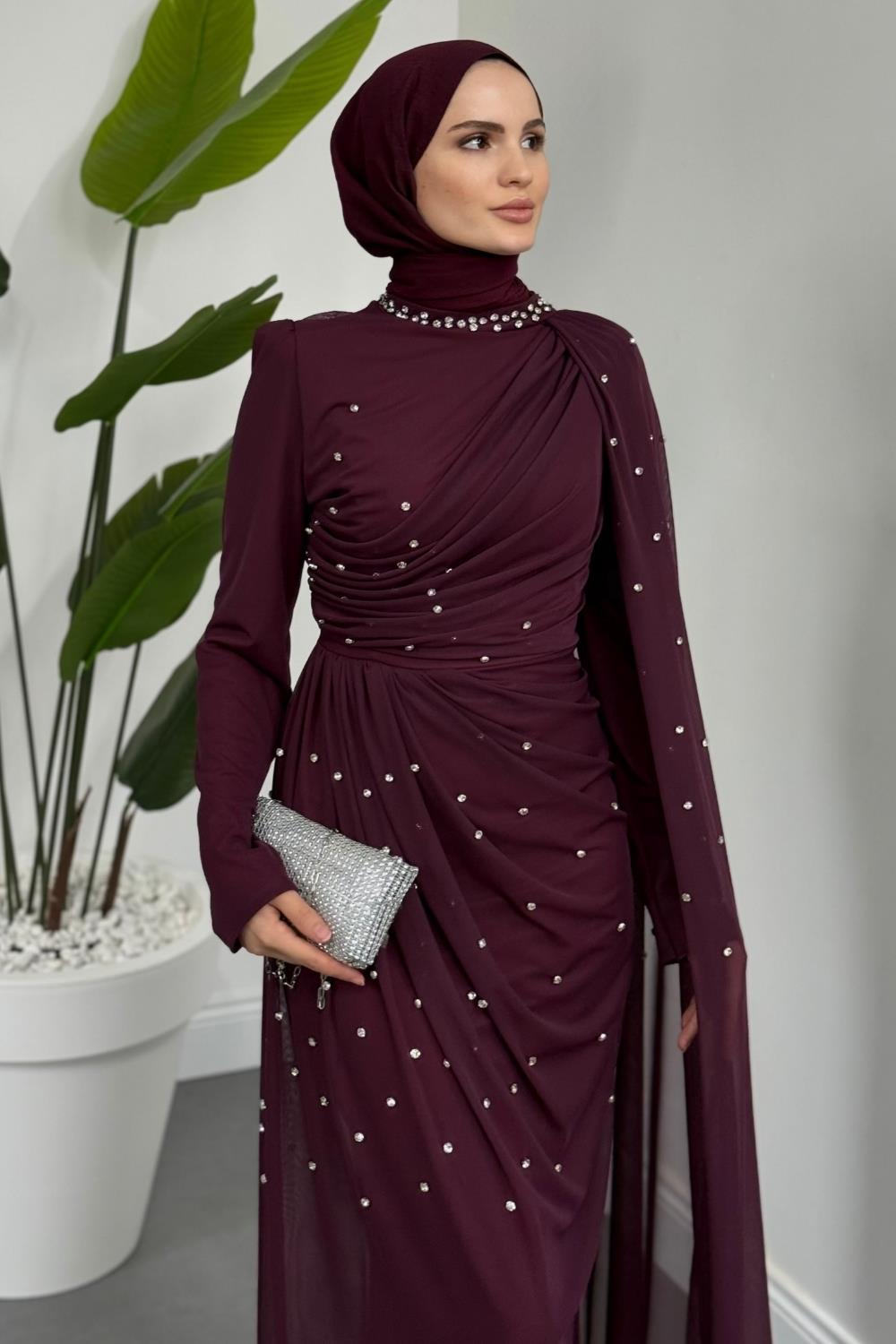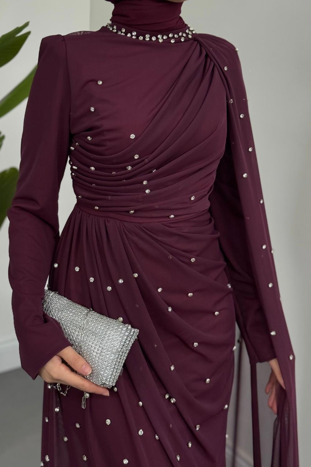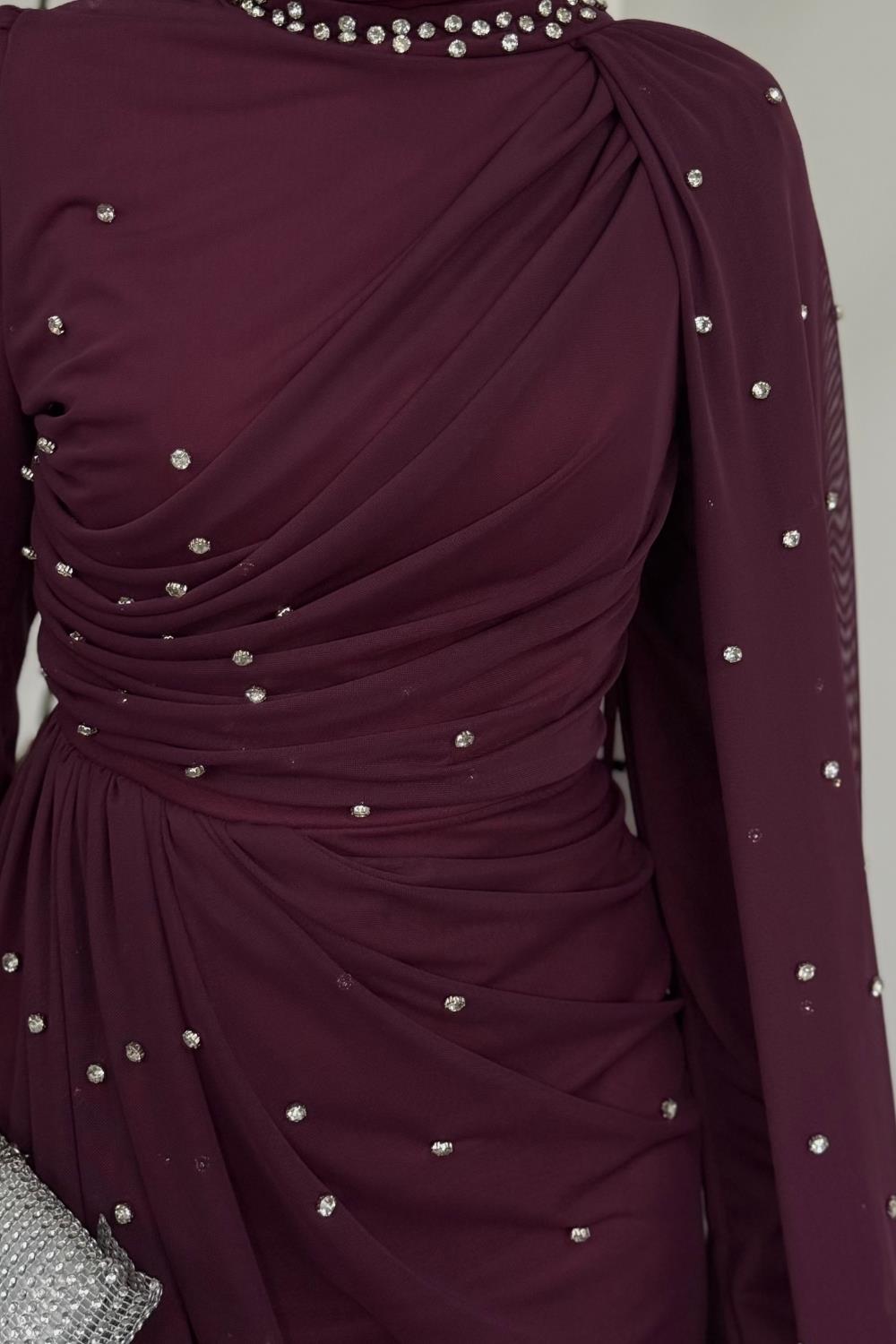 Clair Zımba Taşlı Tül Abiye Mürdüm