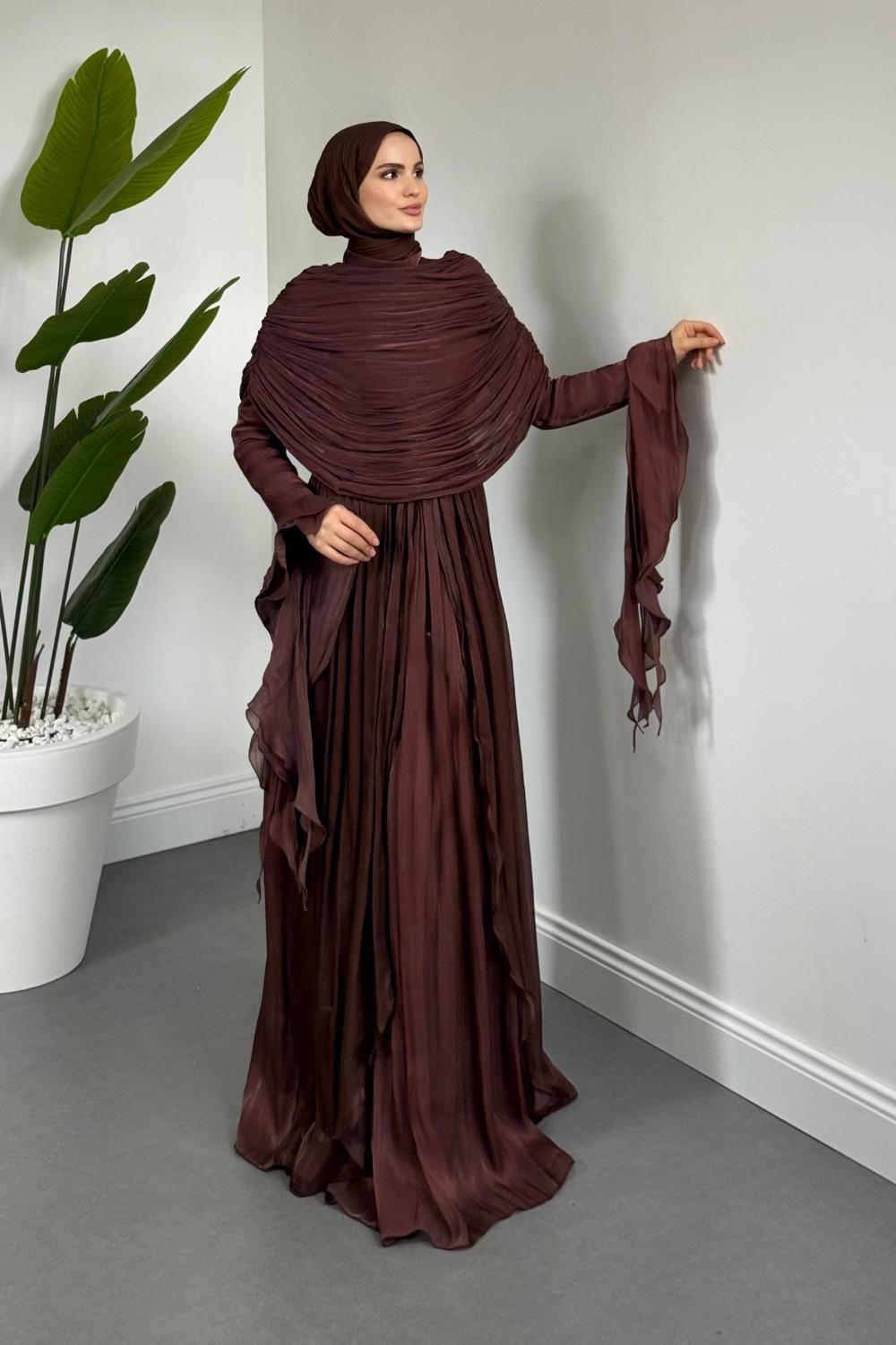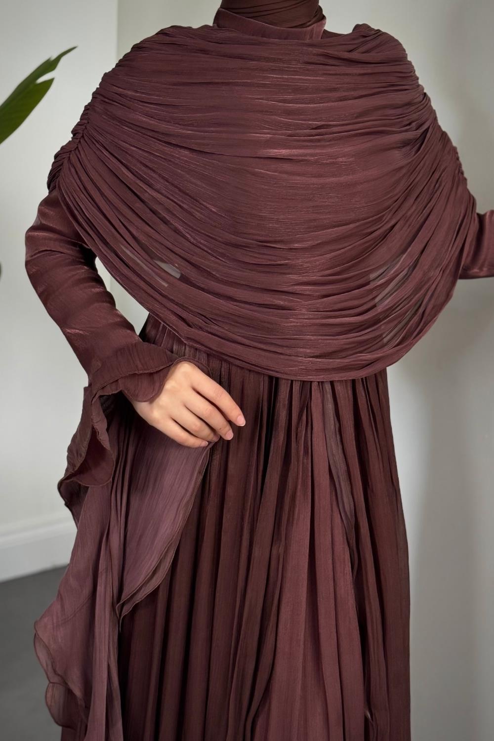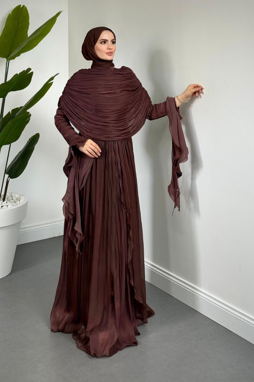 Naruna Pelerinli Fırfırlı Abiye Gül Kurusu