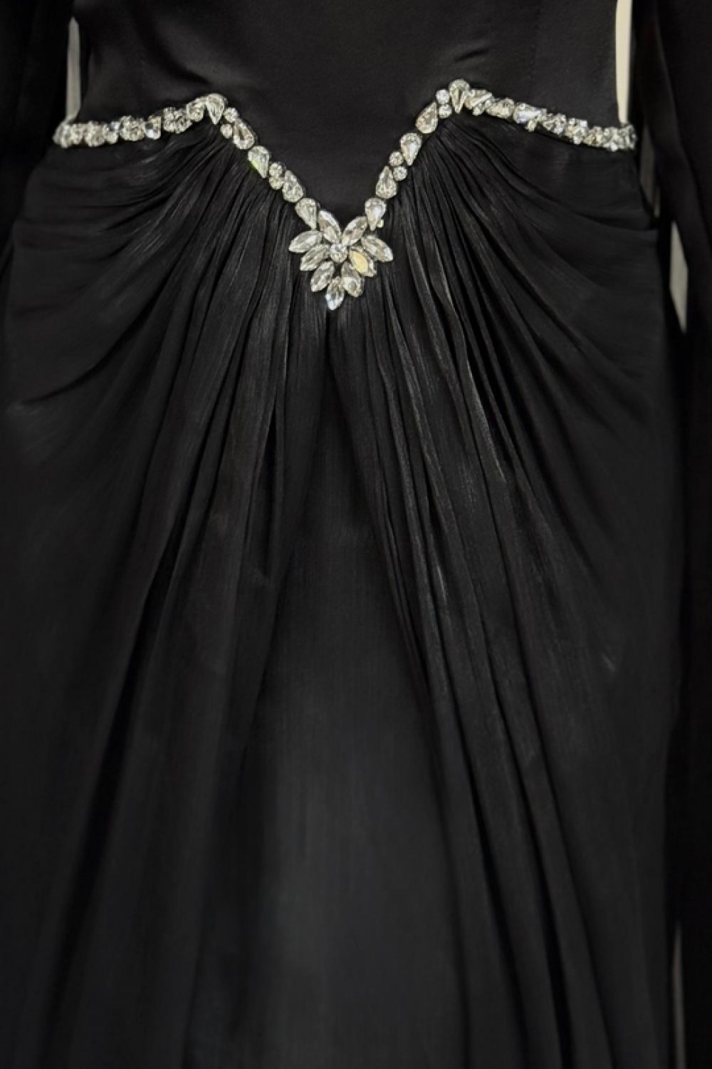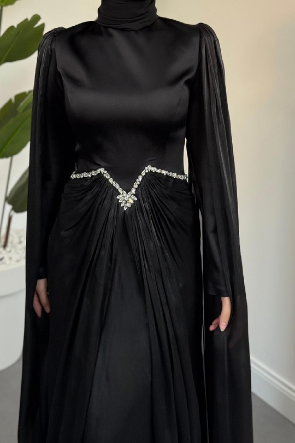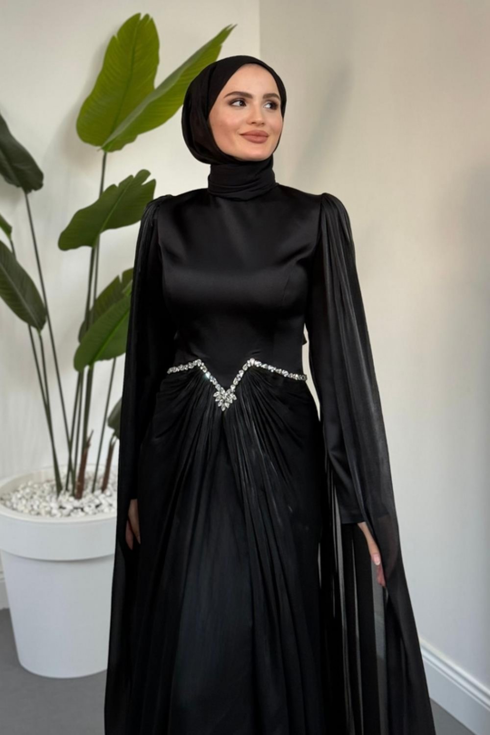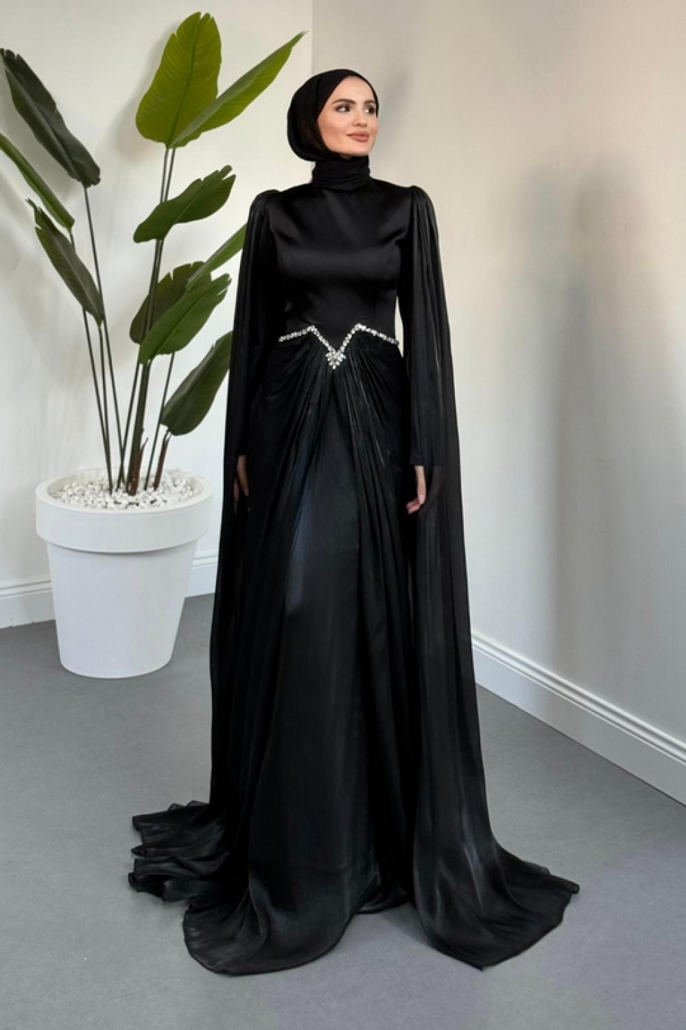 Loverna Taşlı Pelerinli Abiye Siyah
