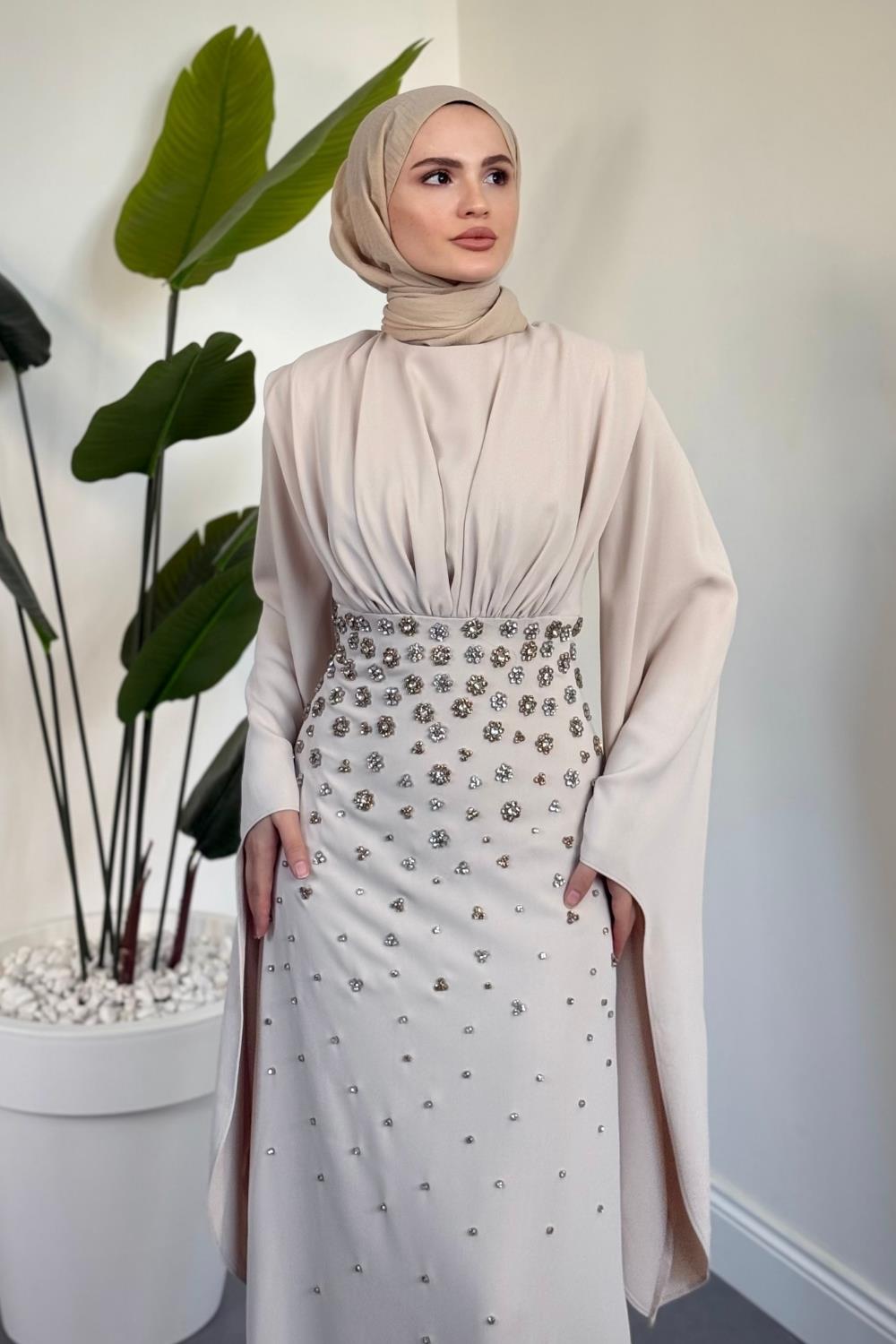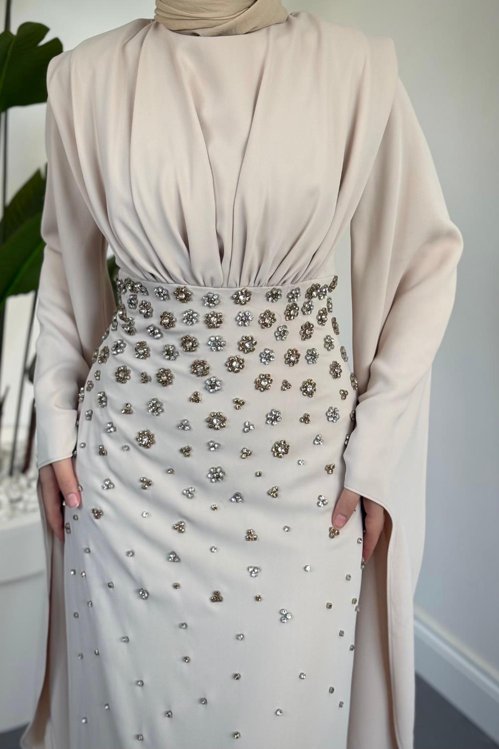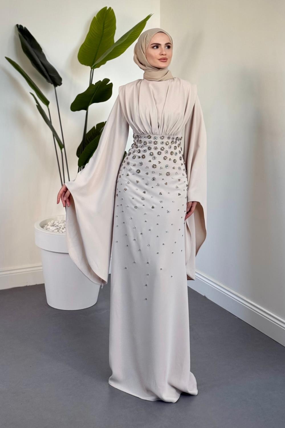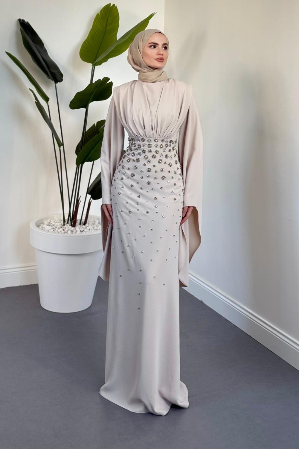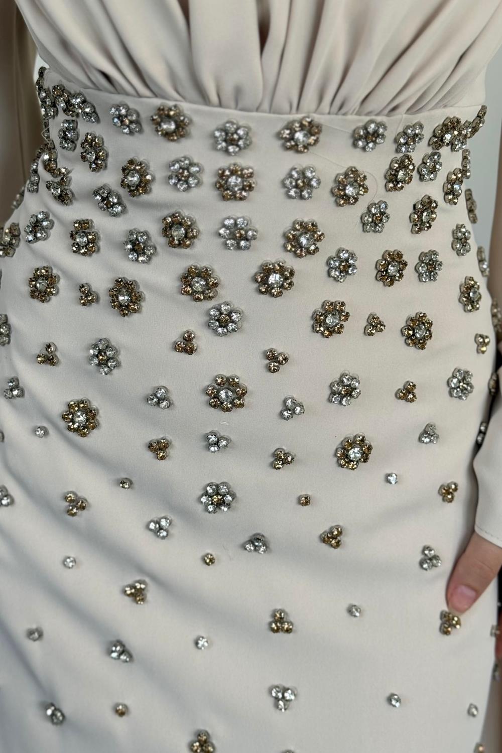 Valmera Taşlı Kolları Asimetrik Kesim Abiye Taş
