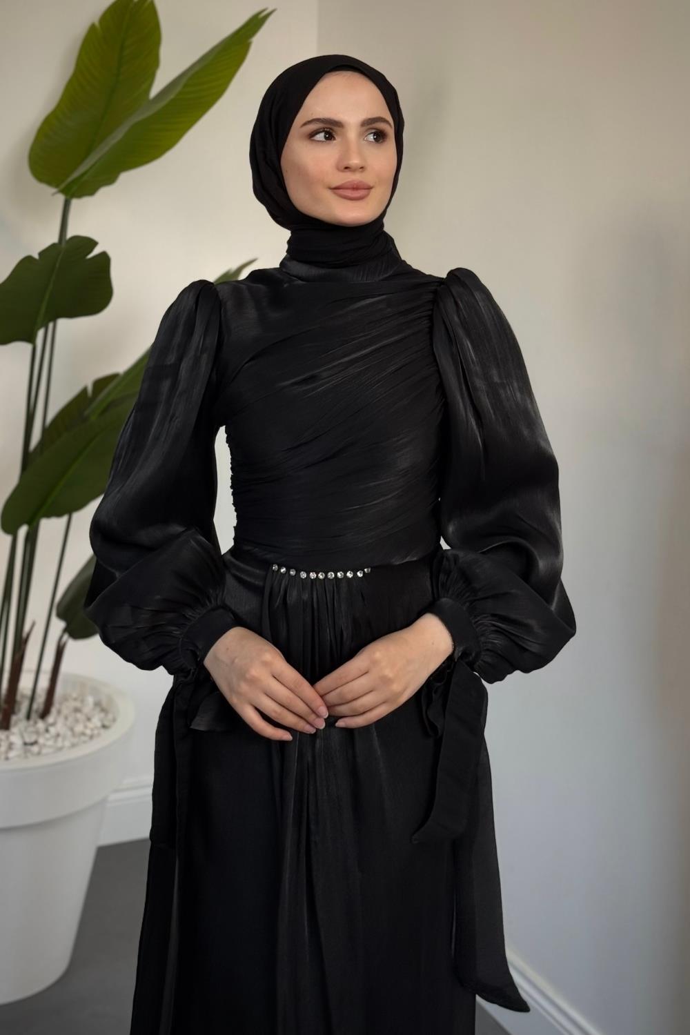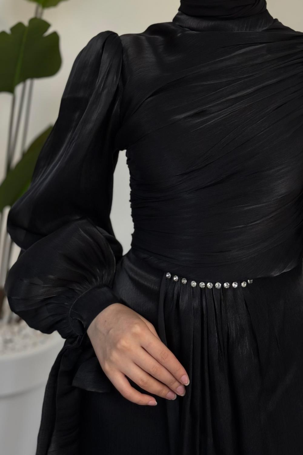 Cleane Beli Taşlı Ja Jan Abiye Siyah