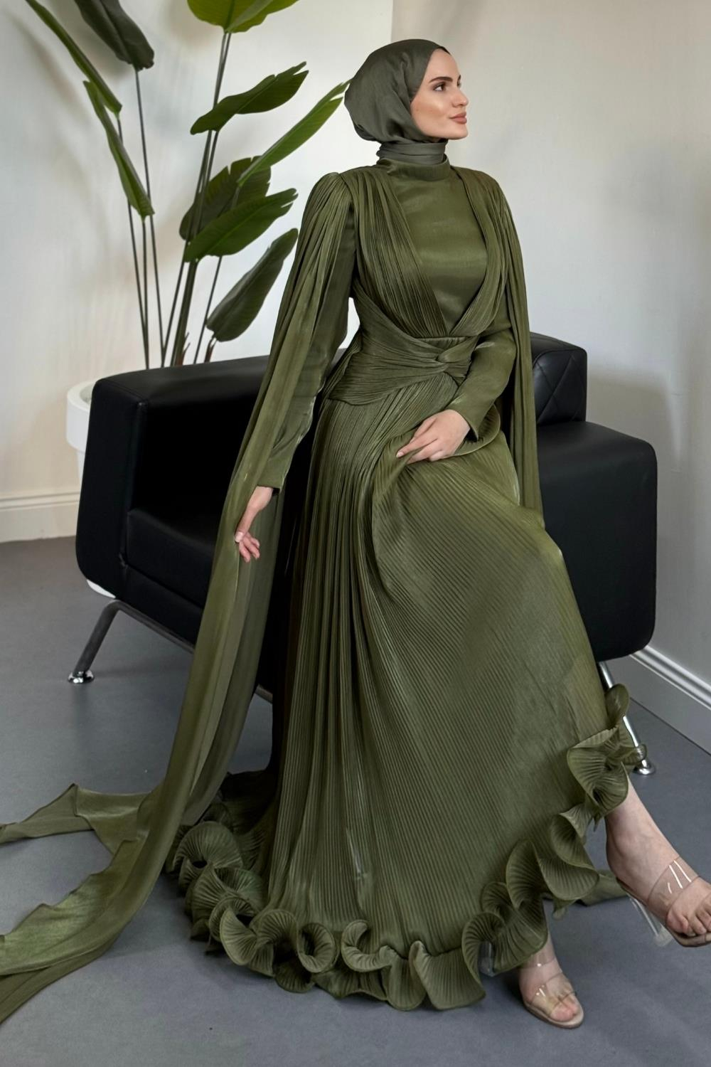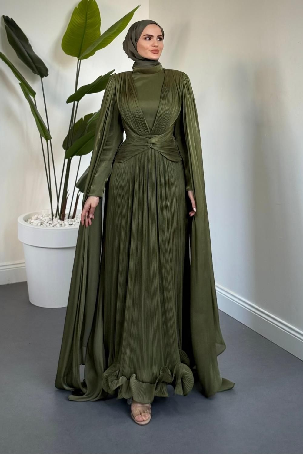 Rienne Pelerinli Pliseli Jan Jan Abiye Haki