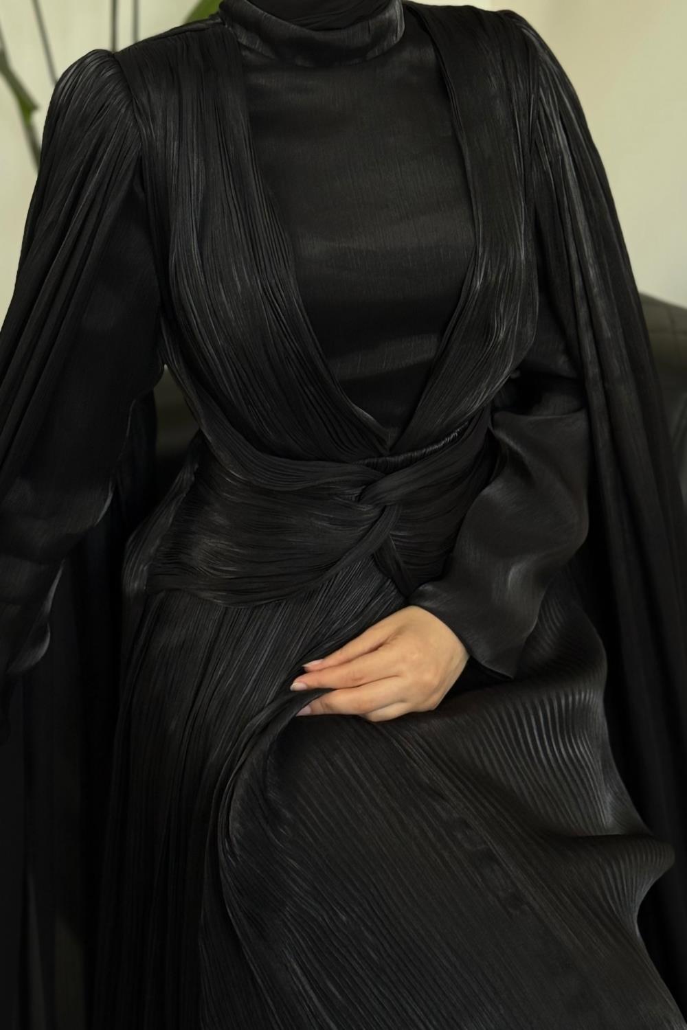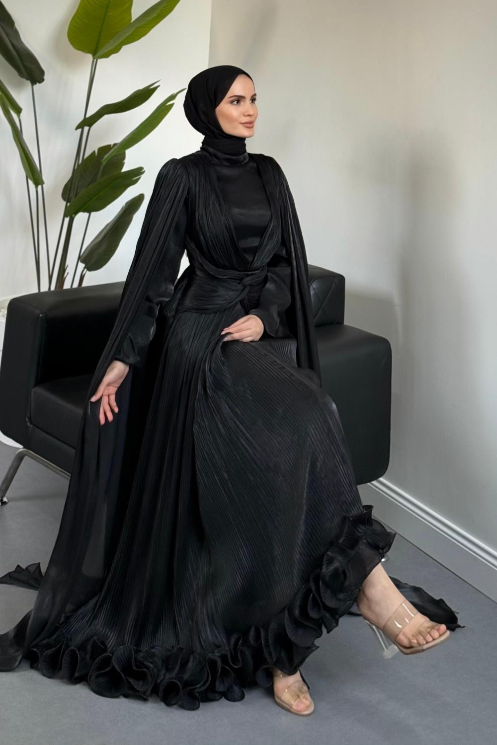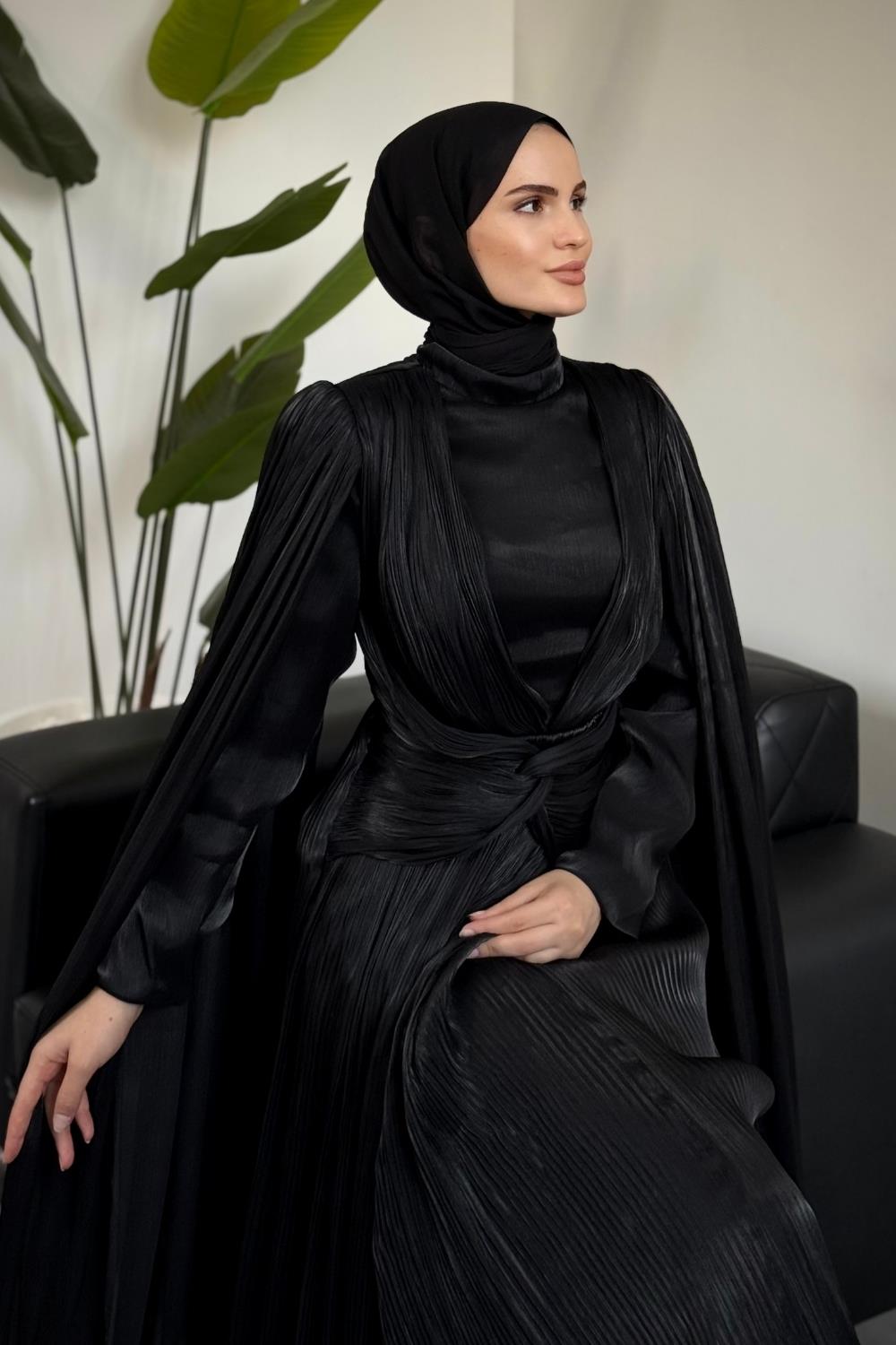 Rienne Pelerinli Pliseli Jan Jan Abiye Siyah