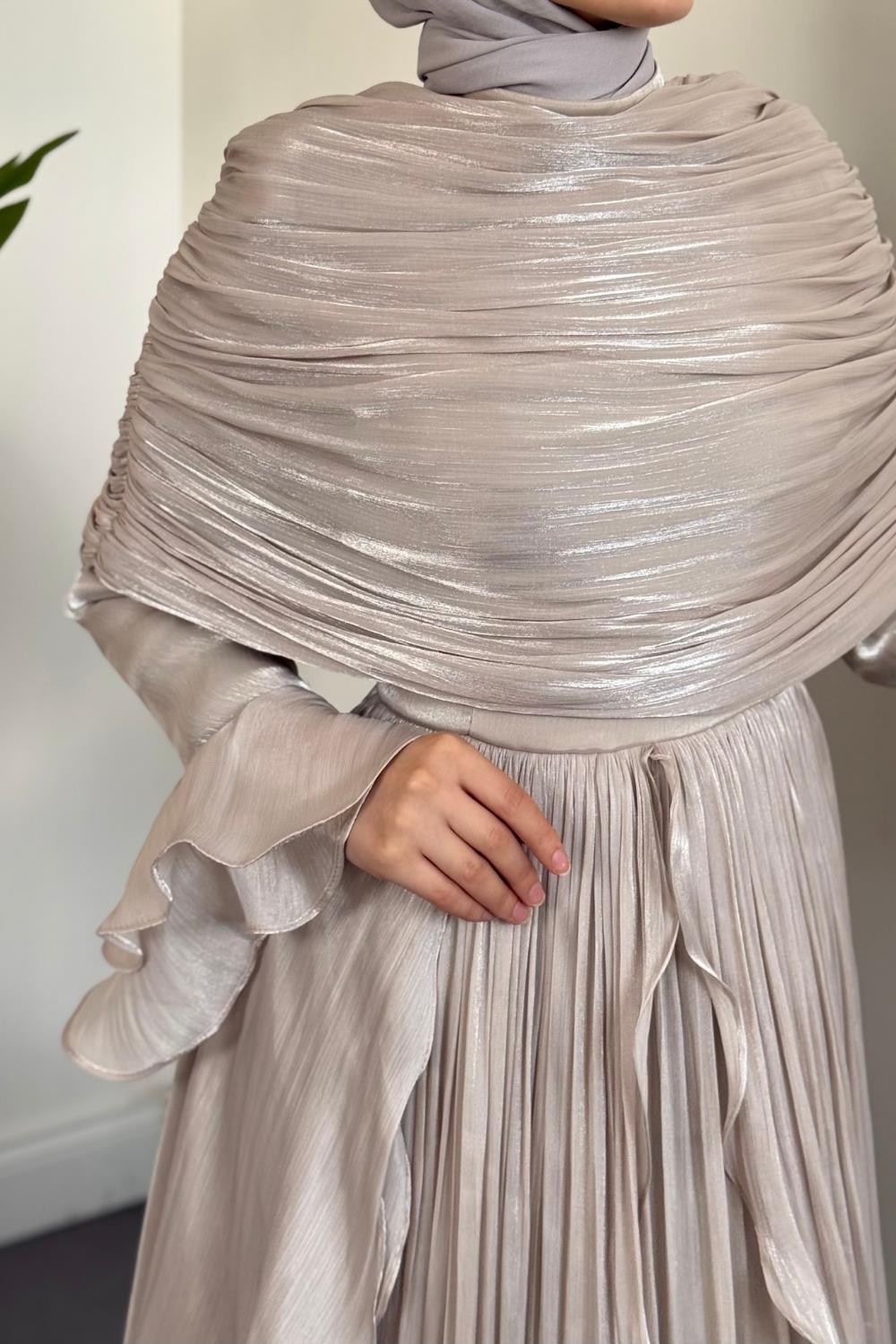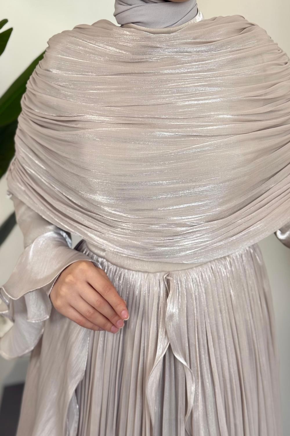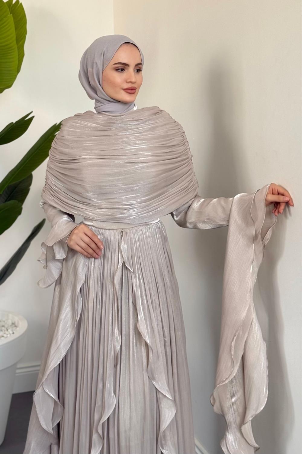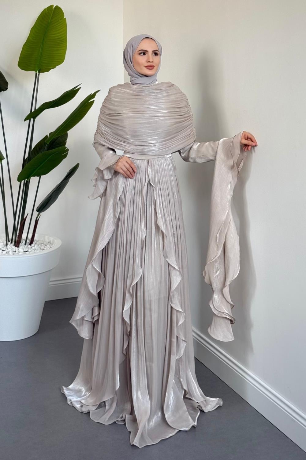 Naruna Pelerinli Fırfırlı Abiye Taş