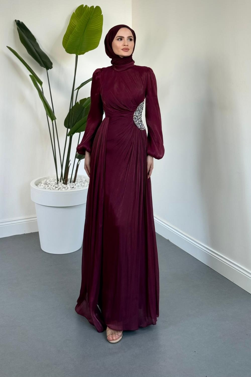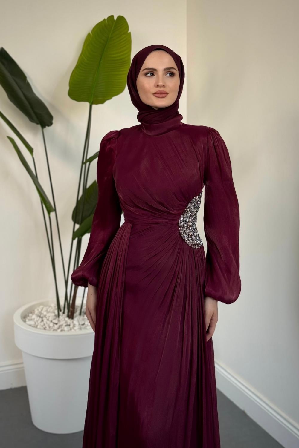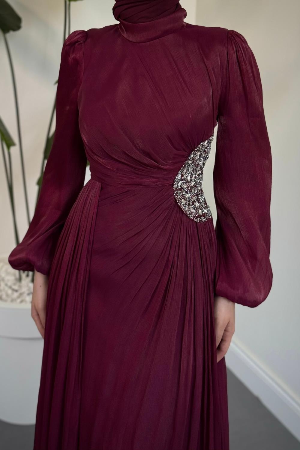 Nola Yanı Taşlı Jan Jan Abiye Mürdüm