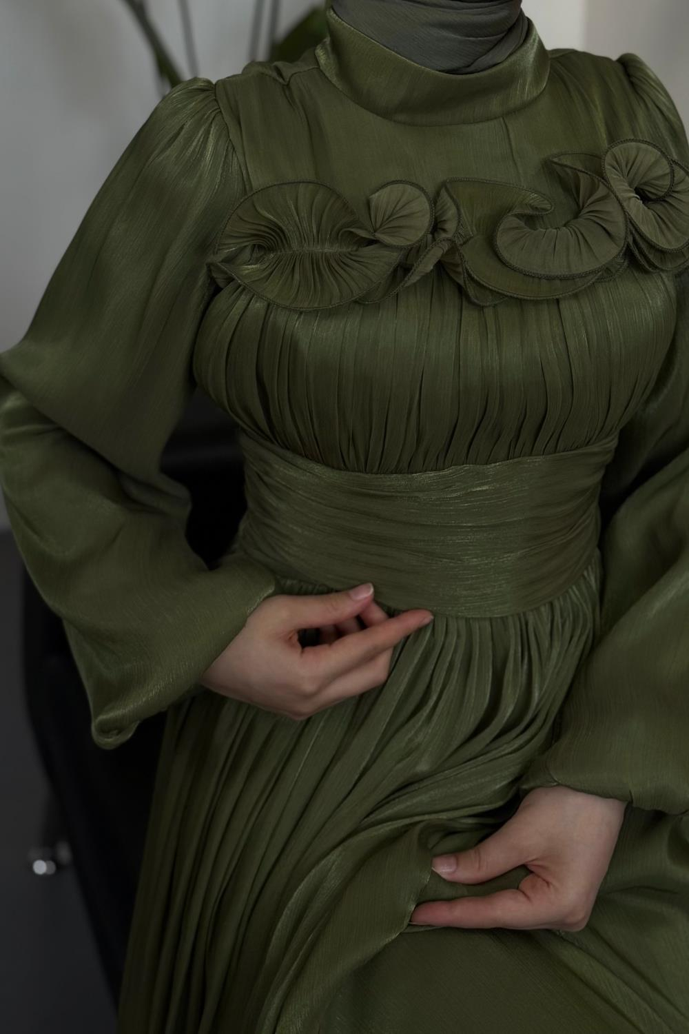 Maryam Altı Ve Göğüs Kısmı Fırfırlı Janjan Abiye Haki