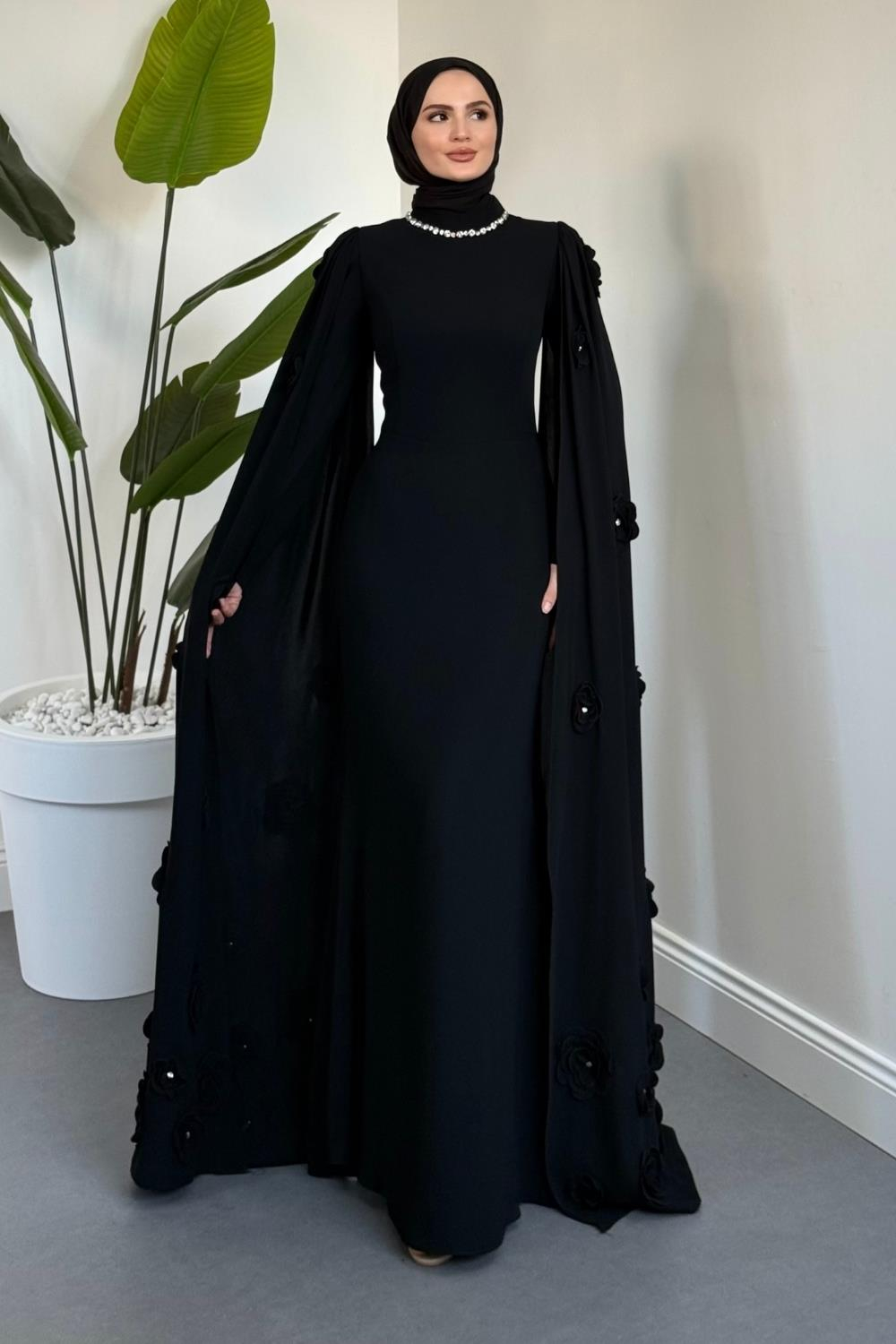 Aliya Pelerini Güllü Balık Abiye Siyah