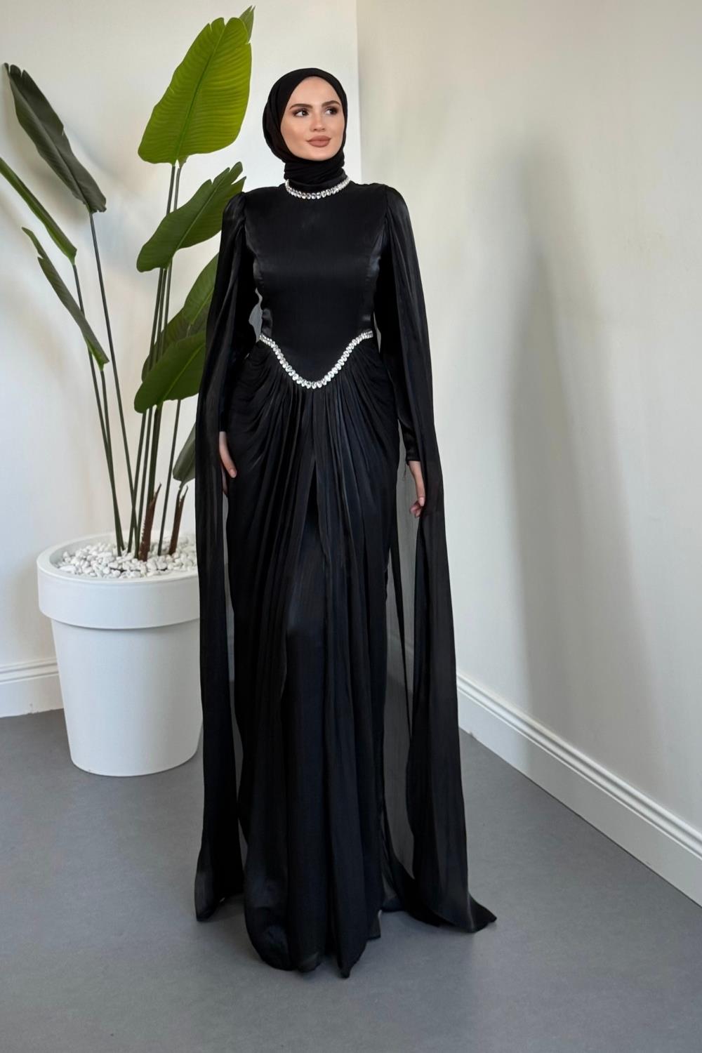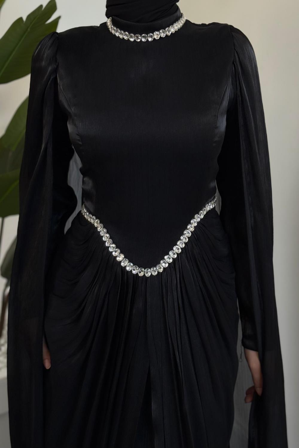 Maelis Beli Ve Boynu Taşlı Abiye Siyah