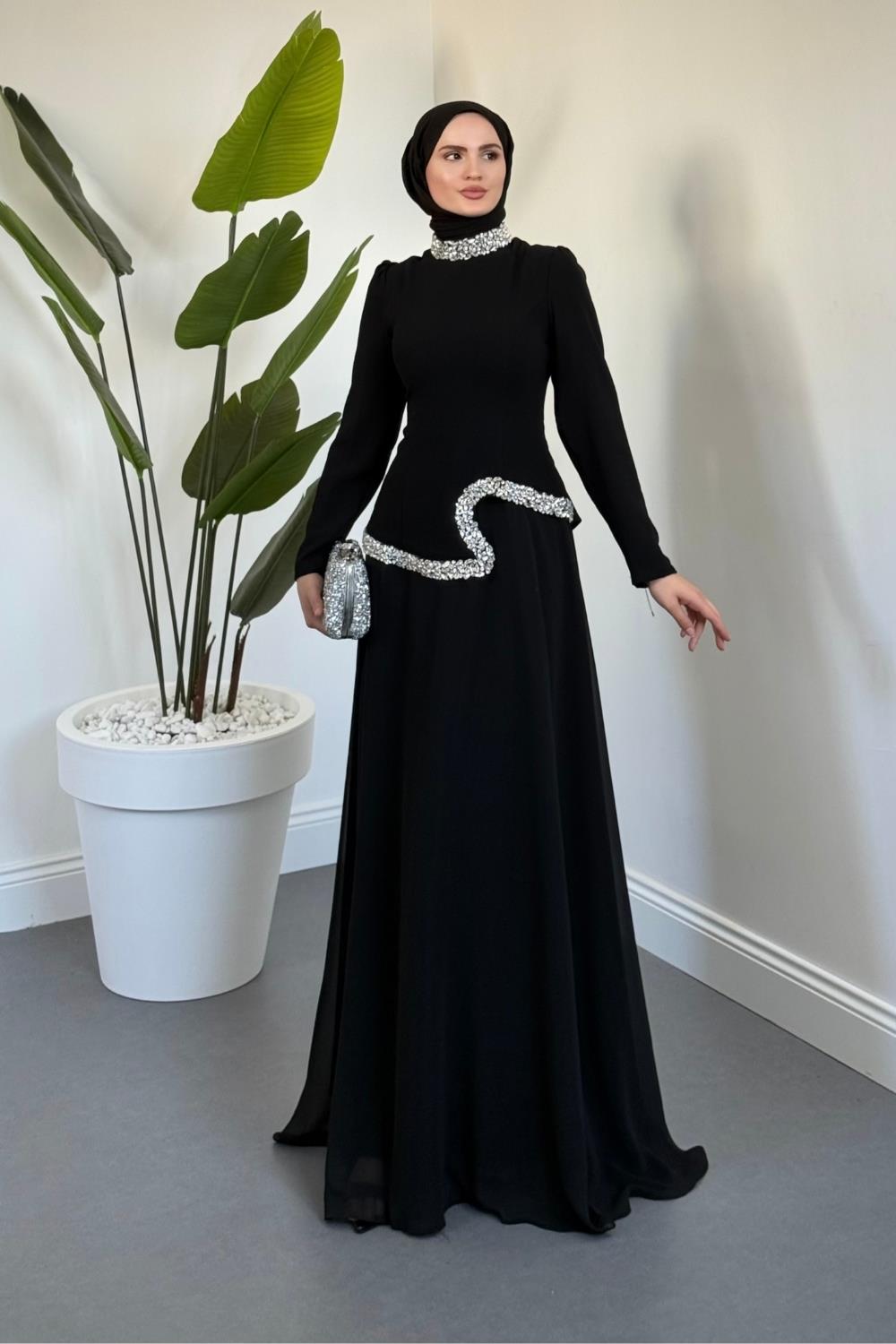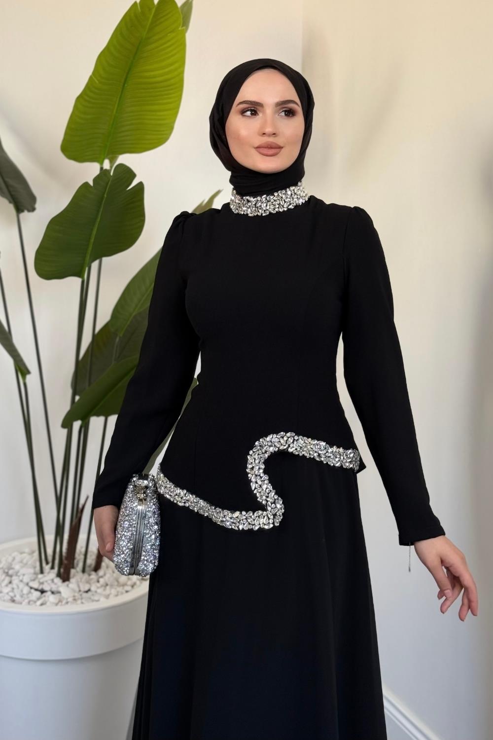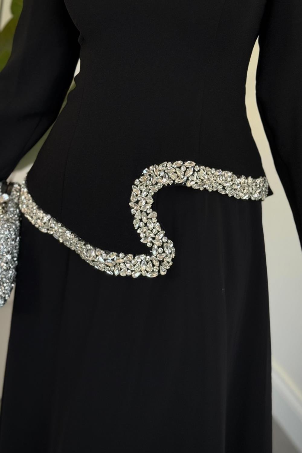 Ravell Boynu Ve Bel Kısmı Taşlı Abiye Siyah