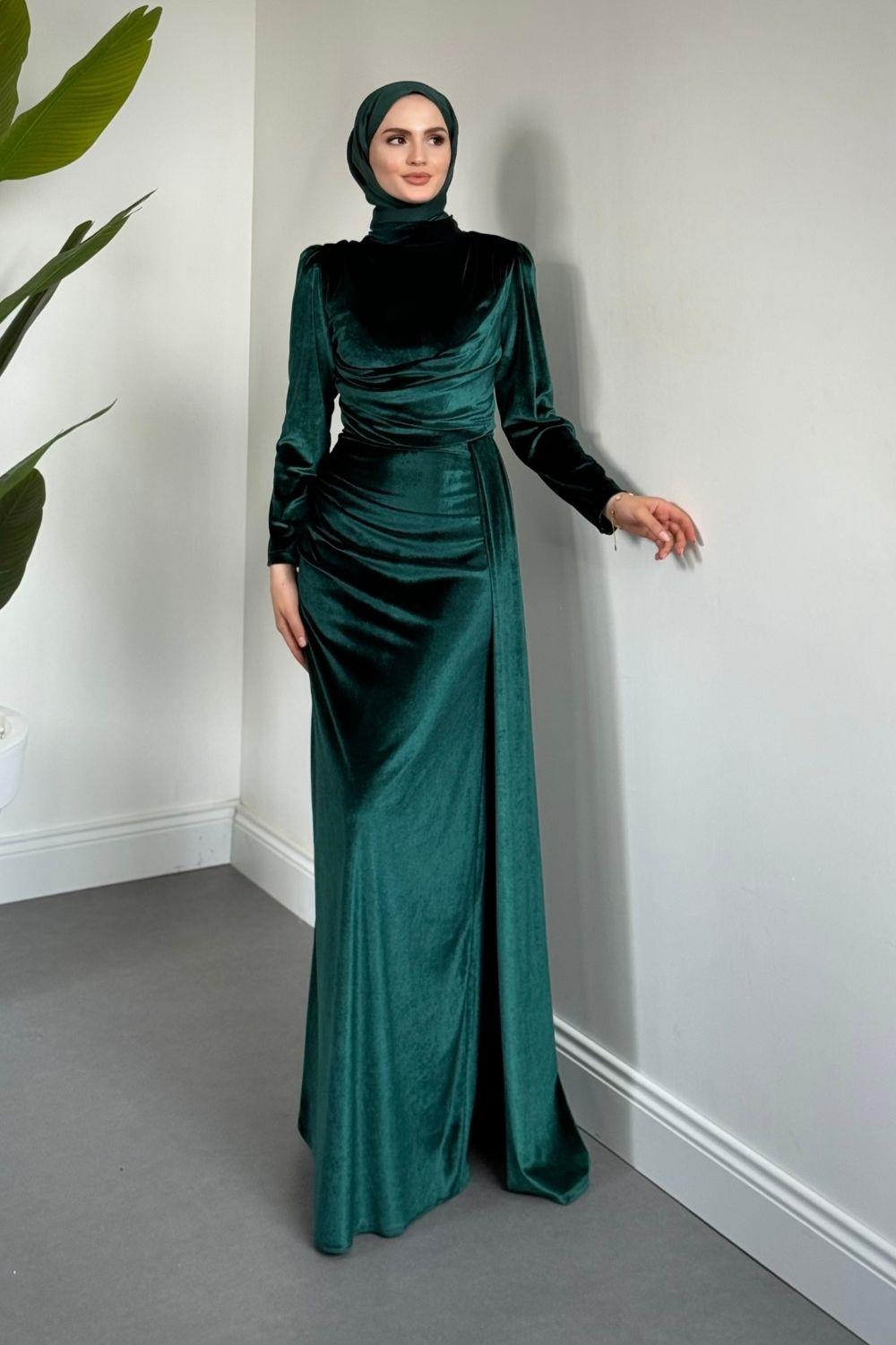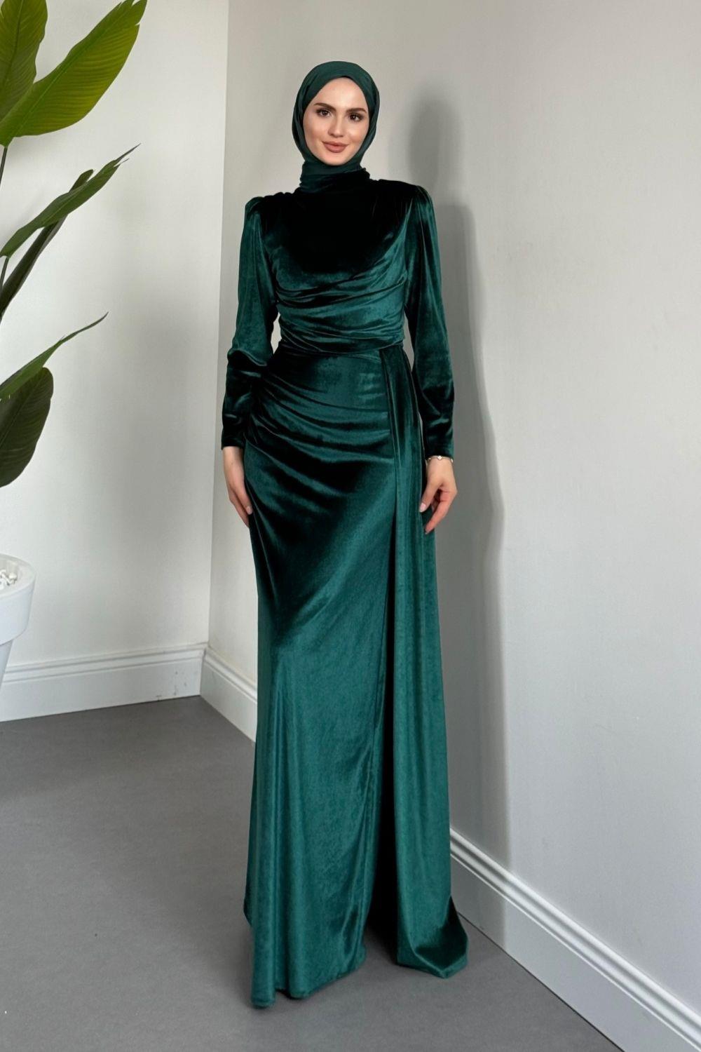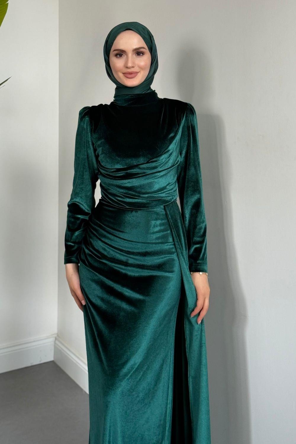 Samy Kadife Kumaş Balık Elbise Zümrüt