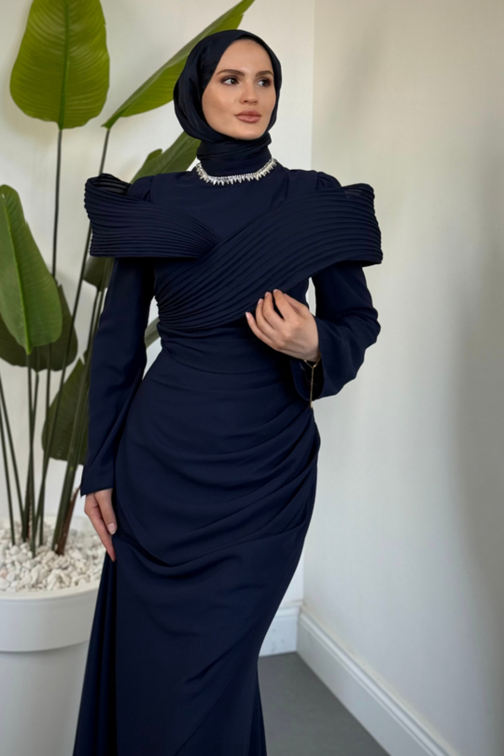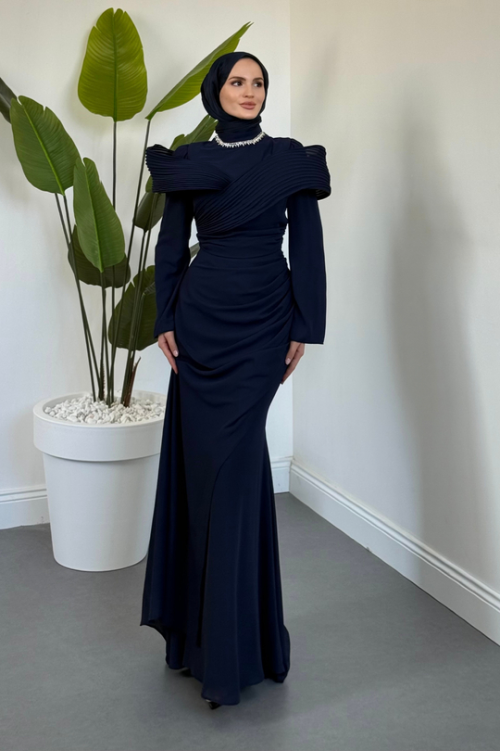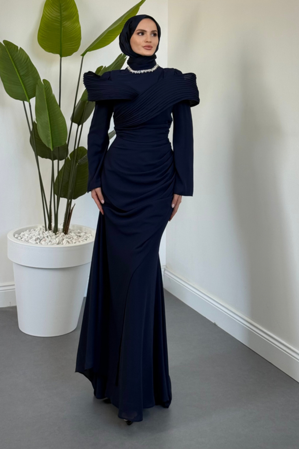 Lyra Pelerinli Balık Abiye Lacivert