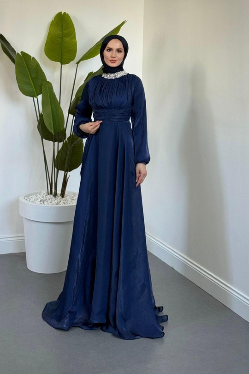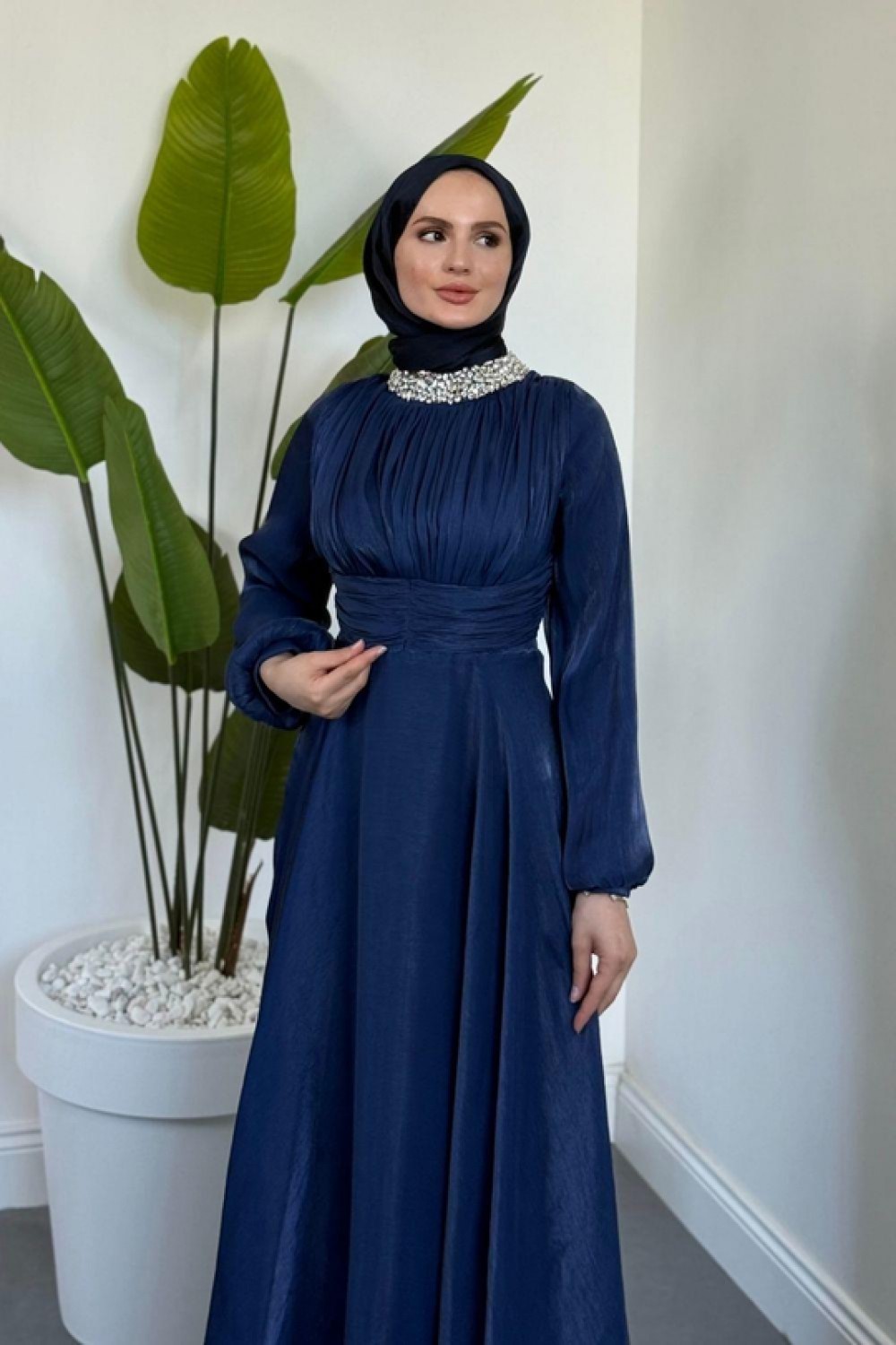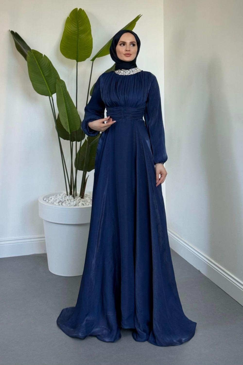 Talya Boynu Taşlı Abiye Lacivert