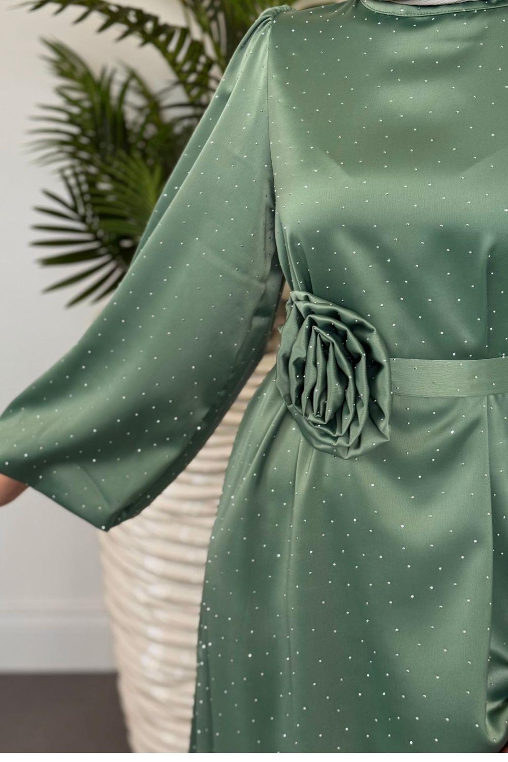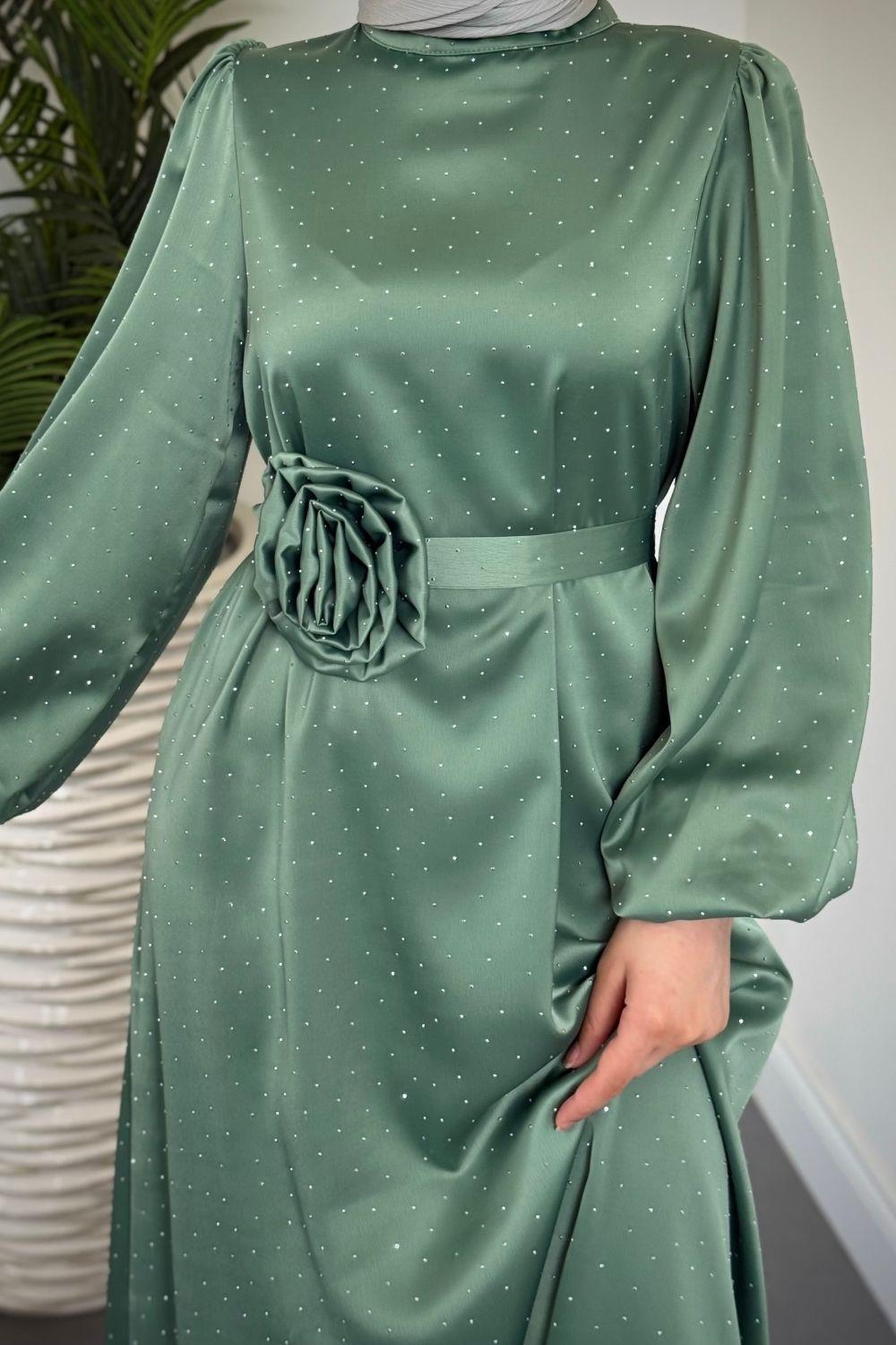 Margherita Taşlı Balon Kol Abiye Mint