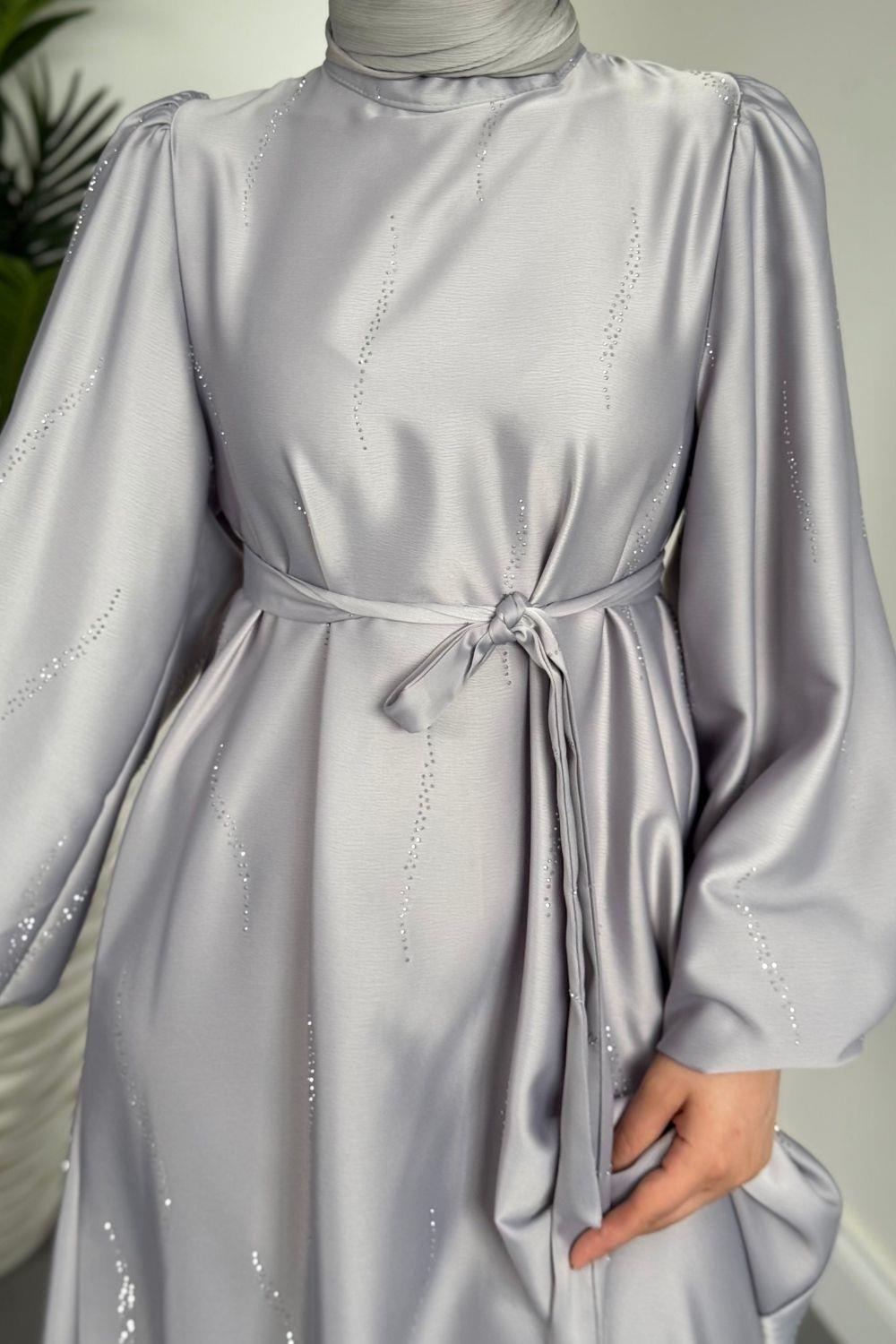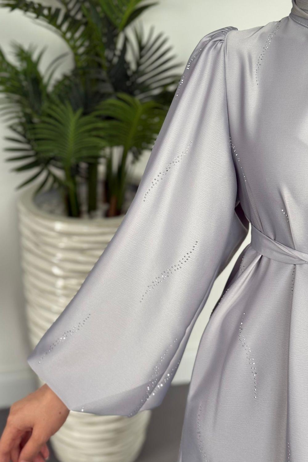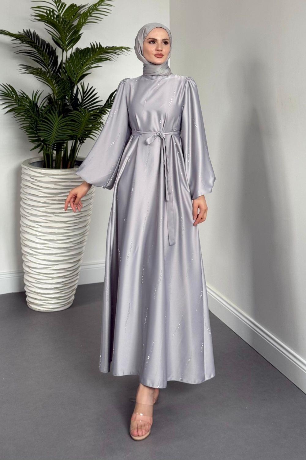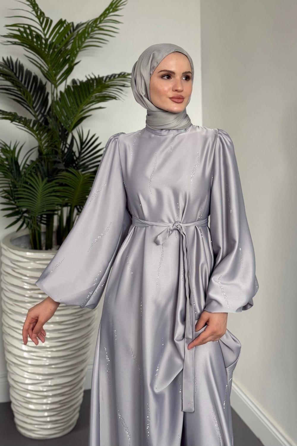 Kaitlyn Taşlı Abiye Gri