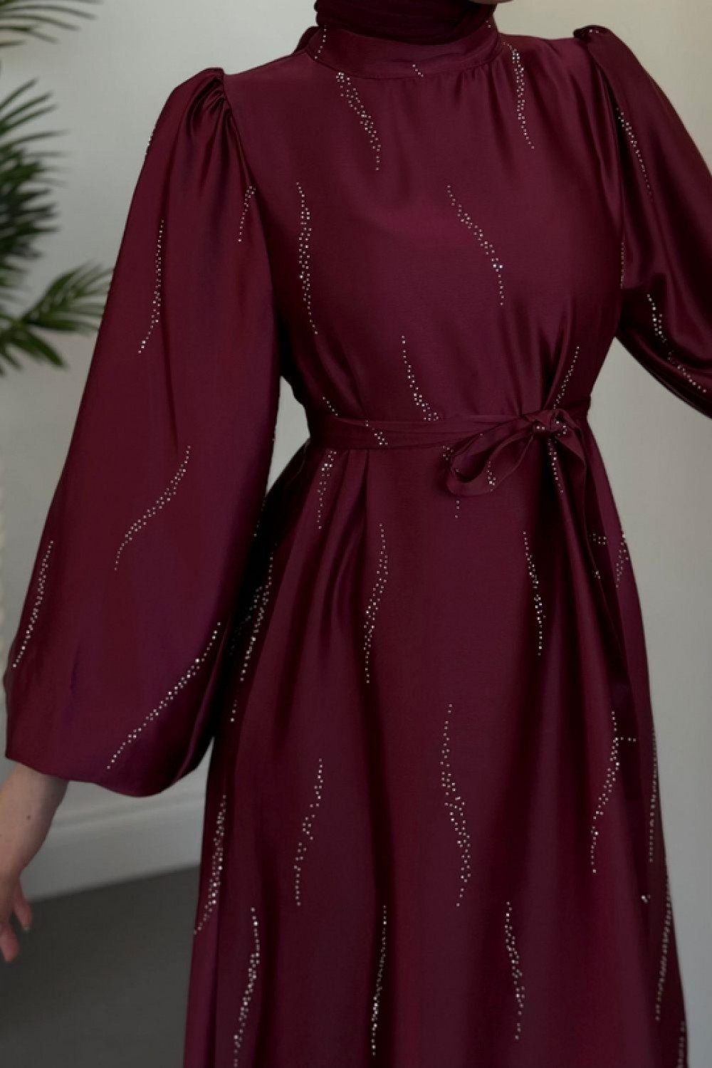 Kaitlyn Taşlı Abiye Bordo