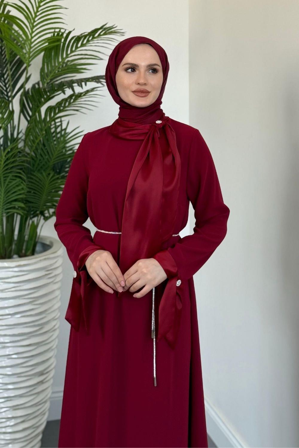 Lavinya Boynu Fiyonk Abiye Bordo