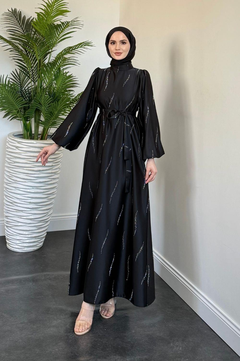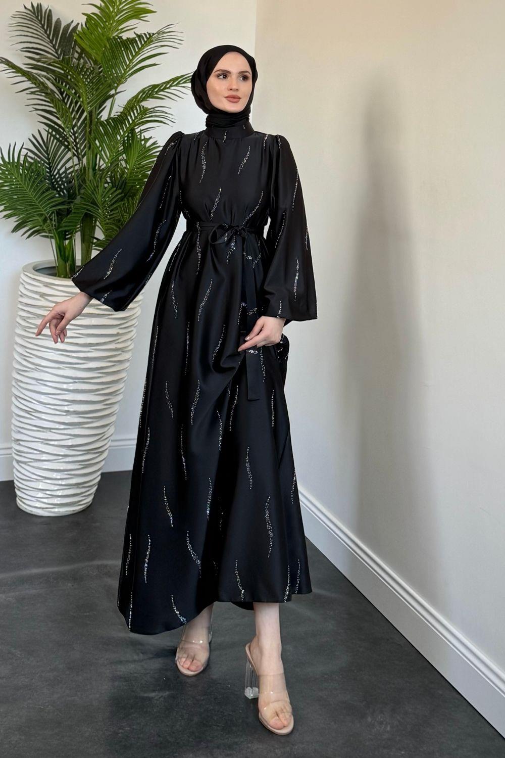Kaitlyn Taşlı Abiye Siyah