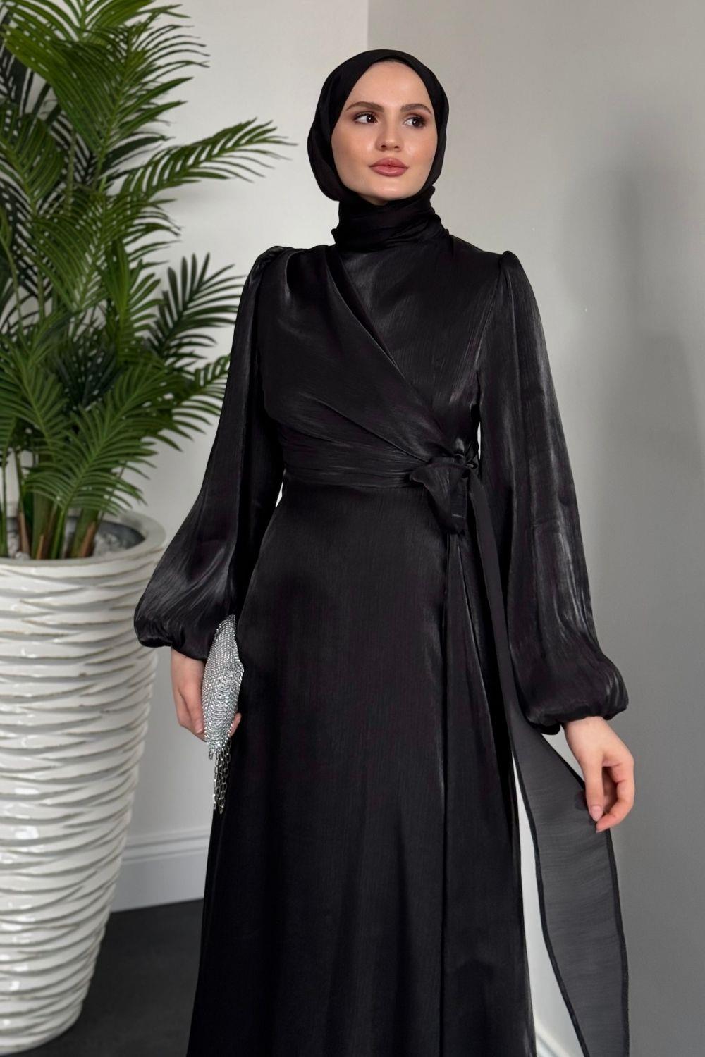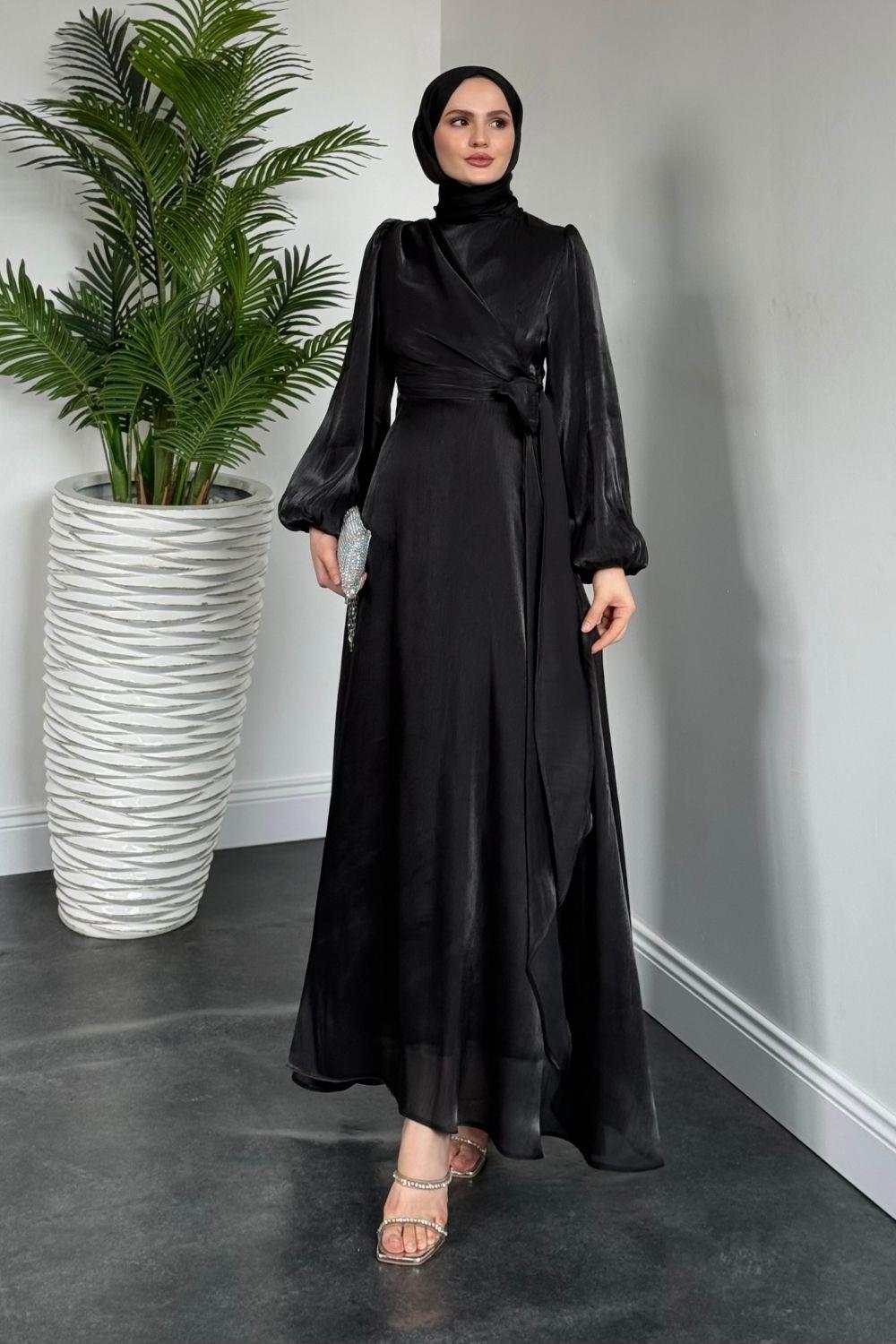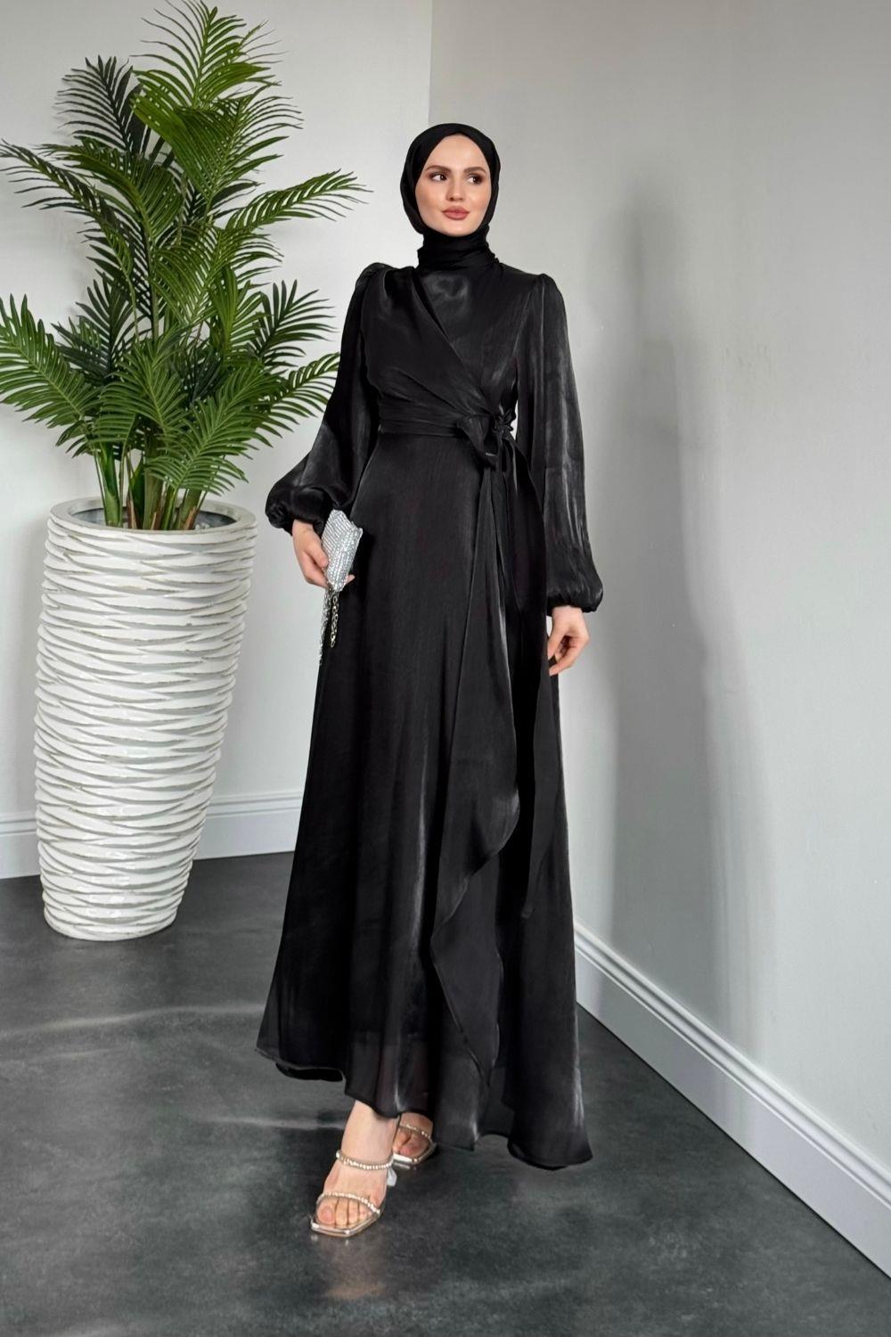 Celia Yandan Bağlamalı Janjan Abiye Siyah