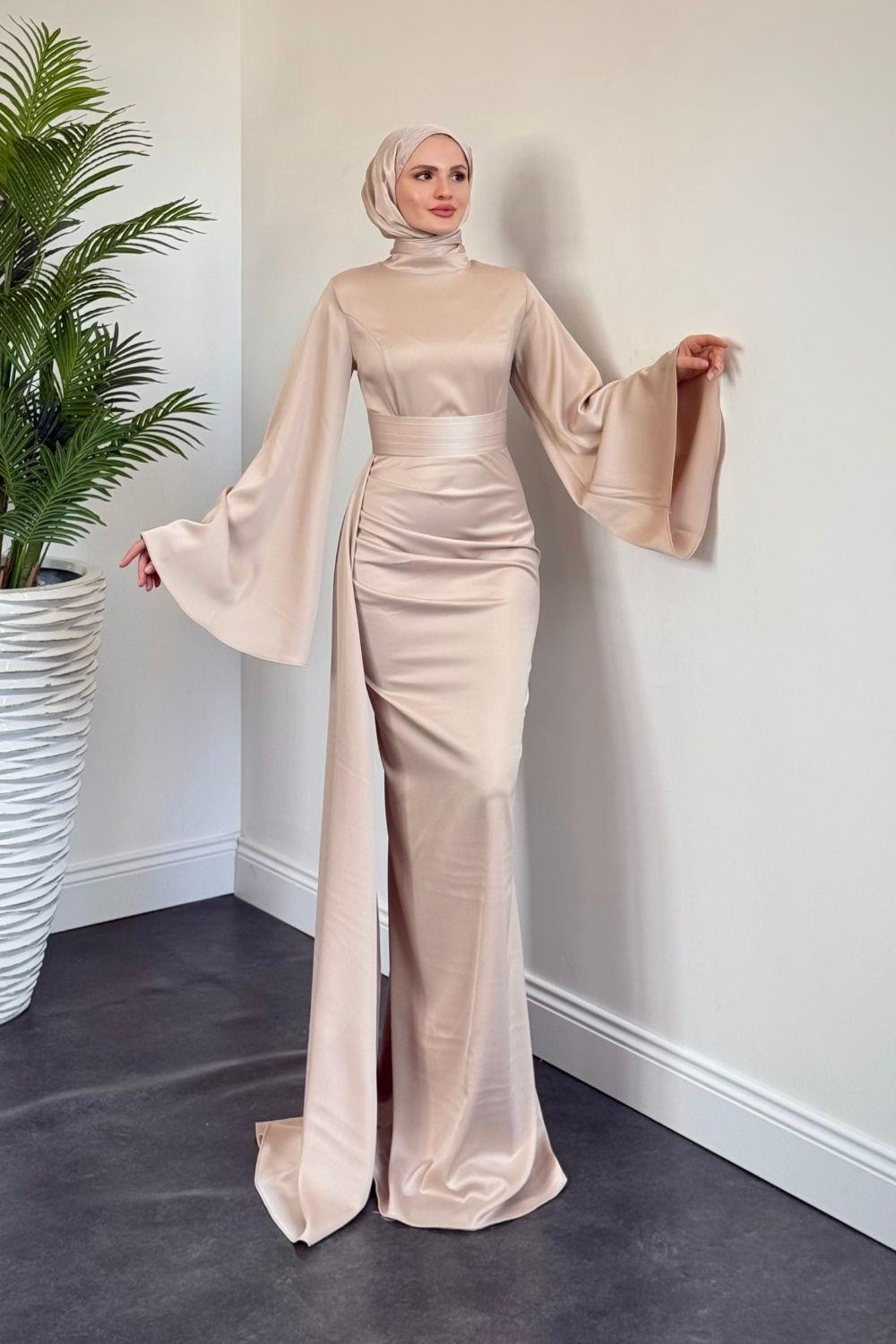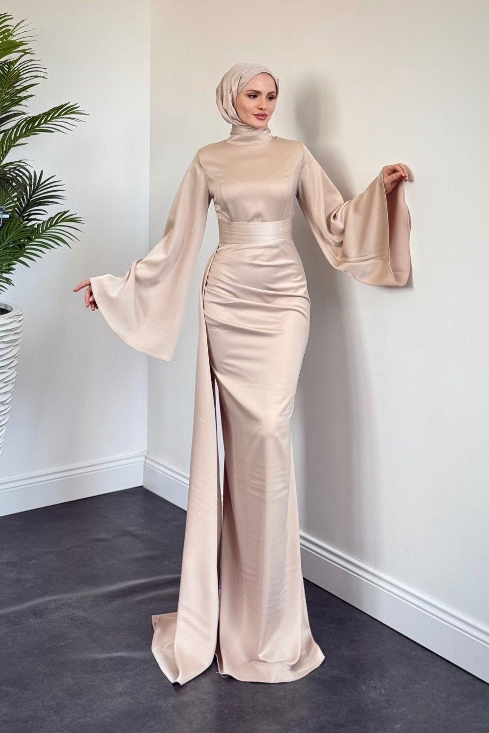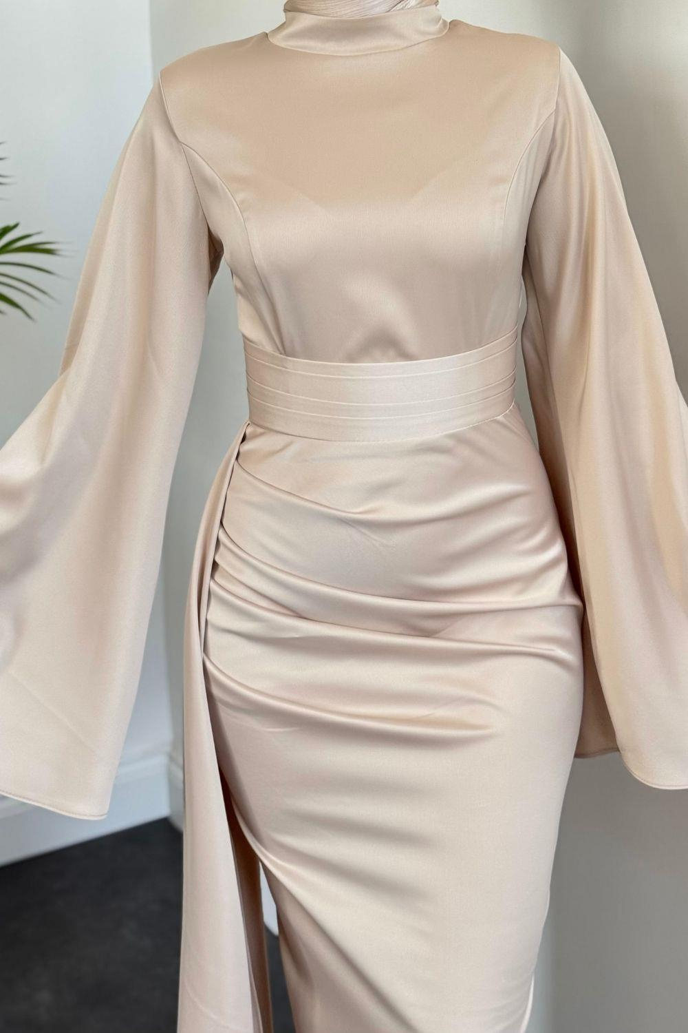 Arabella Pelerinli Saten Balık Abiye Krem