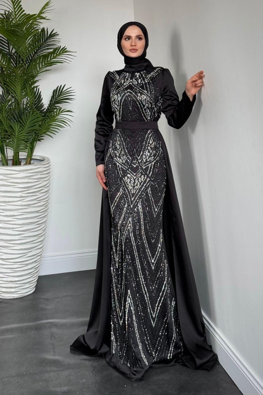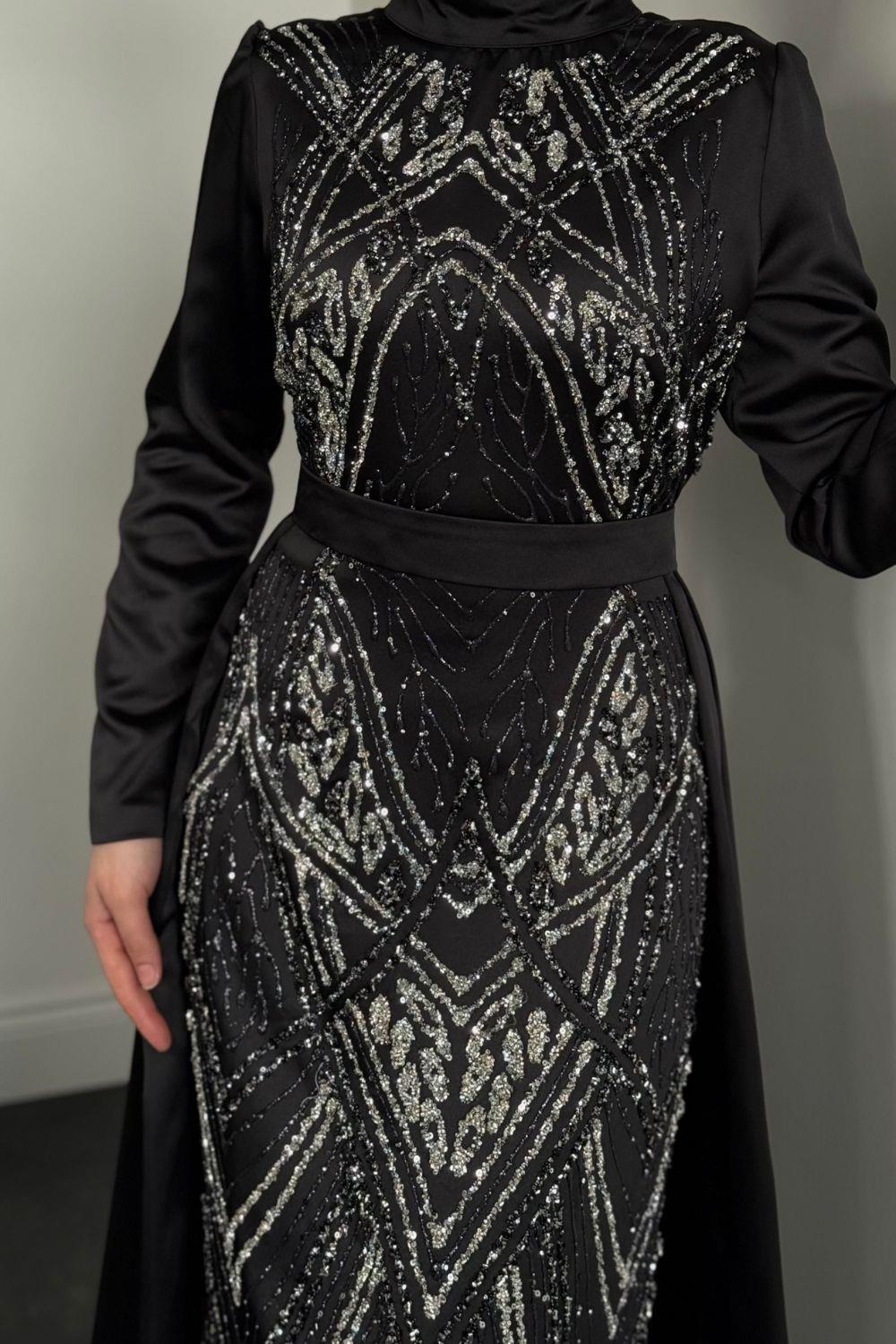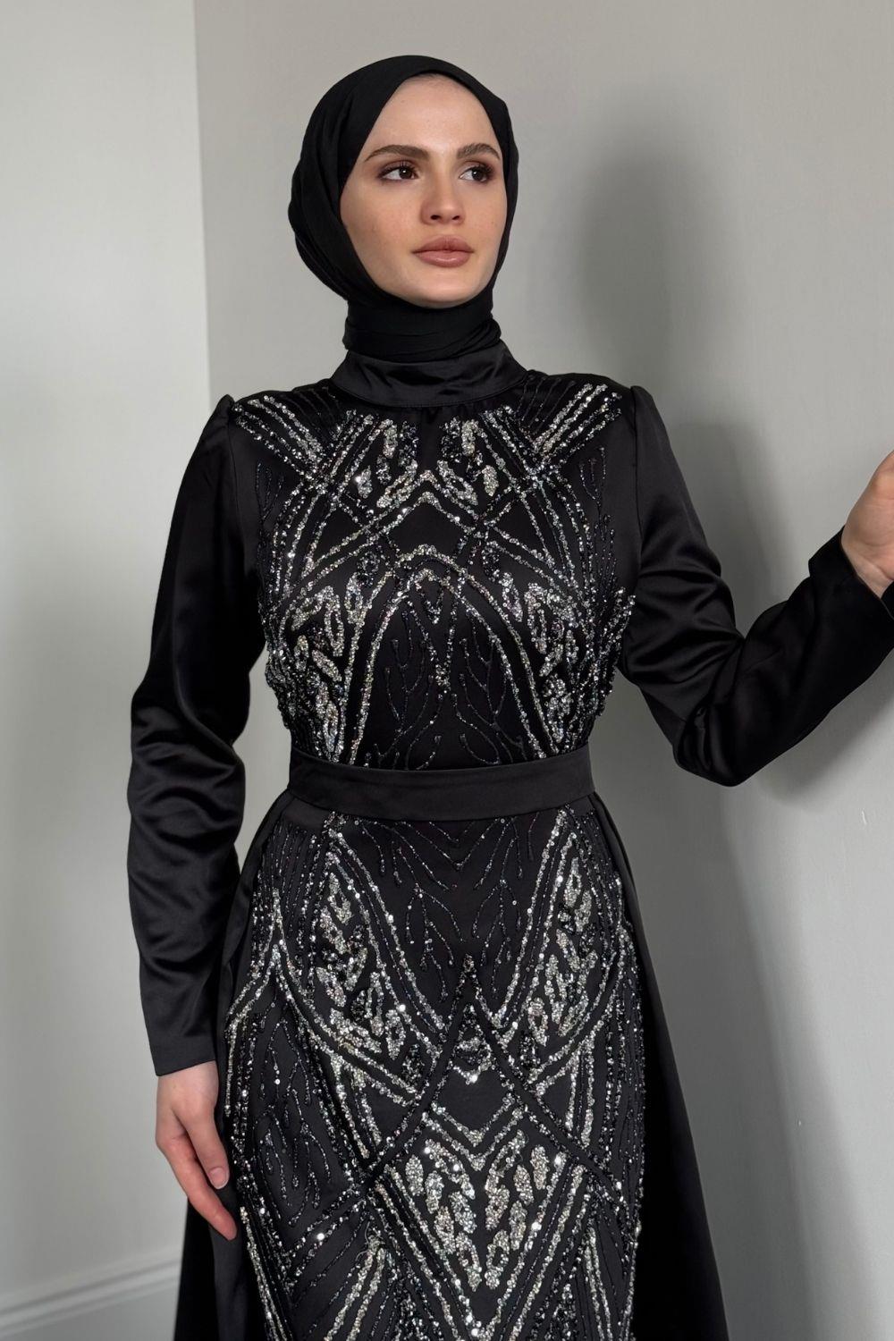 Carmelita Pelerinli Saten Abiye Siyah