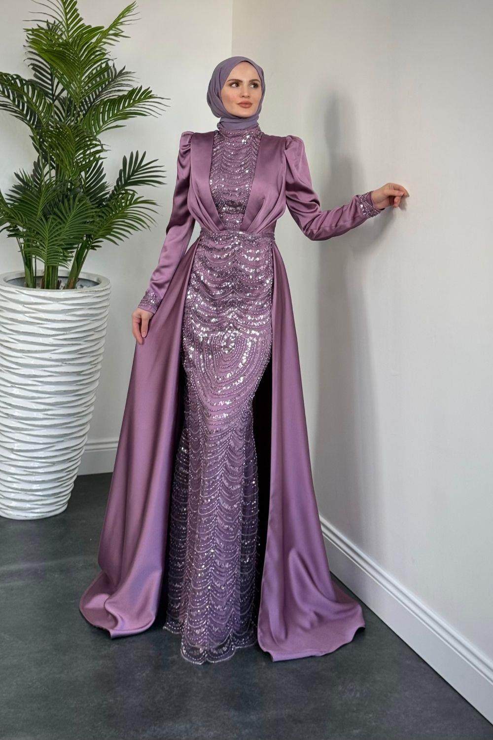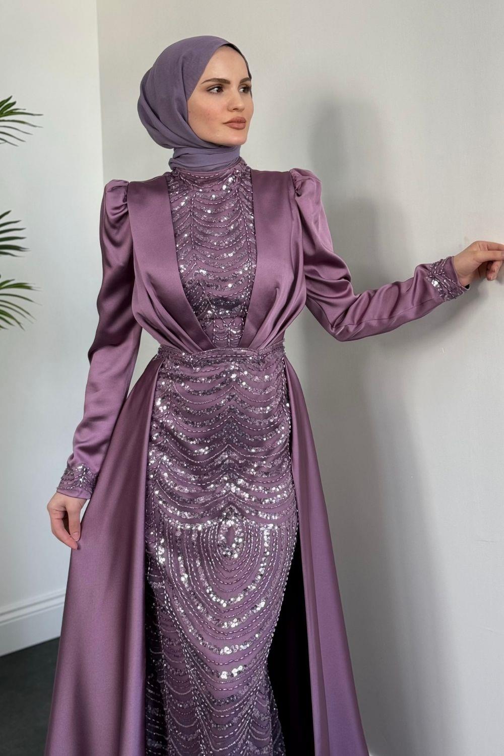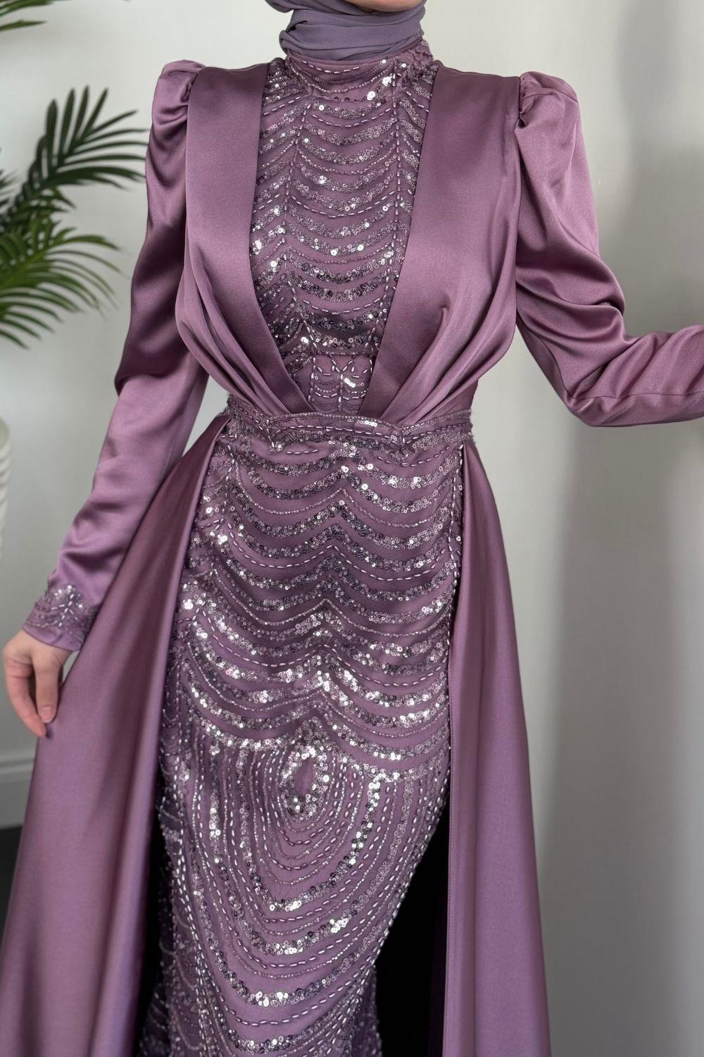 Gabriella Pelerinli Saten Abiye Lila