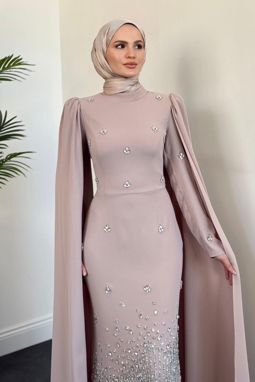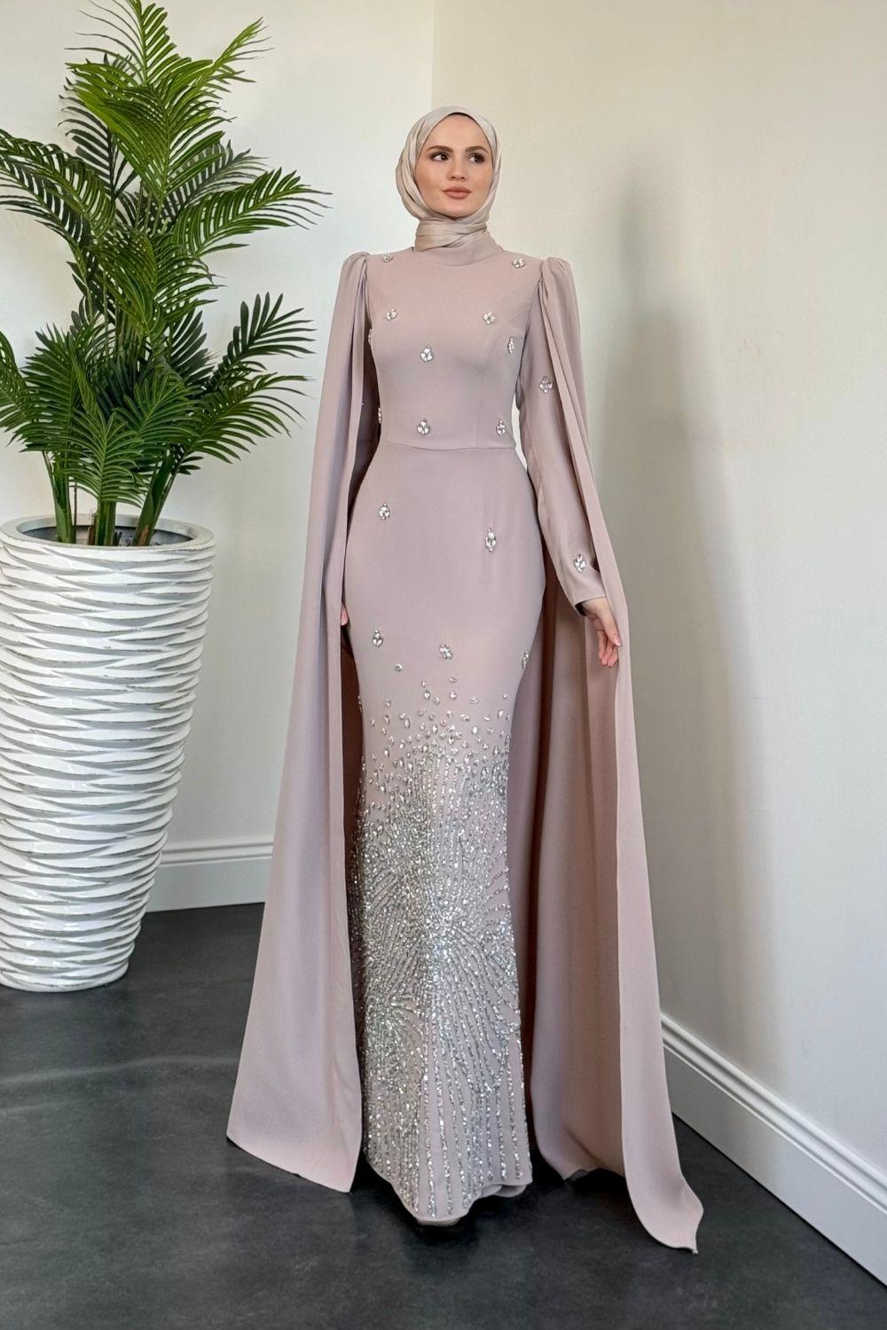 Farah Kolları Pelerinli Abiye Bej