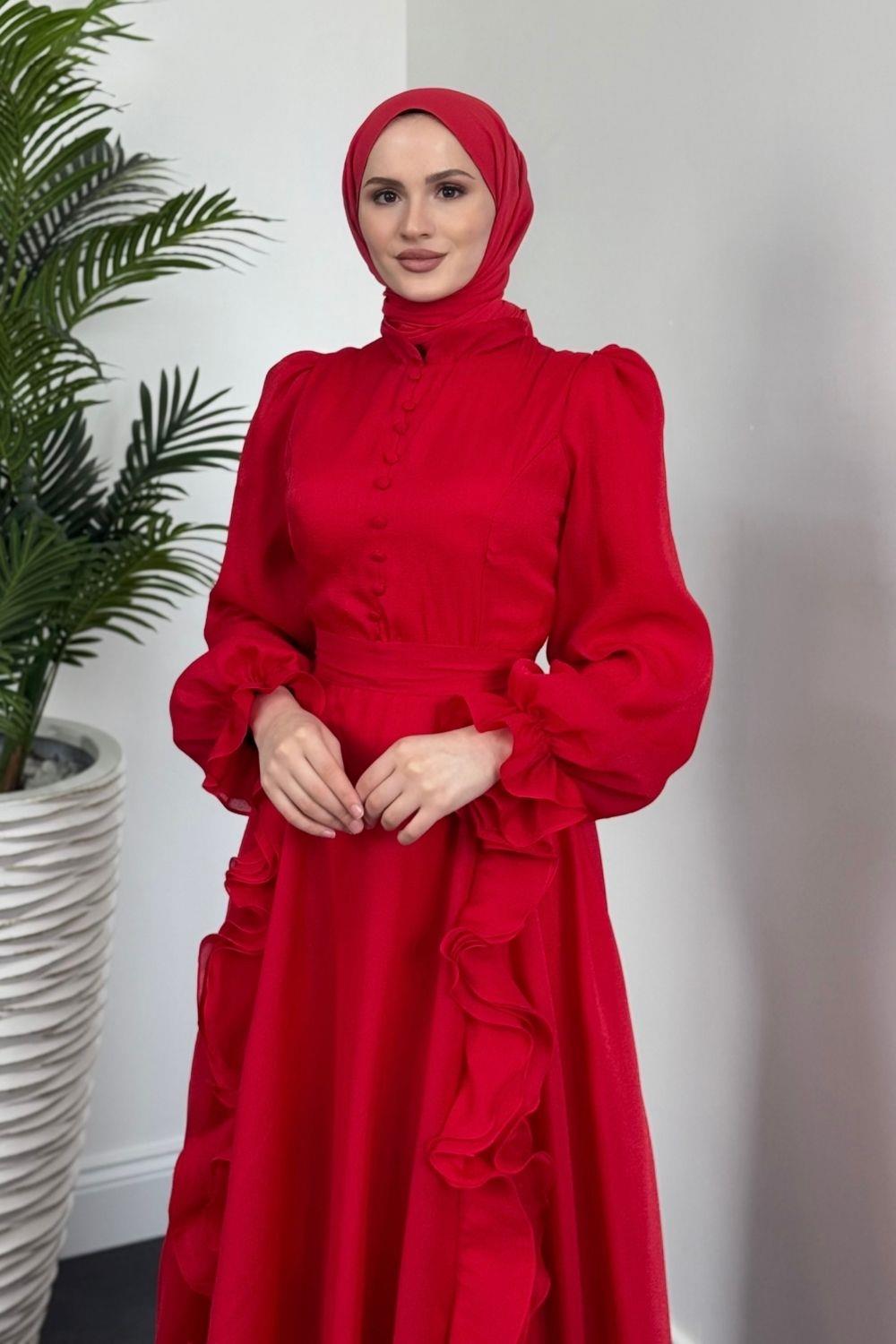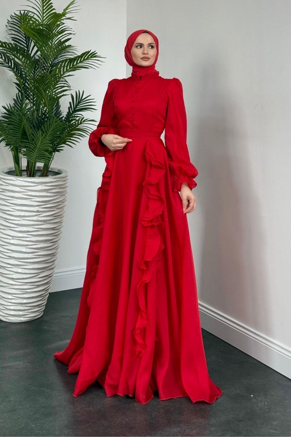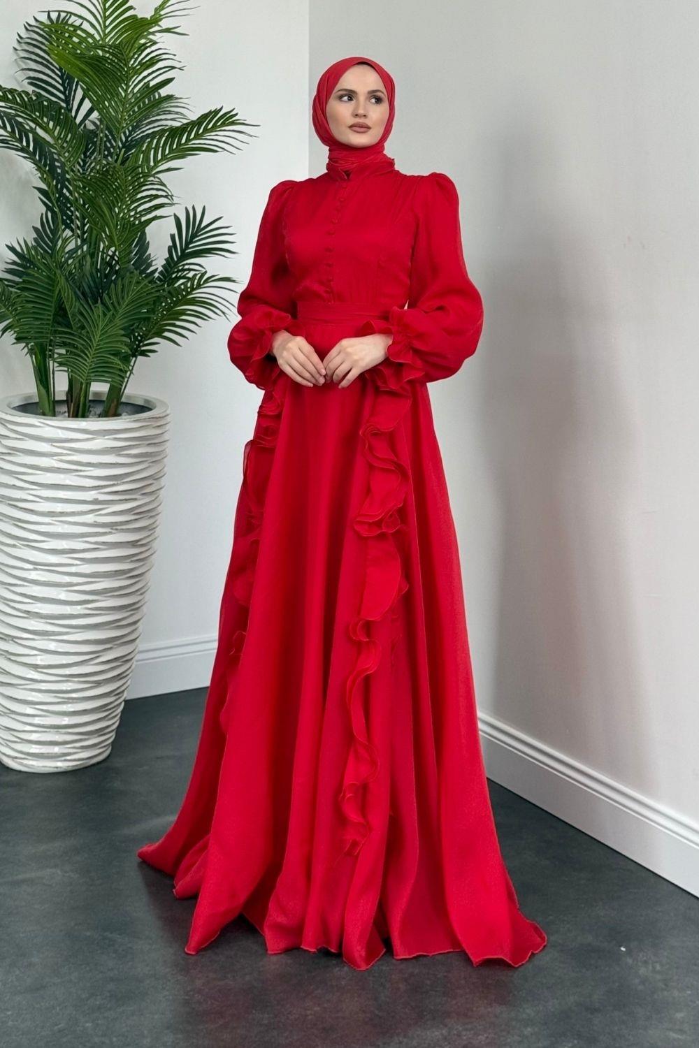 Samira Fırfırlı Janjan Abiye Kırmızı