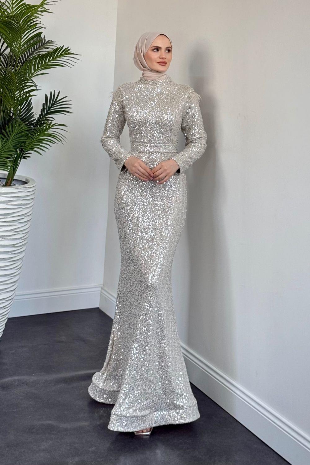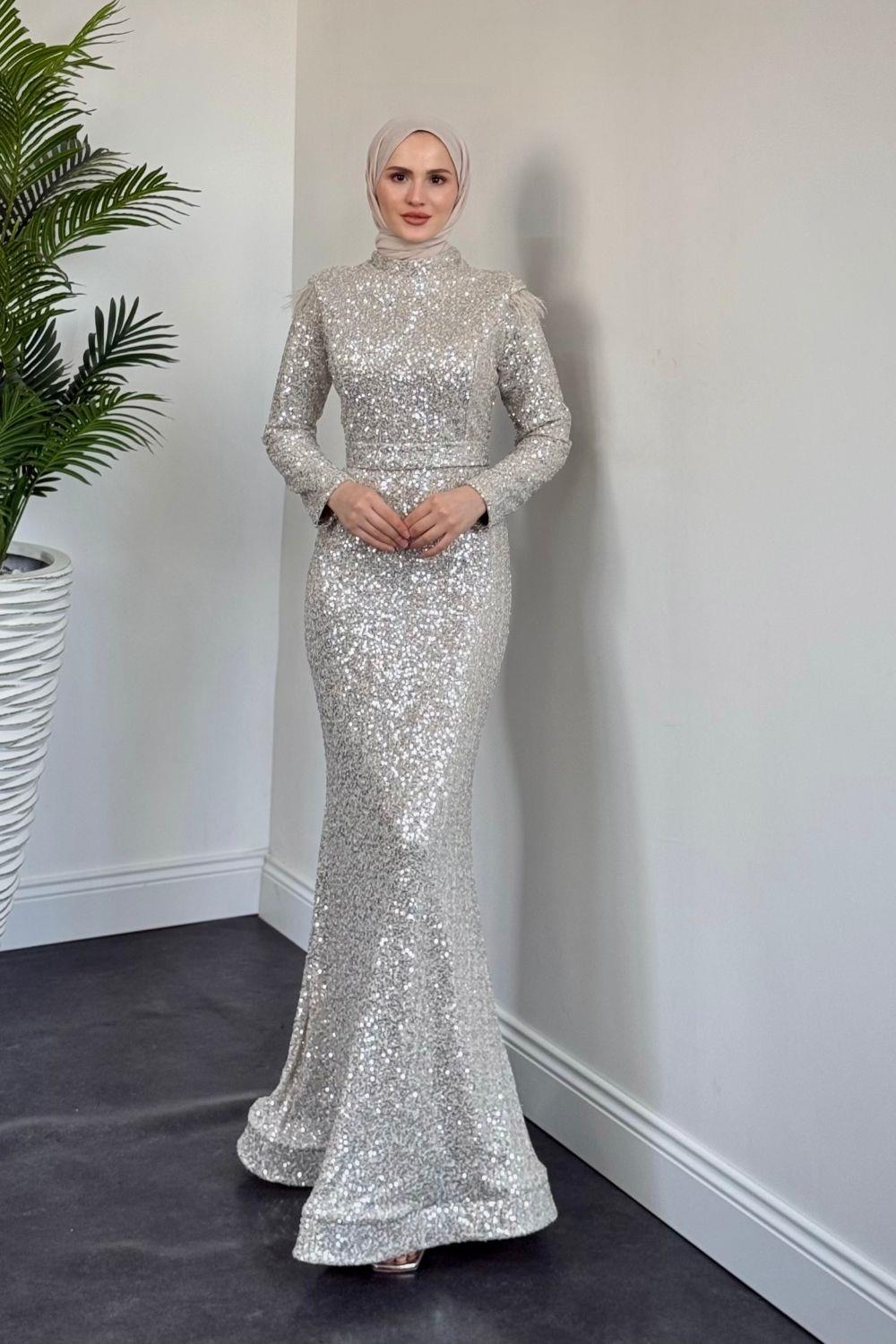 Lalin Payetli Balık Abiye Krem