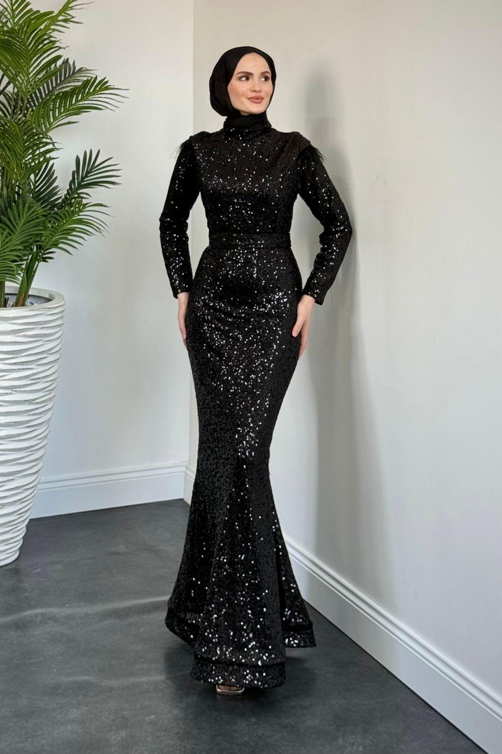 Lalin Payetli Balık Abiye Siyah