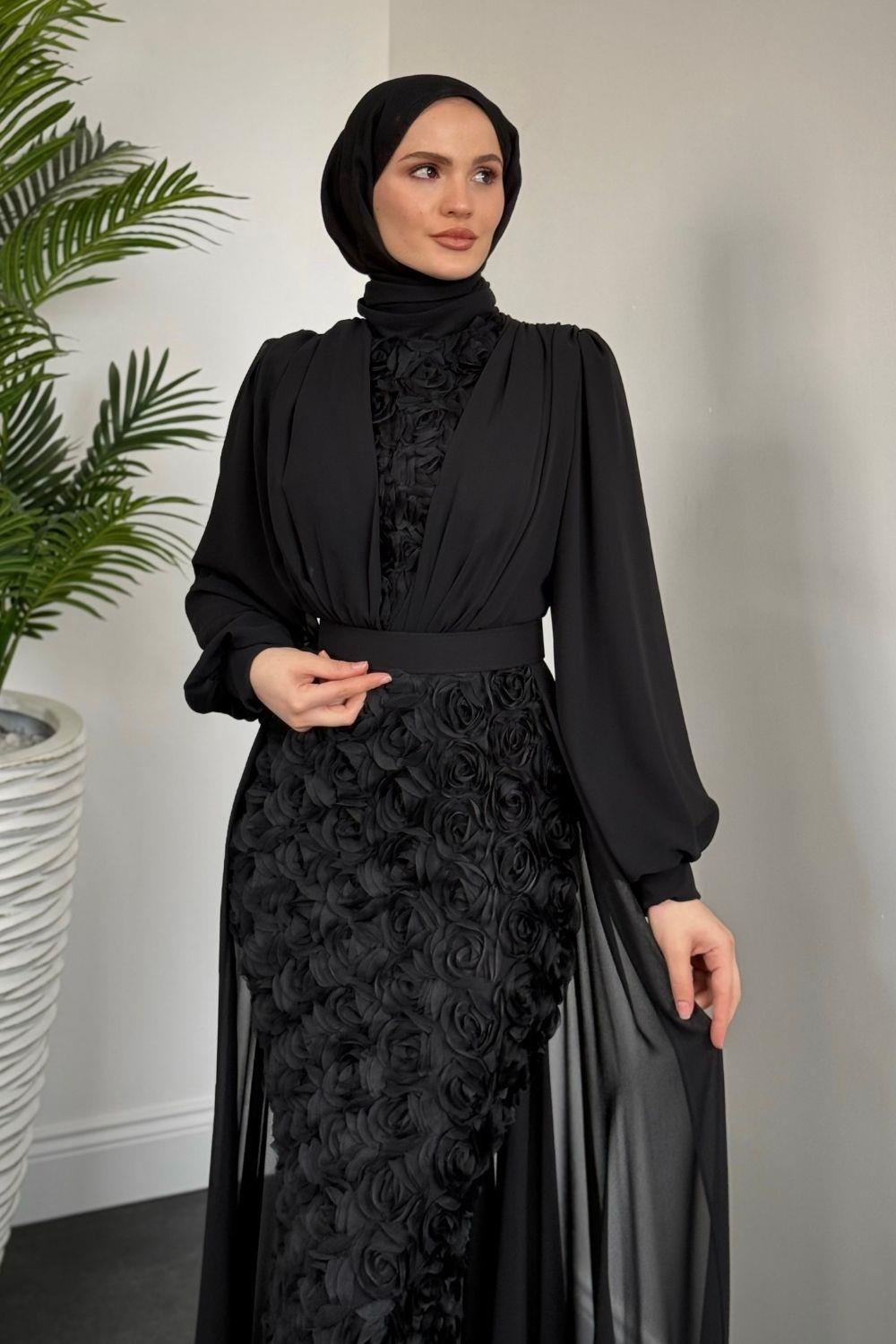 Mozella Güllü Abiye Siyah