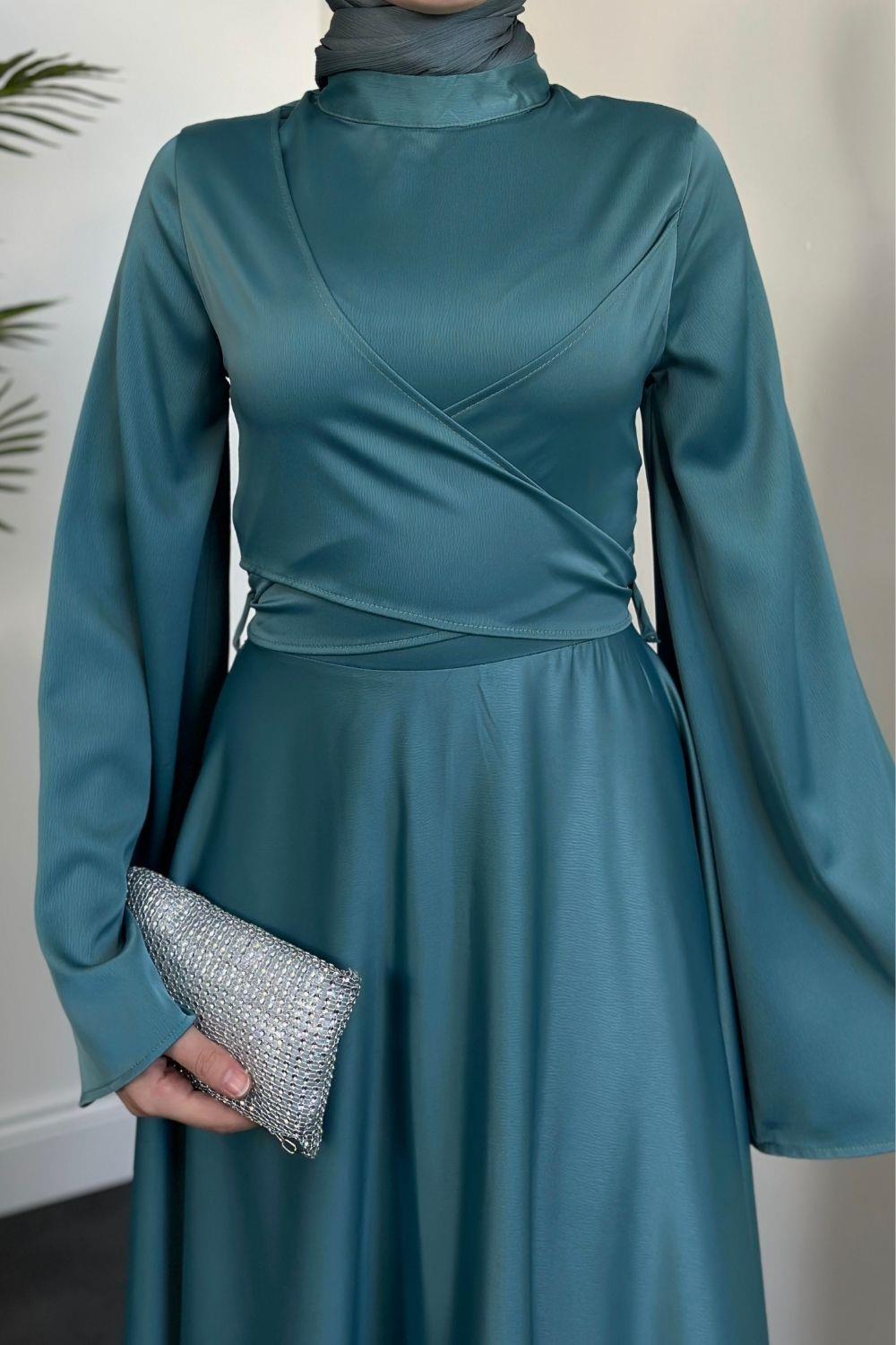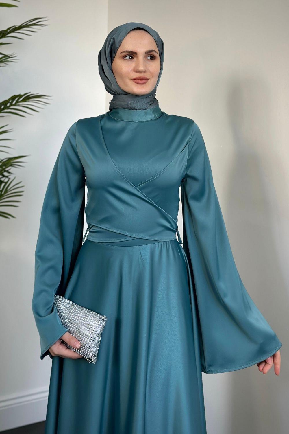 Pary Önü Çapraz Abiye Turkuaz