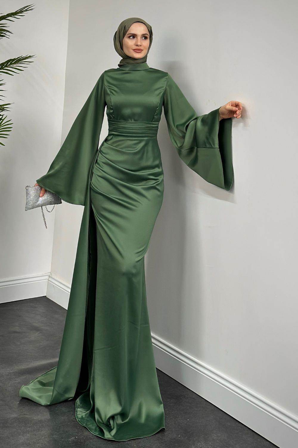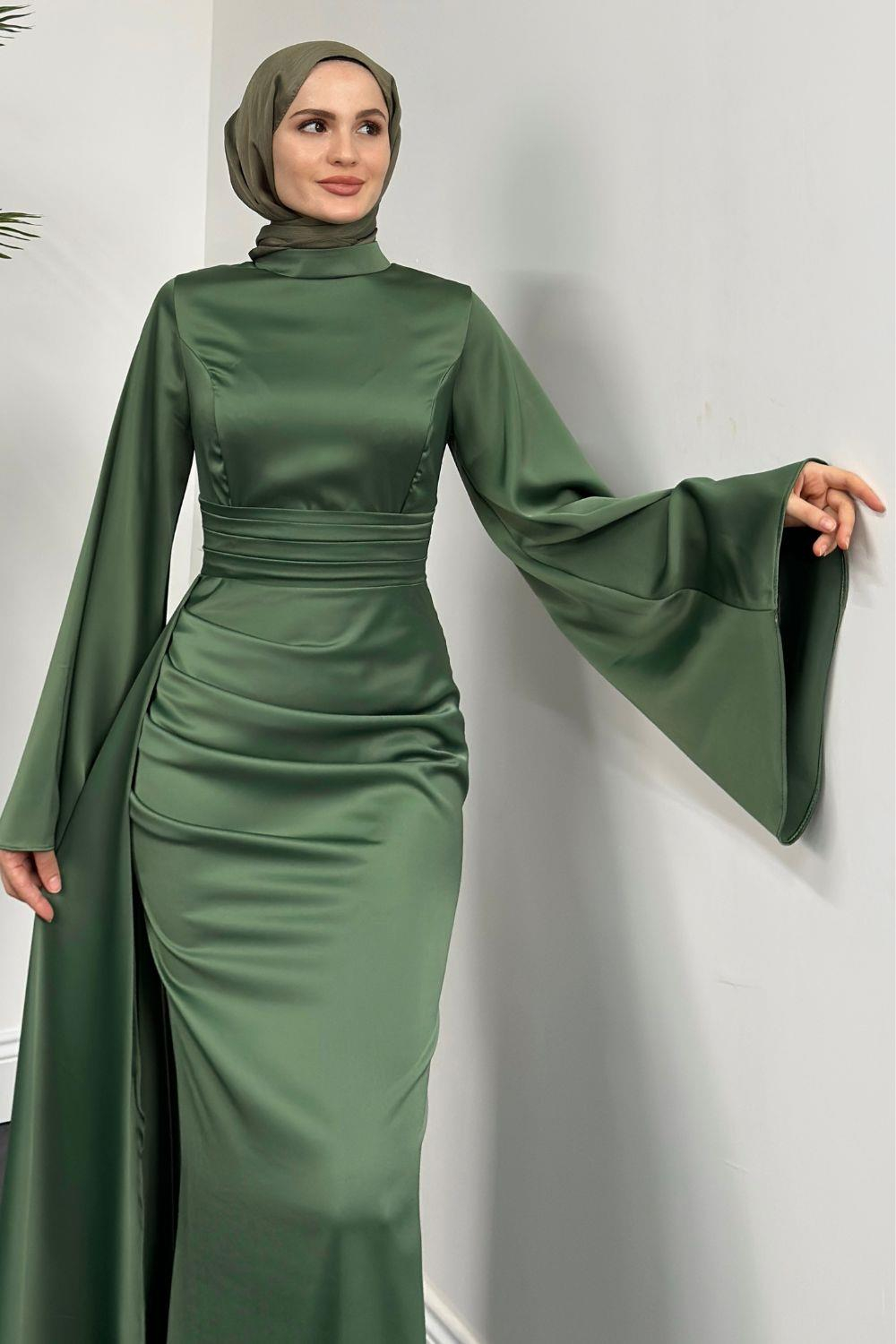 Arabella Pelerinli Saten Balık Abiye Haki
