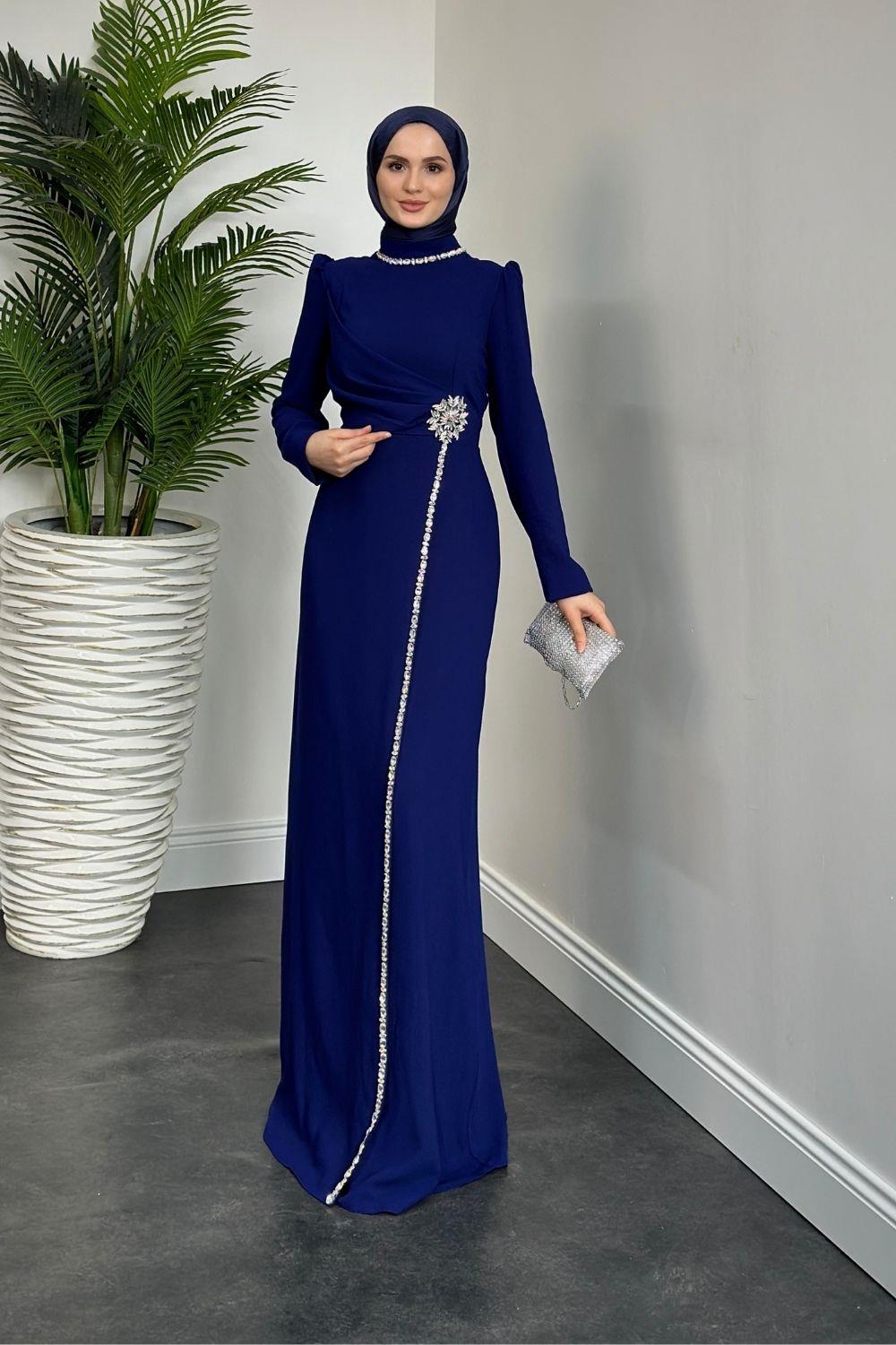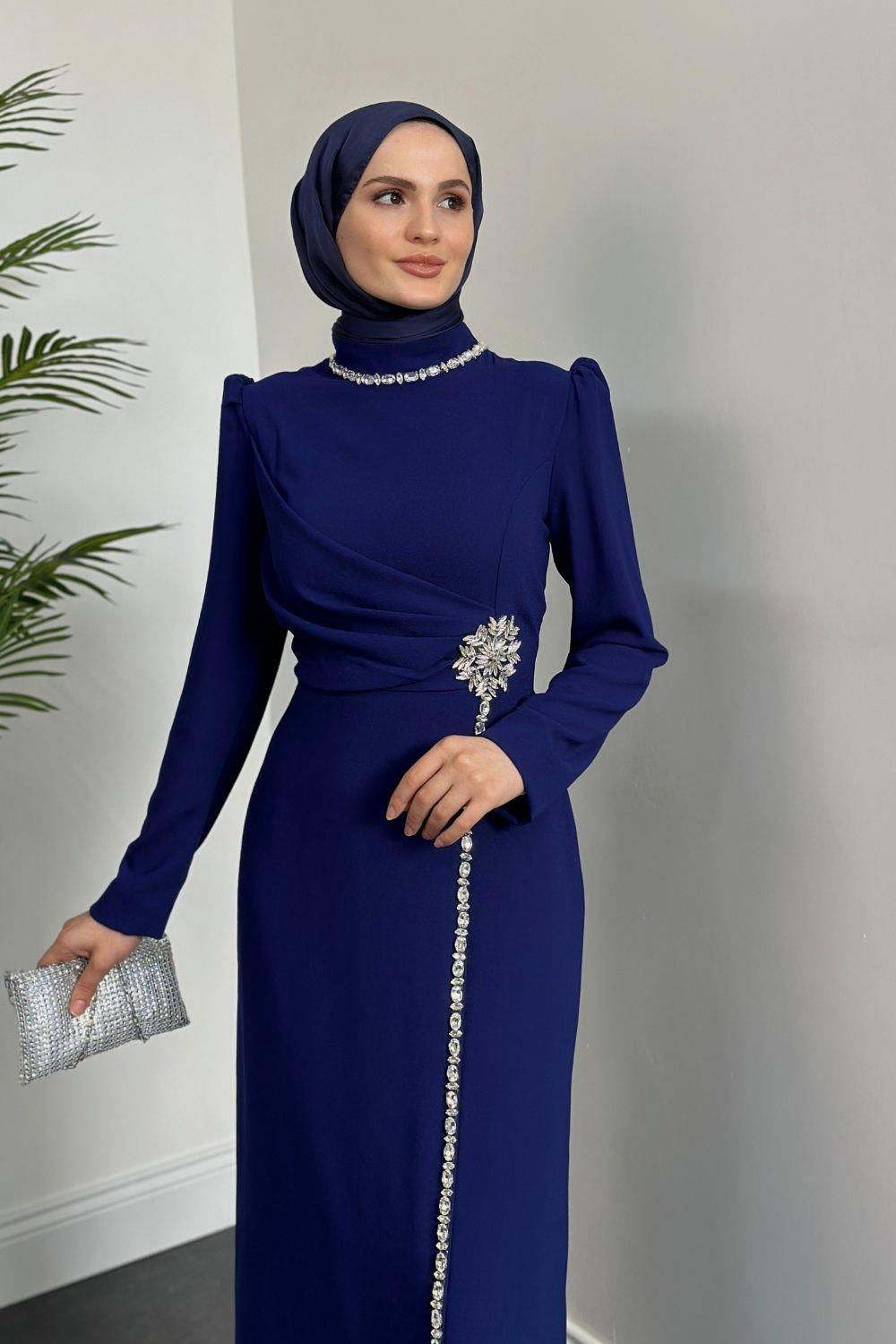 Martha Kar Taneli Taşlı Abiye Lacivert