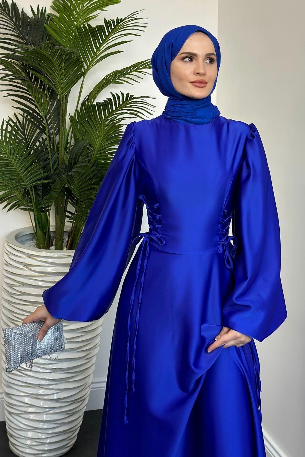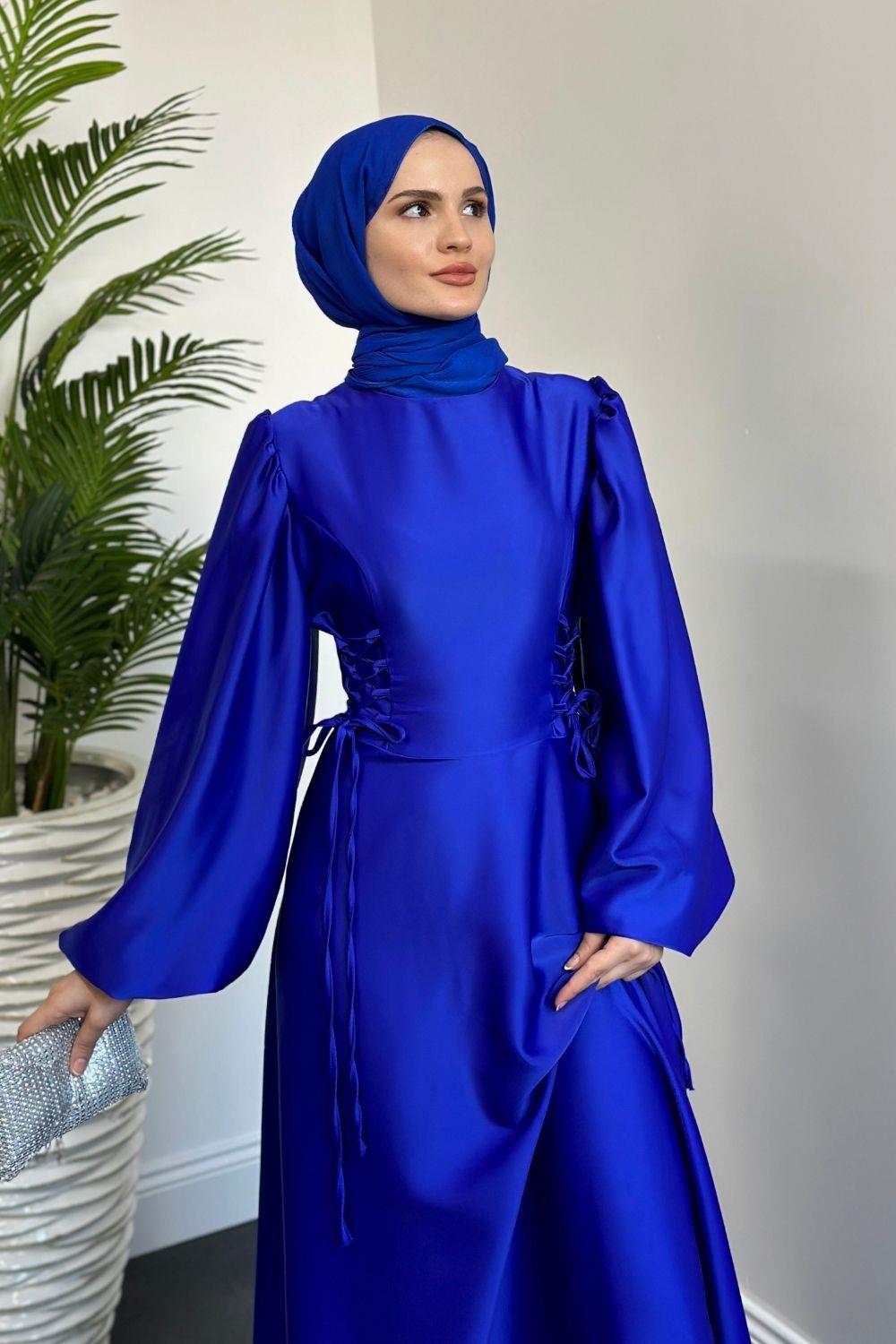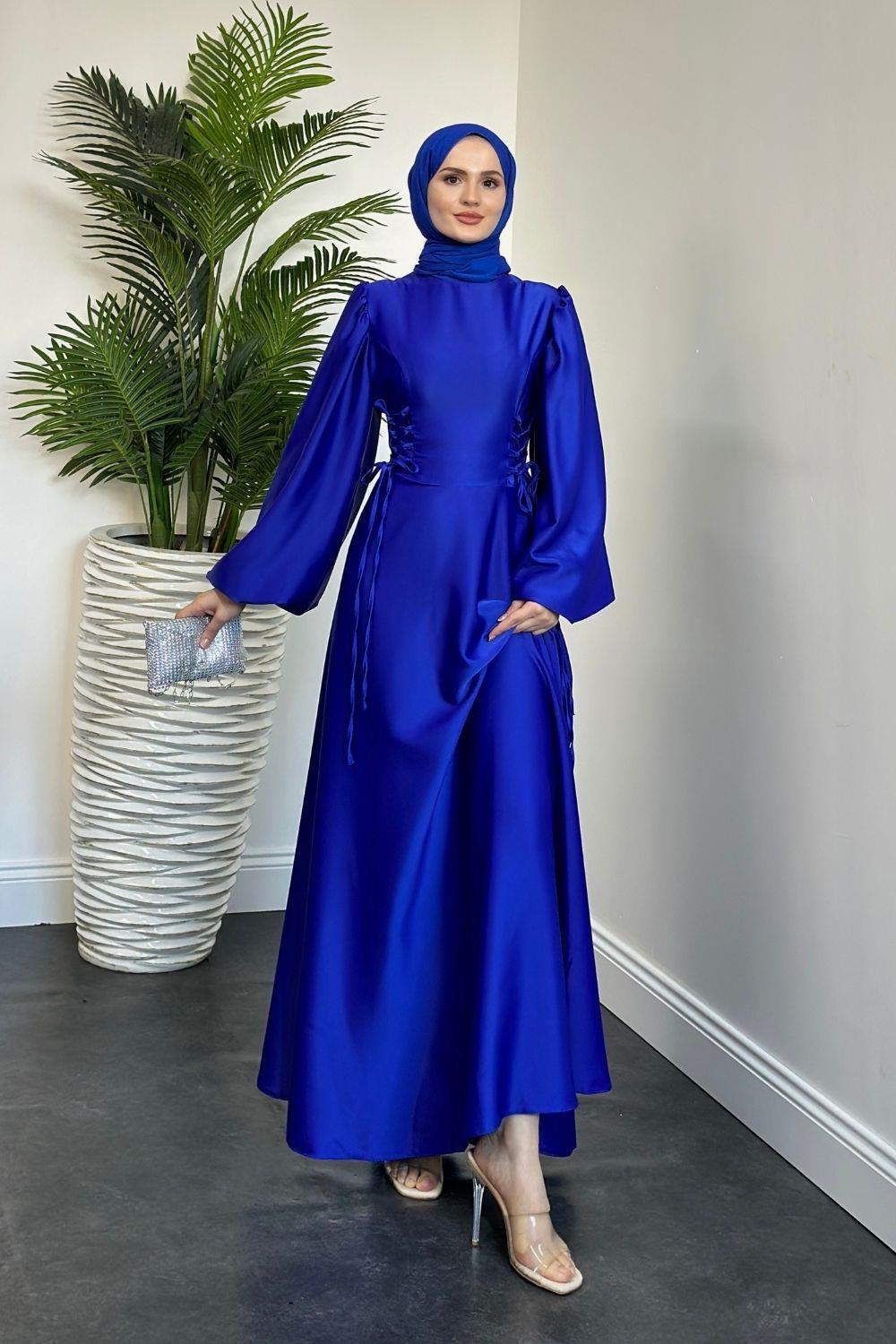Orya Yanları Sıkmalı Saten Abiye Sax
