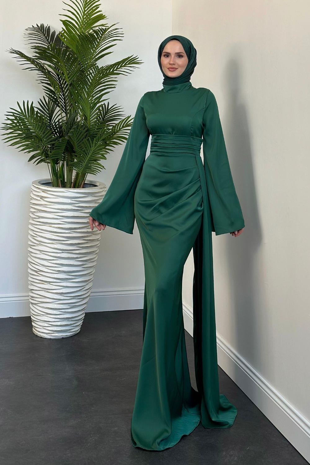 Arabella Pelerinli Saten Balık Abiye Zümrüt