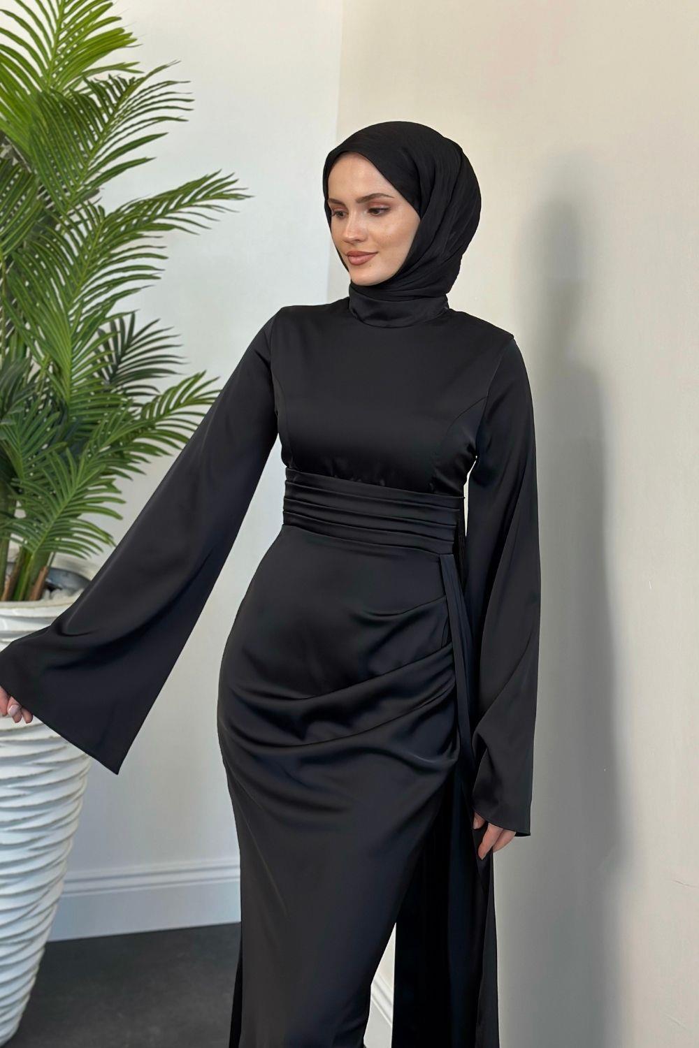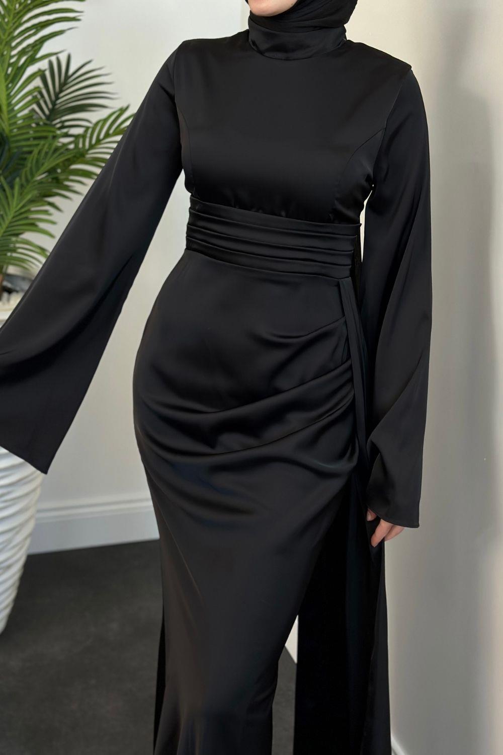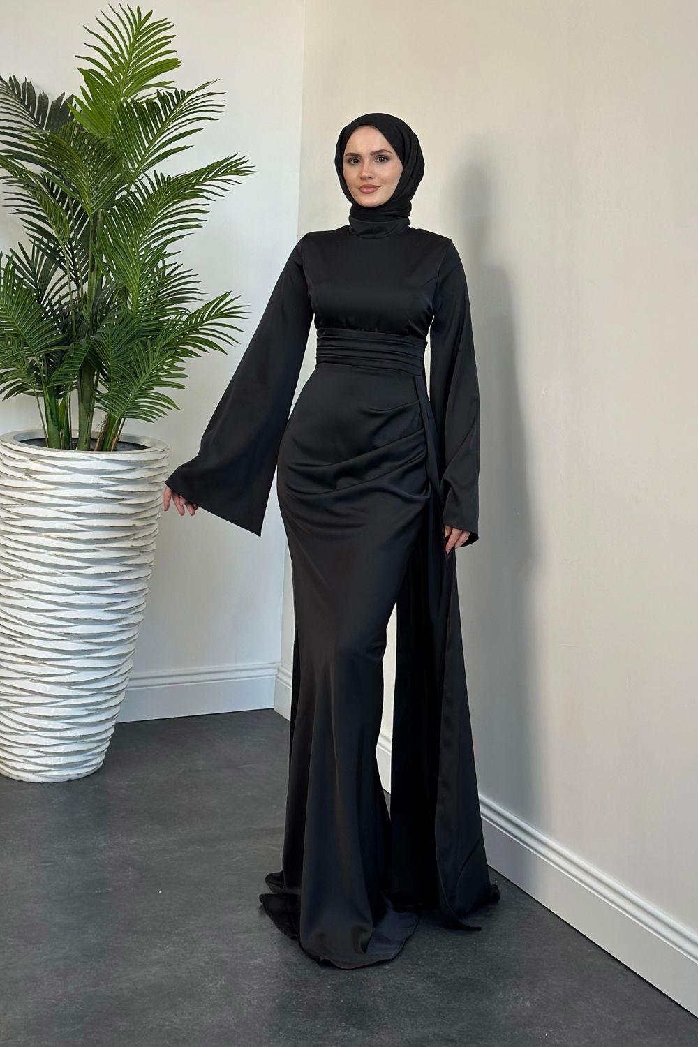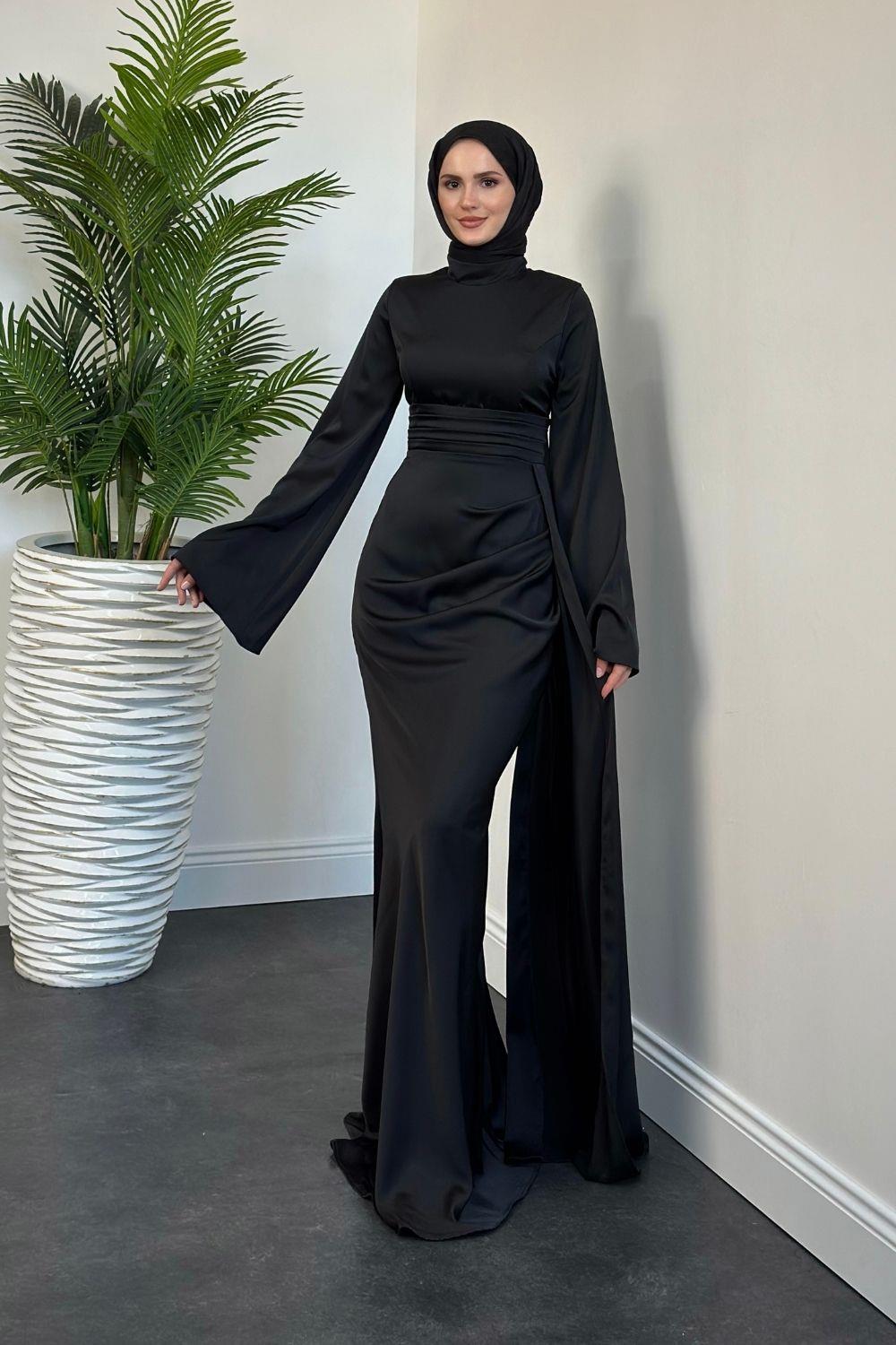 Arabella Pelerinli Saten Balık Abiye Siyah