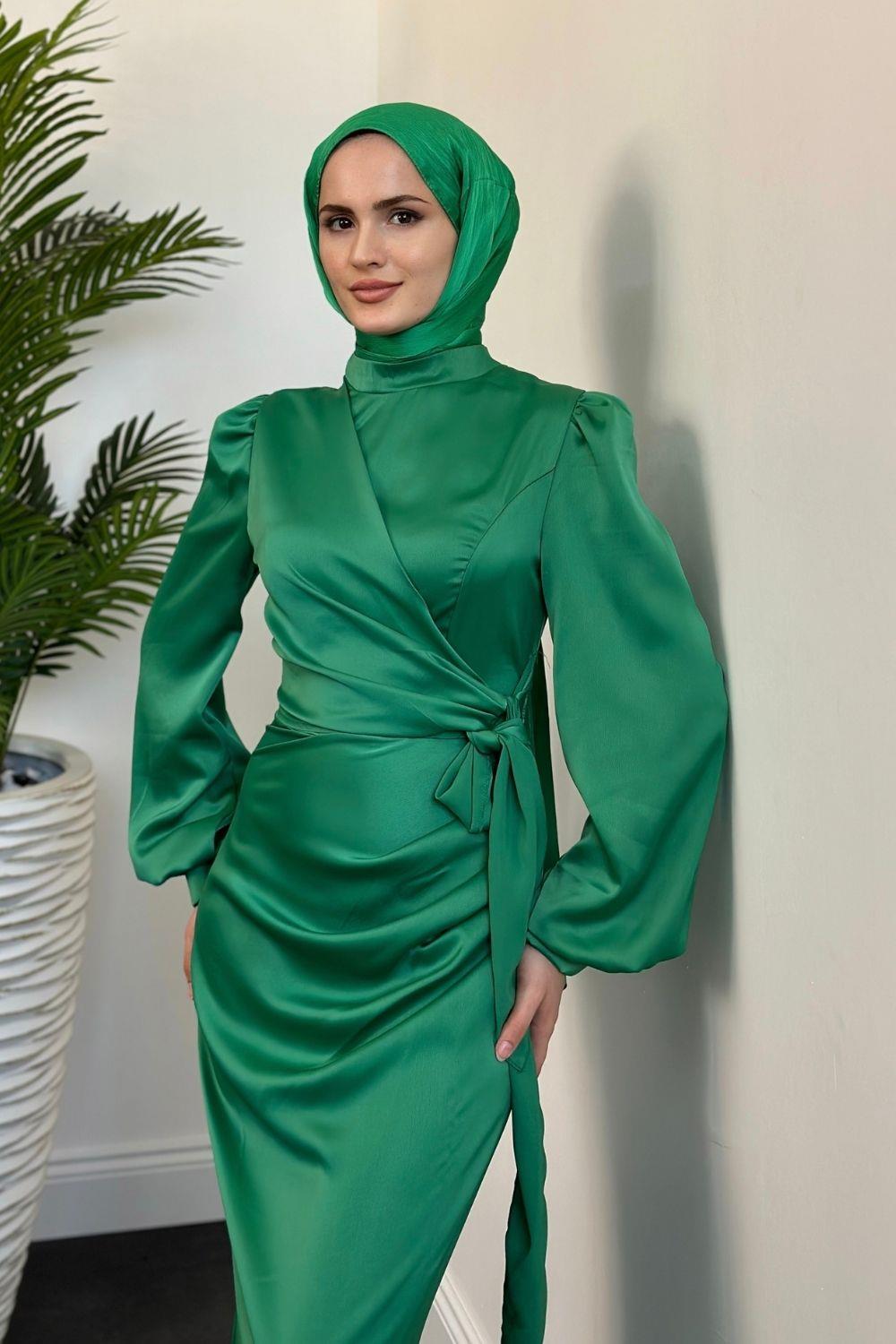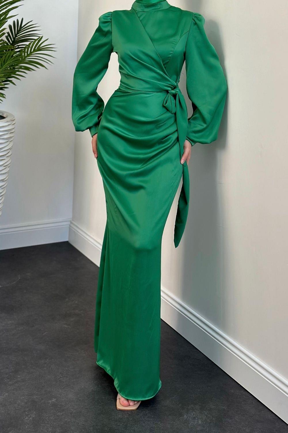 Orlenda Drape Detay Balık Saten Abiye Benetton