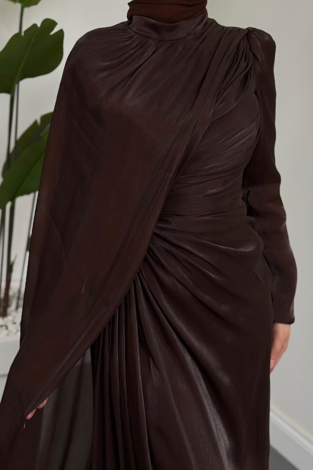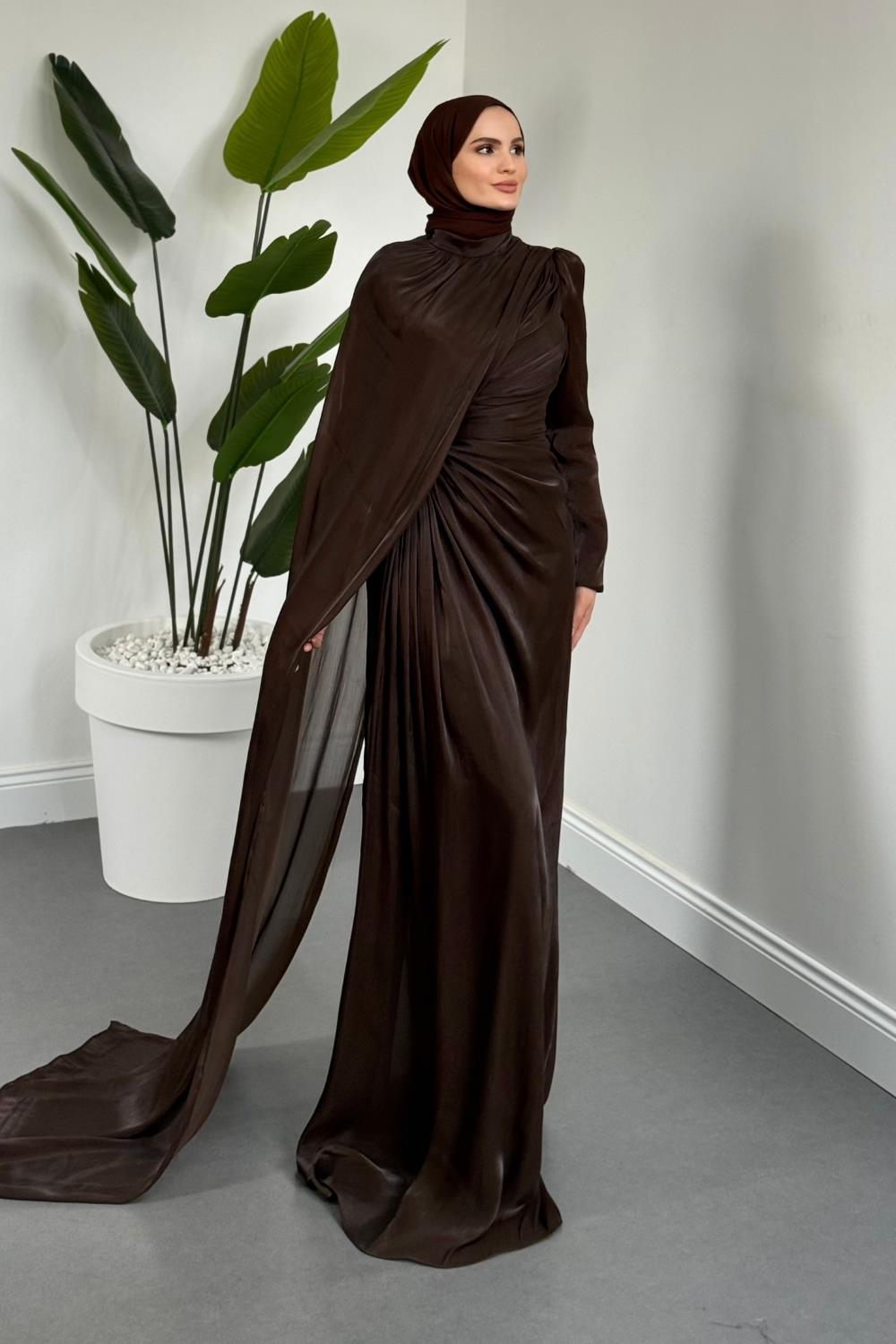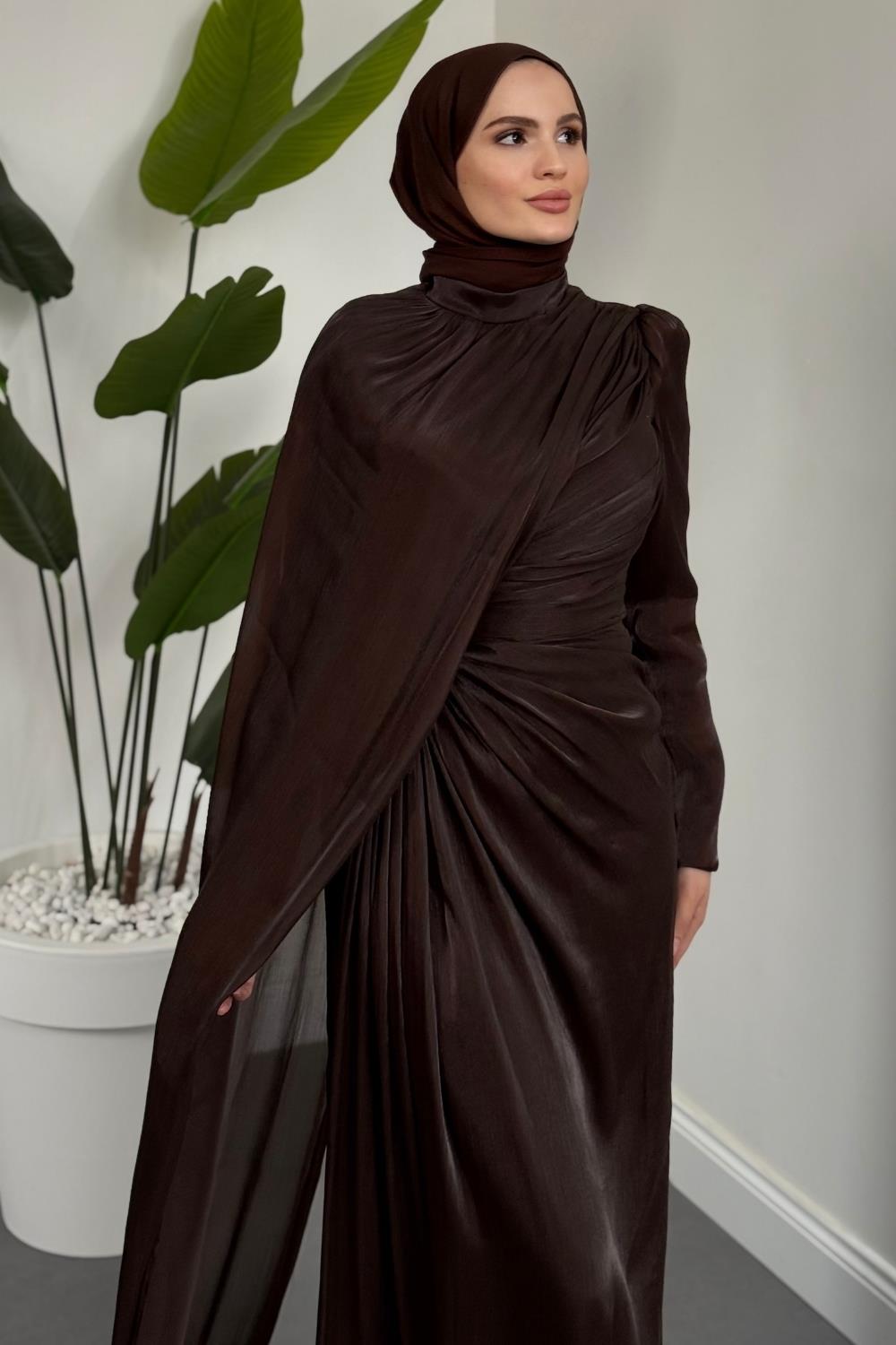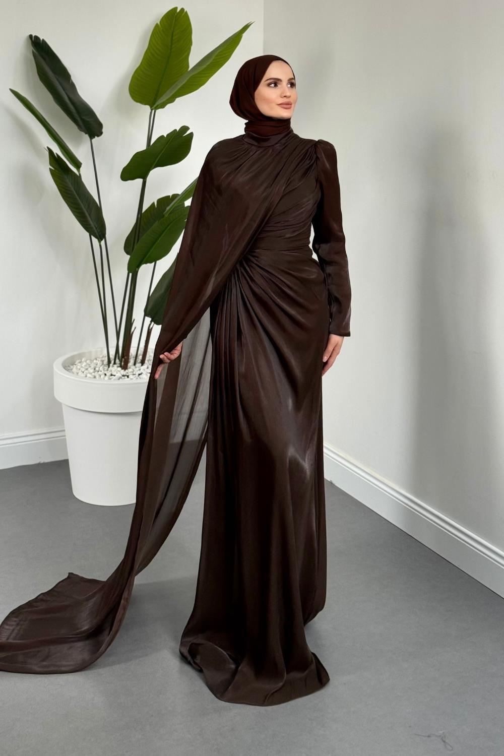 Mari Jan Jan Kumaş Balık Abiye Kahverengi