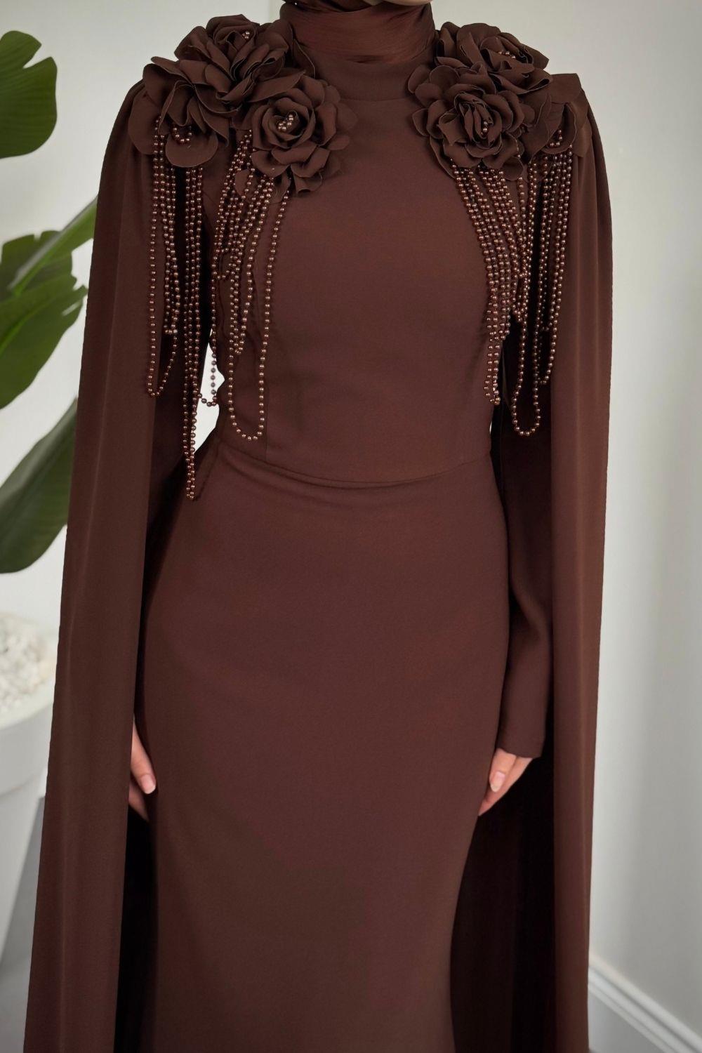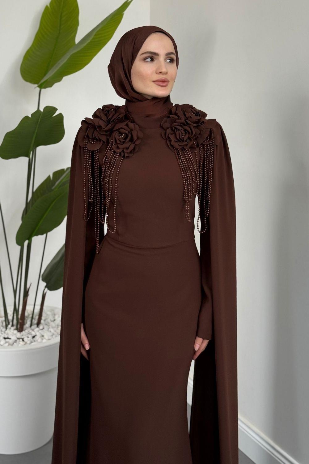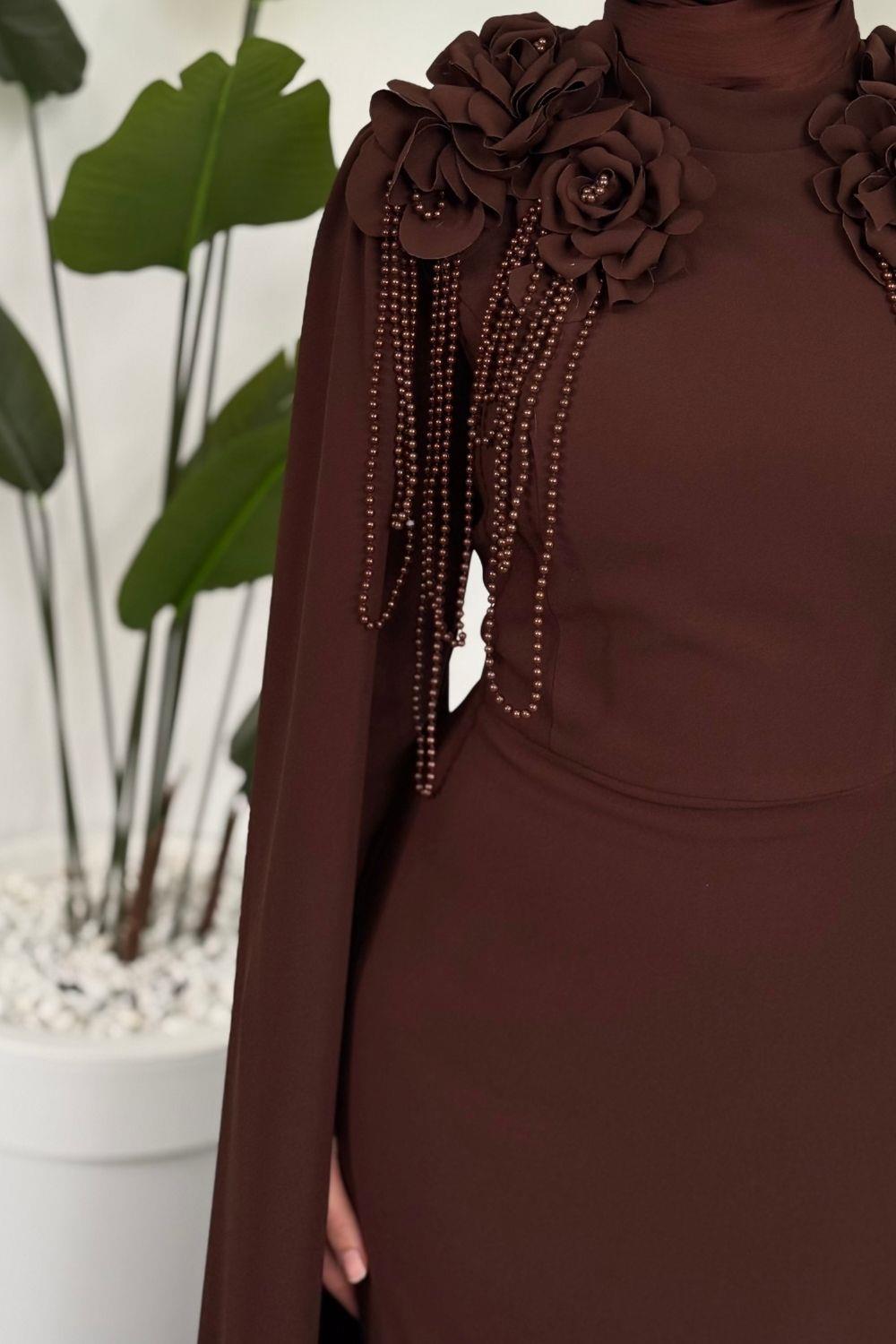 Bellavere Omzu Güllü Abiye Kahverengi