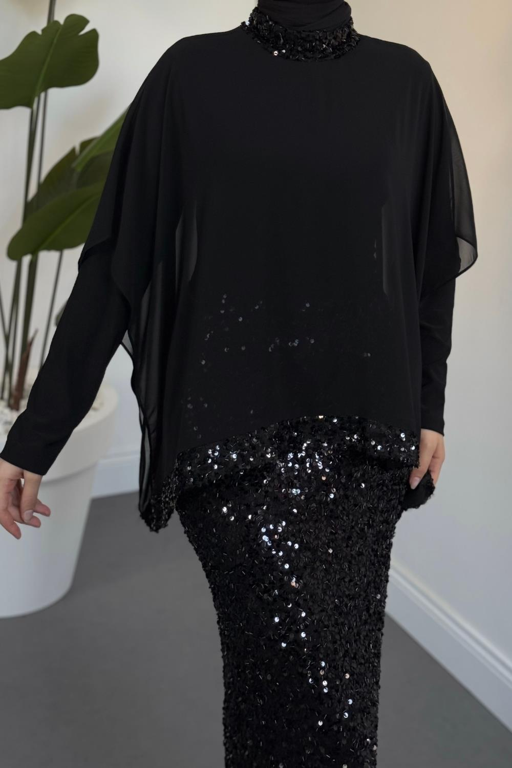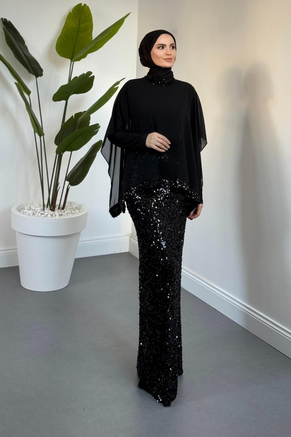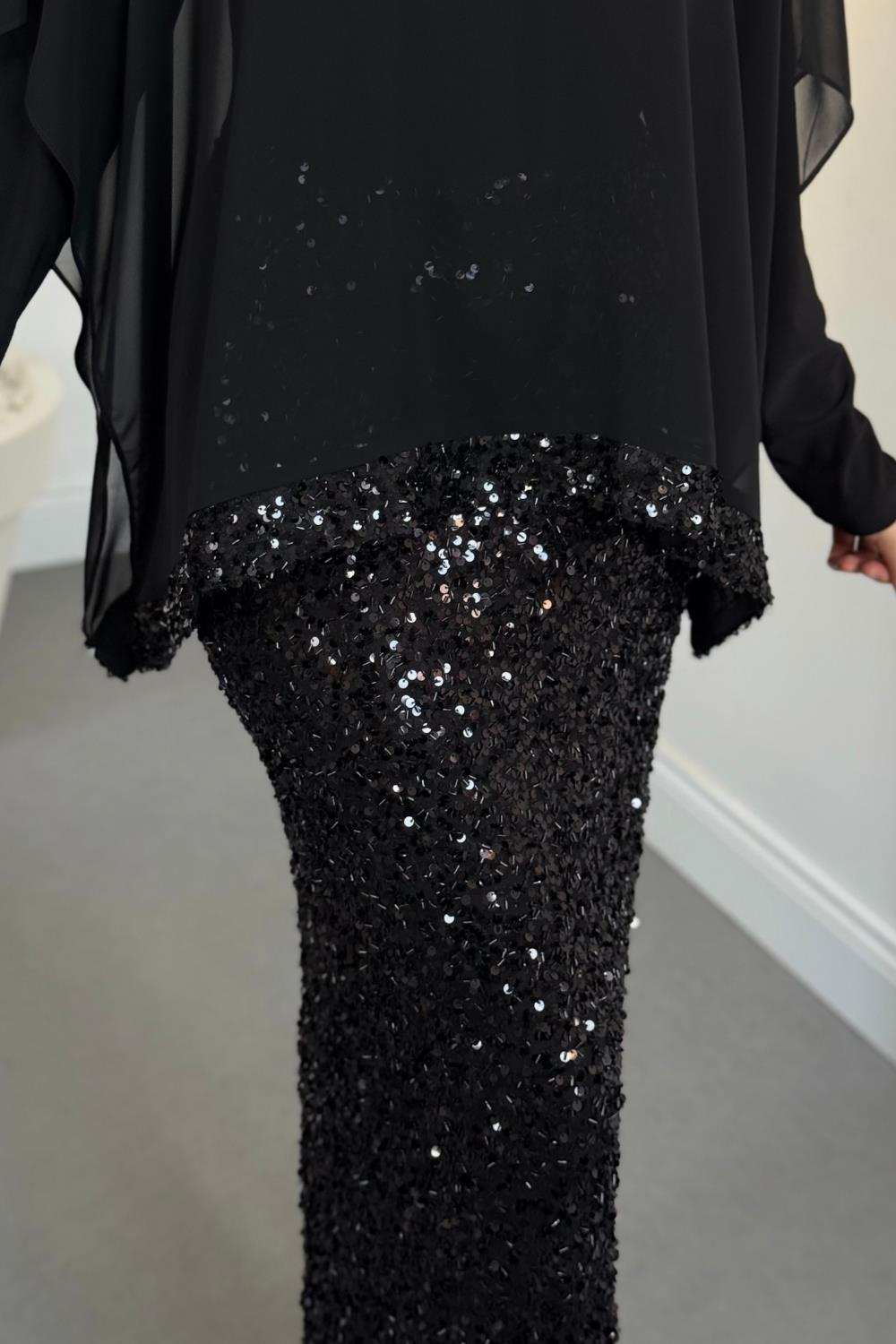 Sorella Pelerinli Altı Payet Abiye Siyah