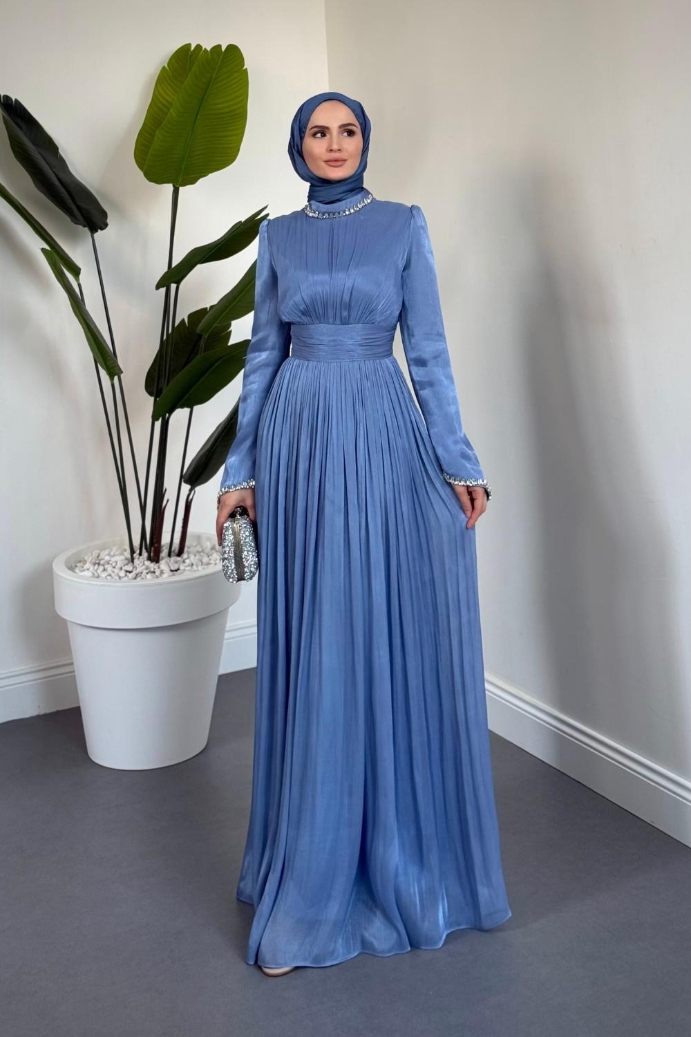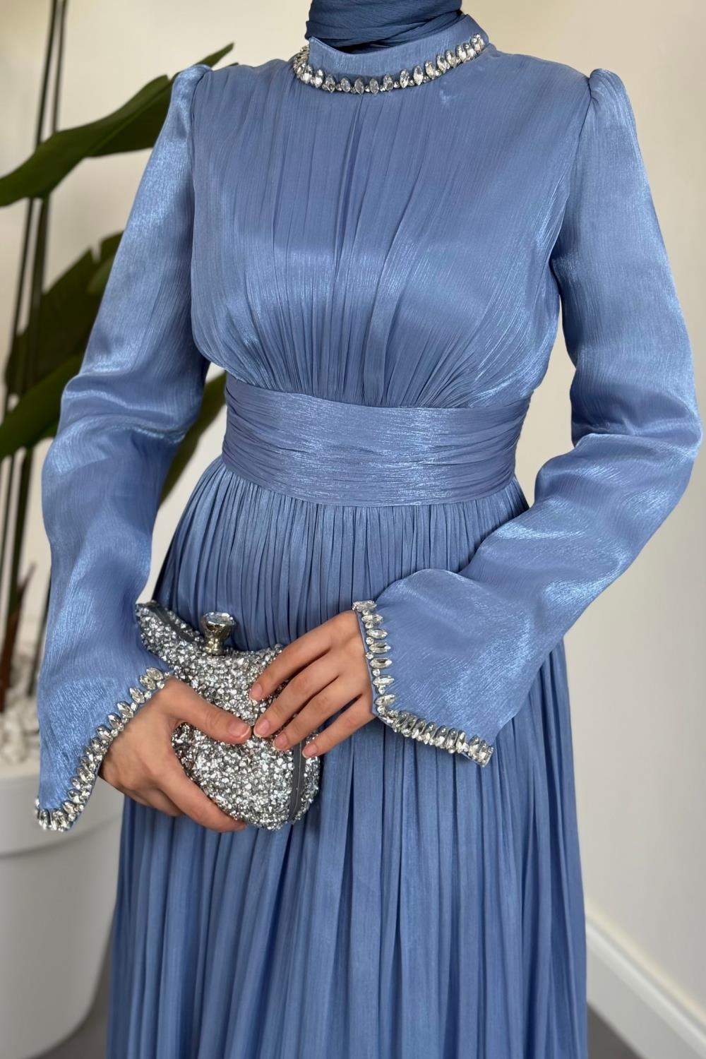 Saoris Boynu Kolu Taşlı Jan Jan Abiye İndigo