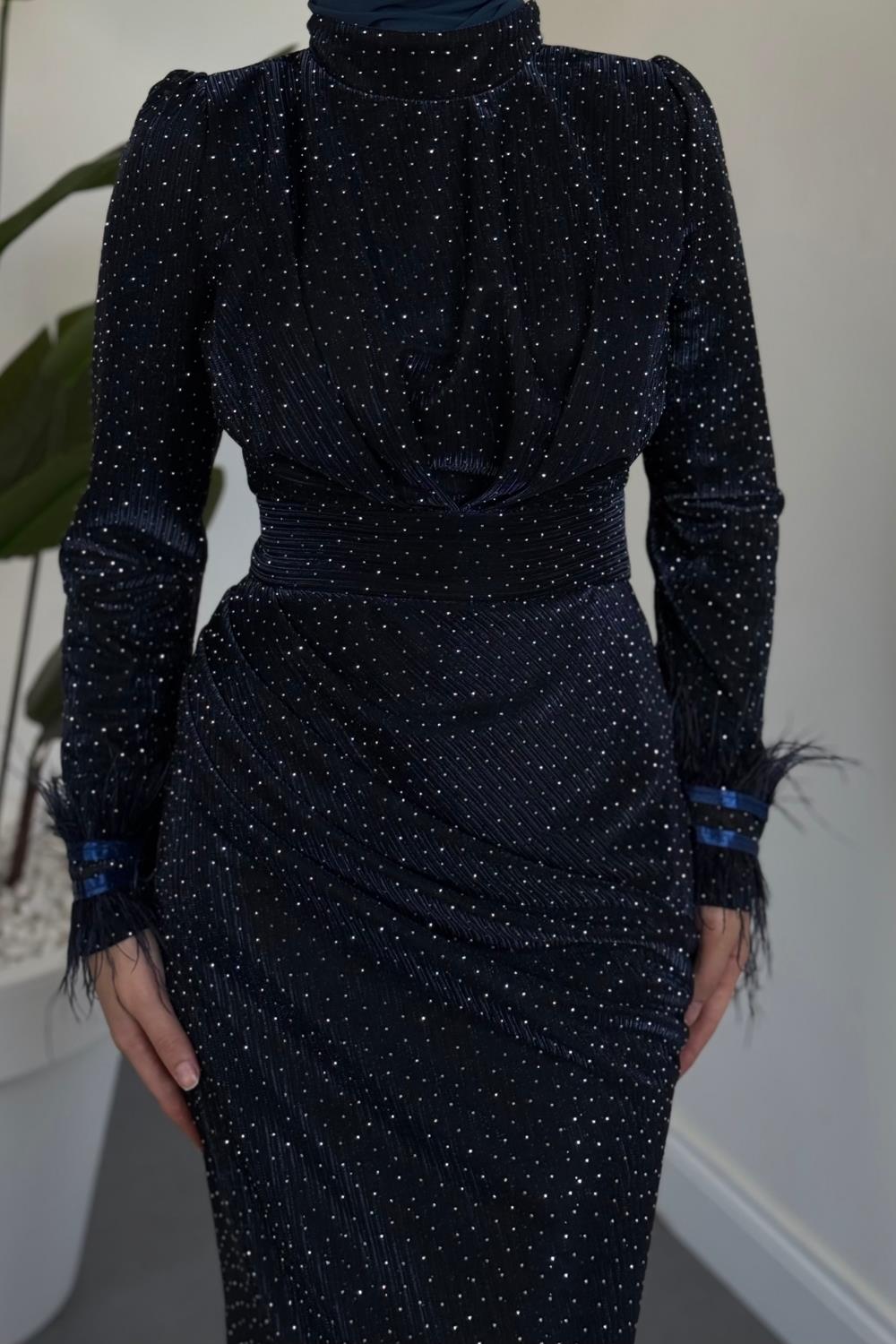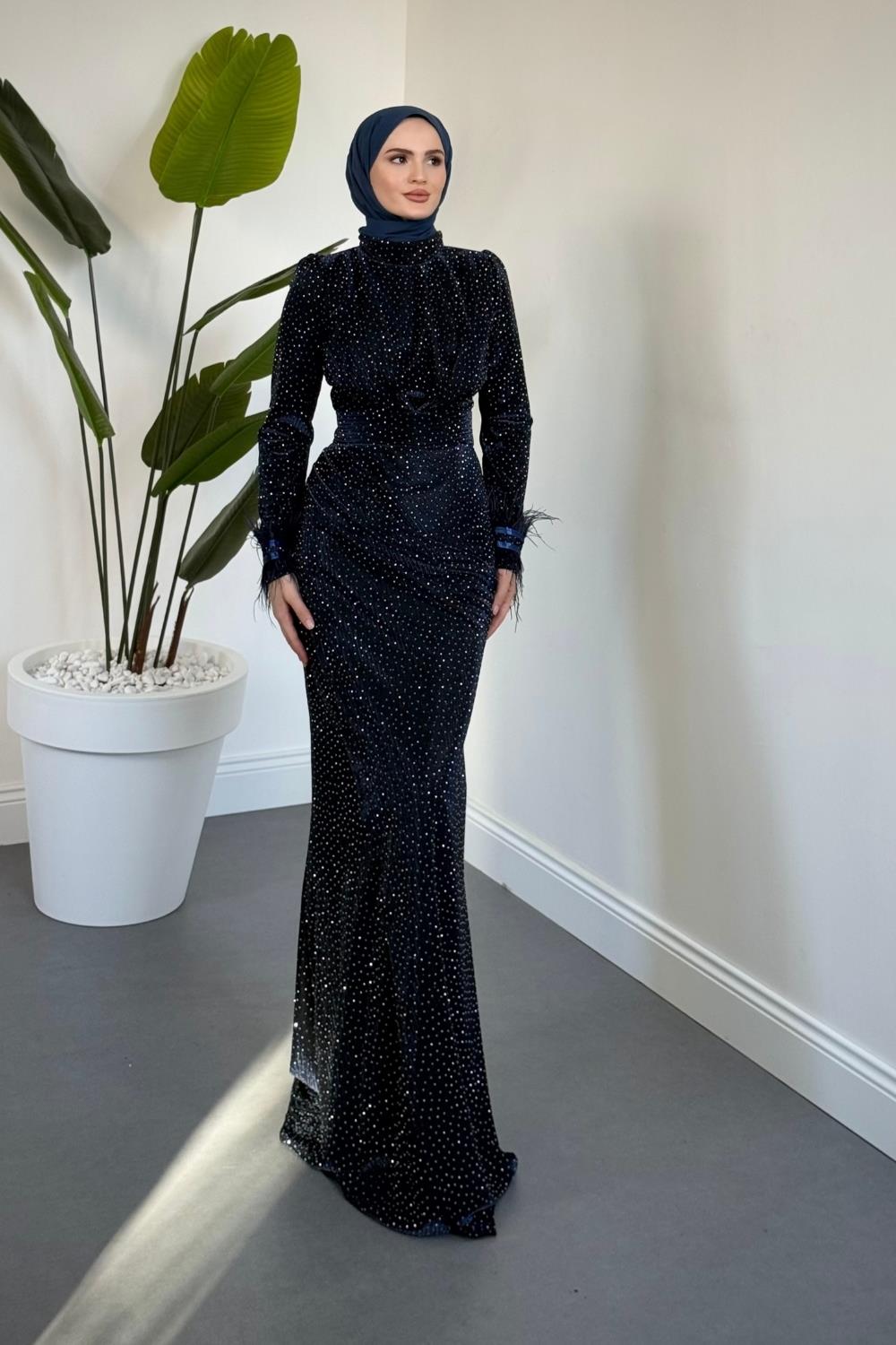 Zuelia Taşlı Kuyruklu Balık Abiye Lacivert