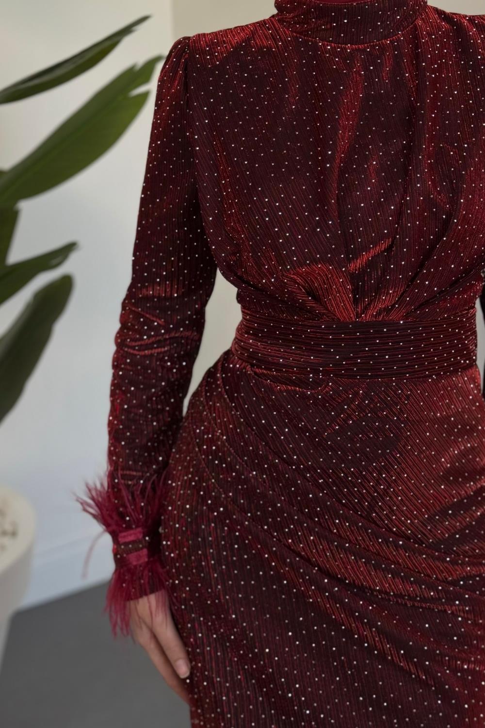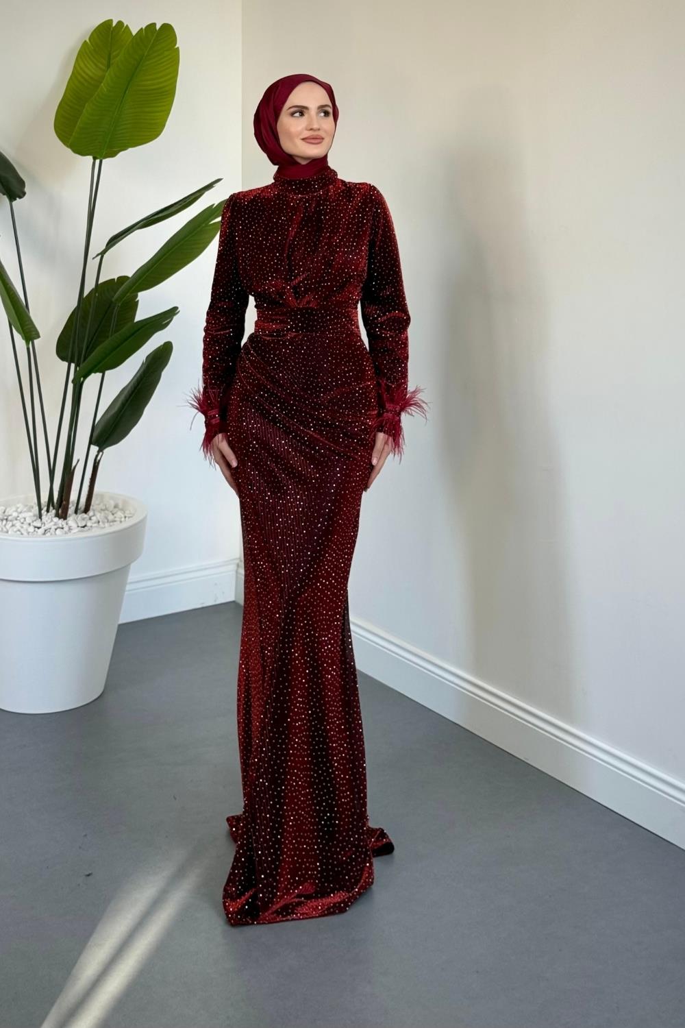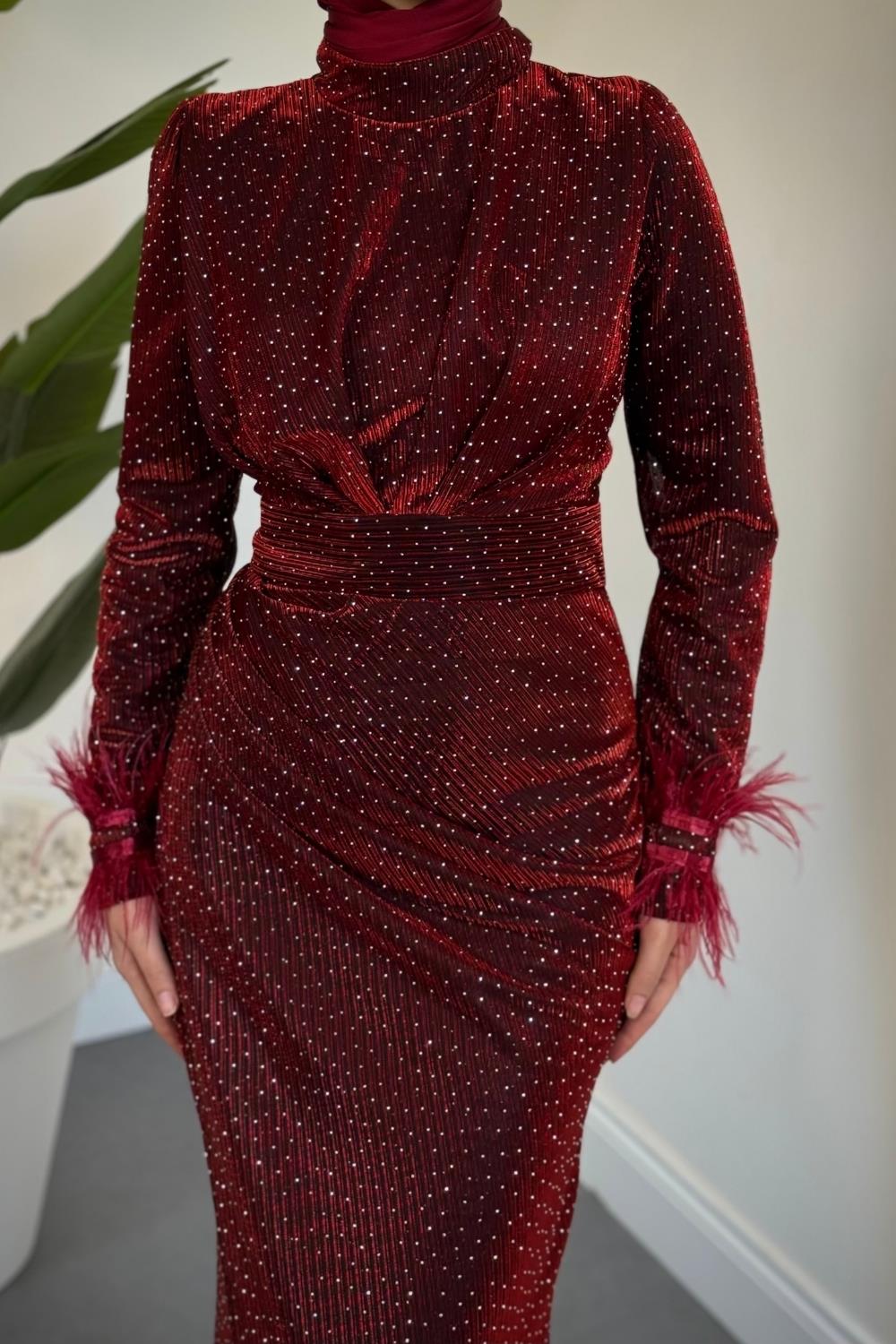 Zuelia Taşlı Kuyruklu Balık Abiye Bordo