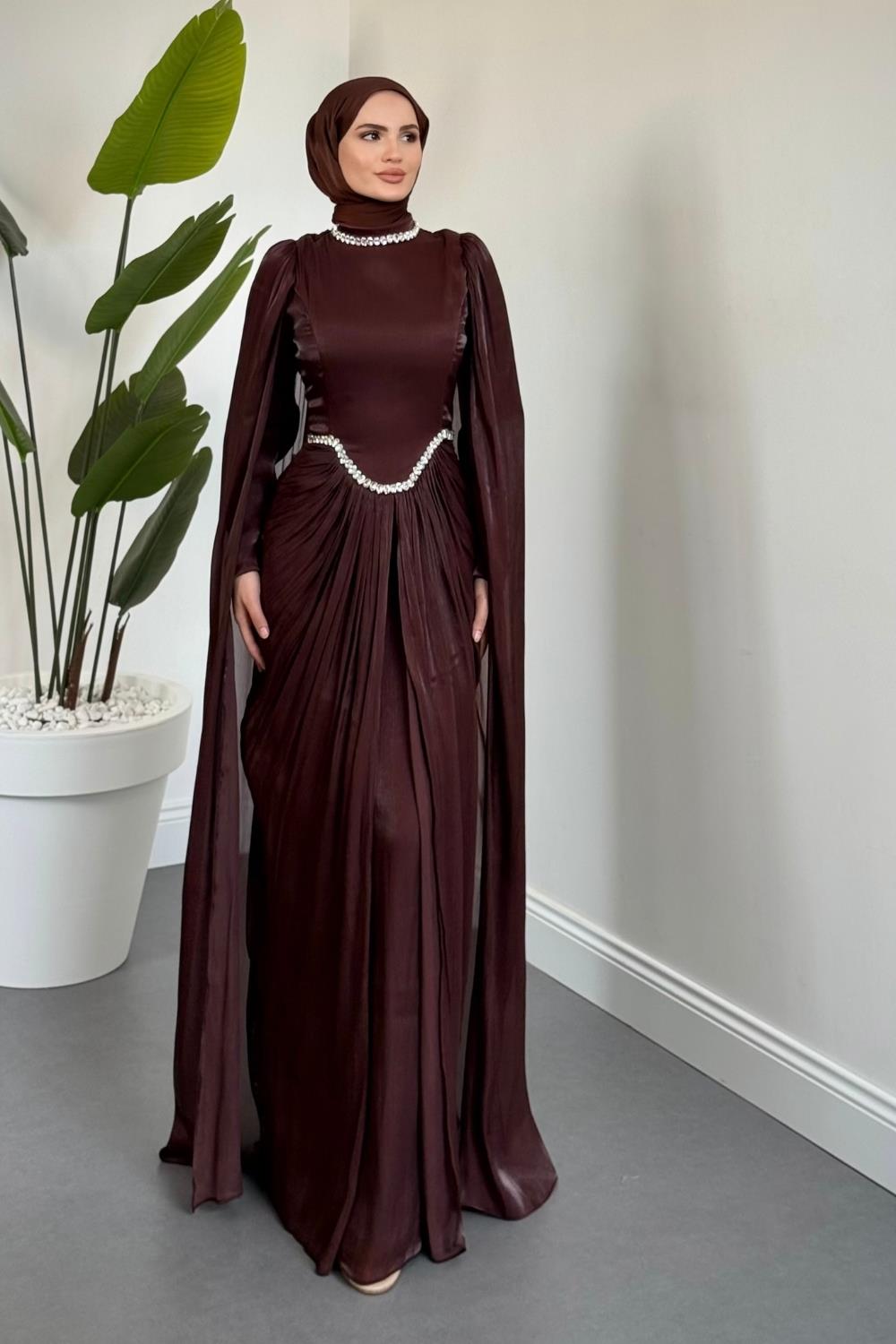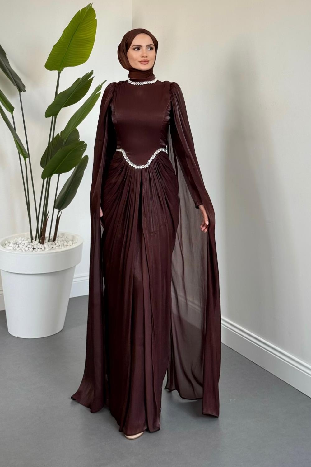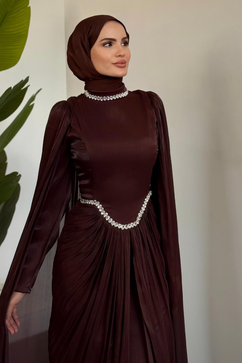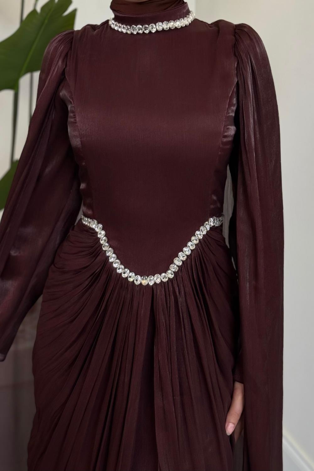 Maelis Beli Ve Boynu Taşlı Abiye Çikolata Kahve