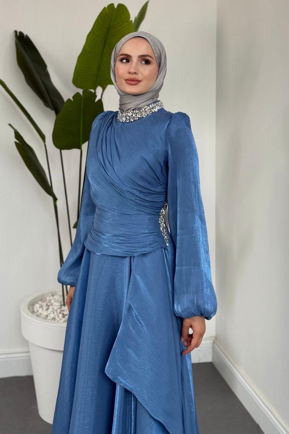 Kylea Yandan Taşlı Jan Jan Abiye Mavi