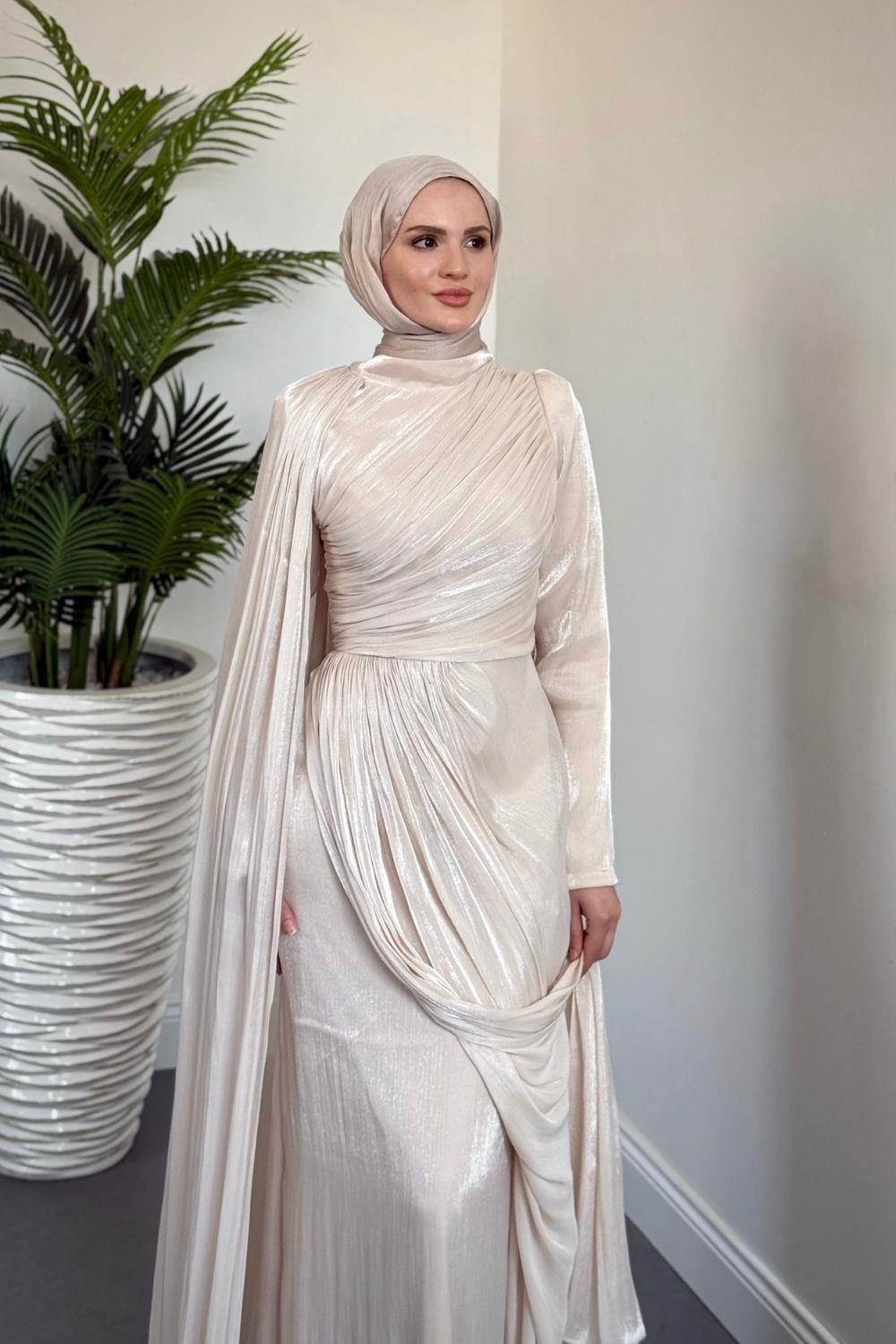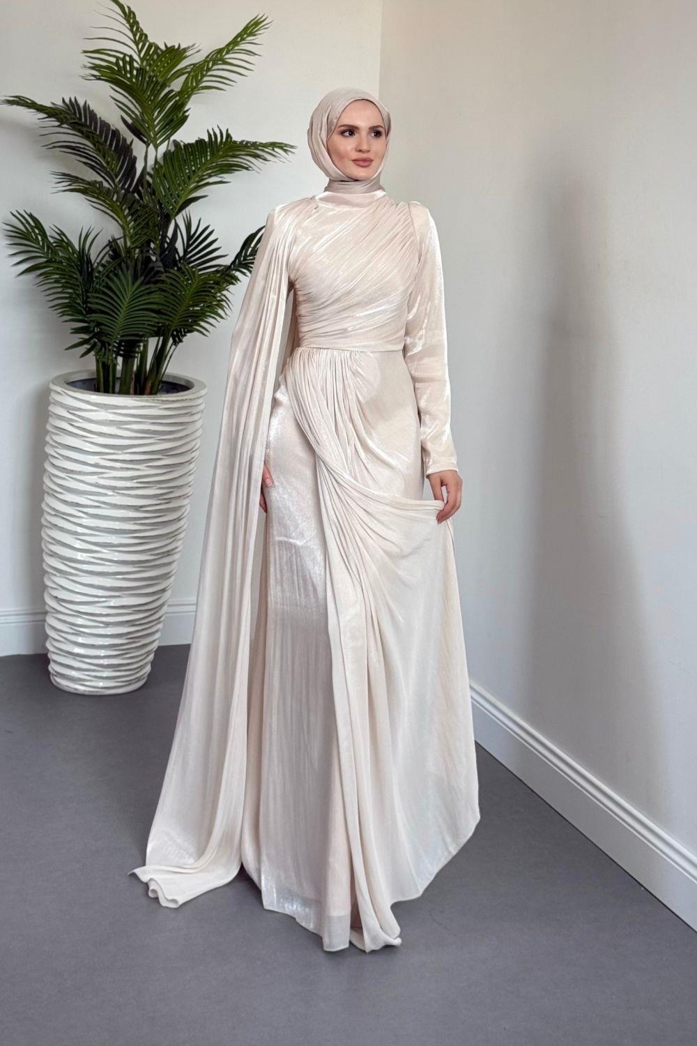 Rosalinne Tek Omuz Pelerinli Drapeli Jan Jan Abiye Krem