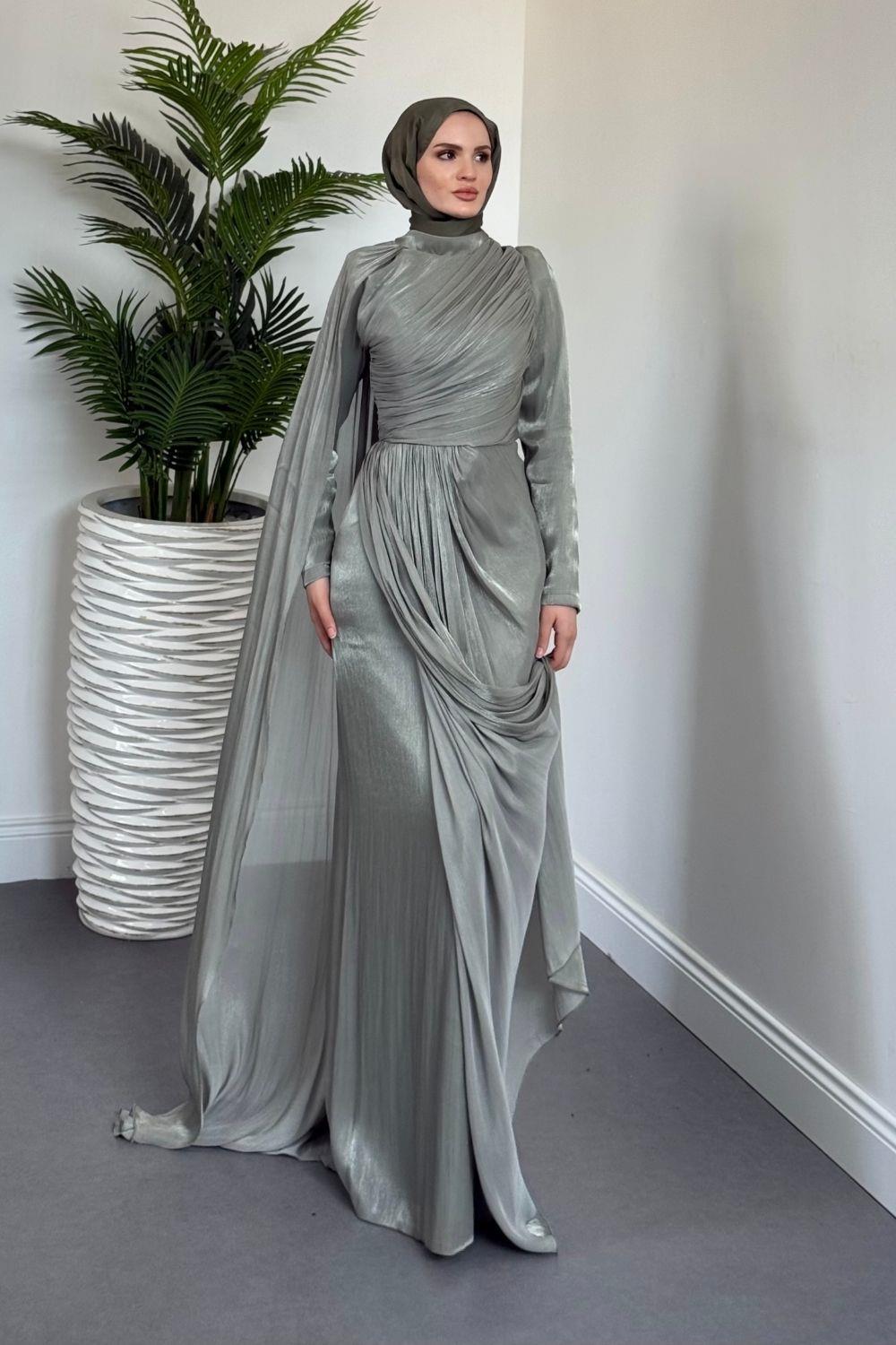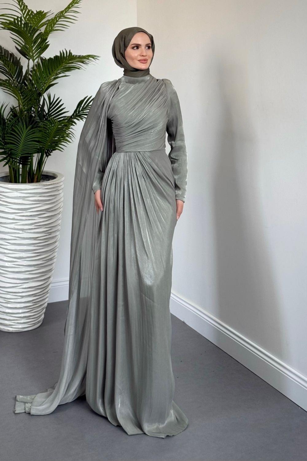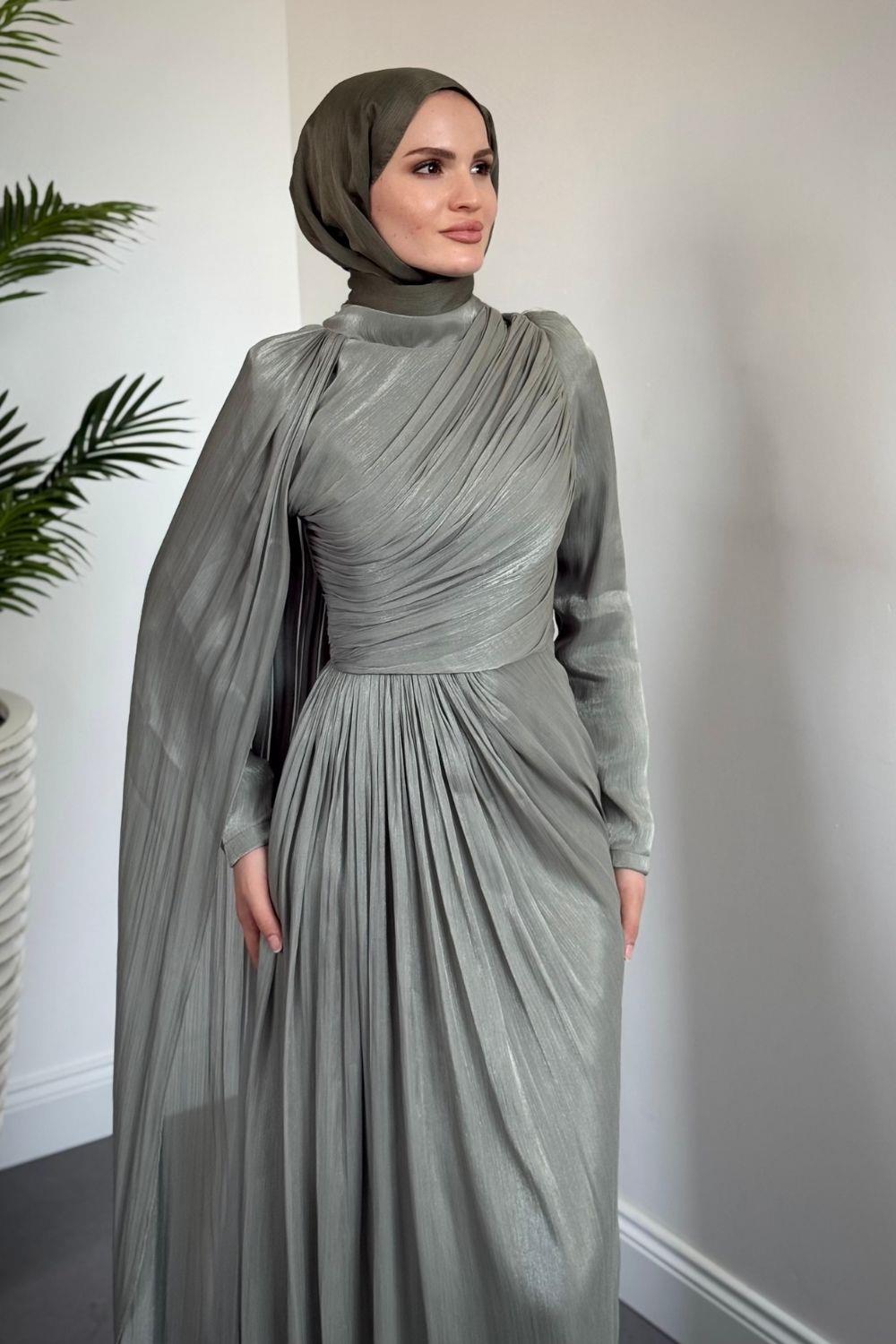 Rosalinne Tek Omuz Pelerinli Drapeli Jan Jan Abiye Çağla Yeşili